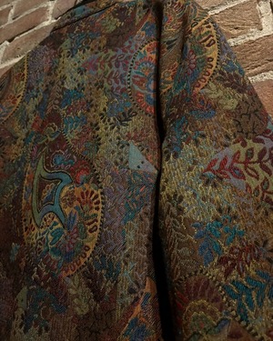 ゴブランジャケット特有の緻密な織りによって生まれる、どこかエスニックな雰囲気も漂わせるボタニカルな柄を載せた奥行きのあるデザインの1着。