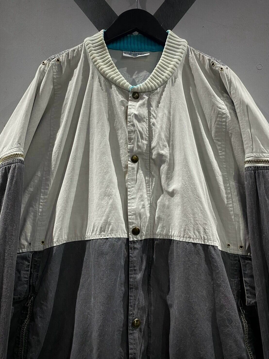 ホワイト×グレーの2トーンでボディを切り替えた、コットンブルゾンジャケット。
