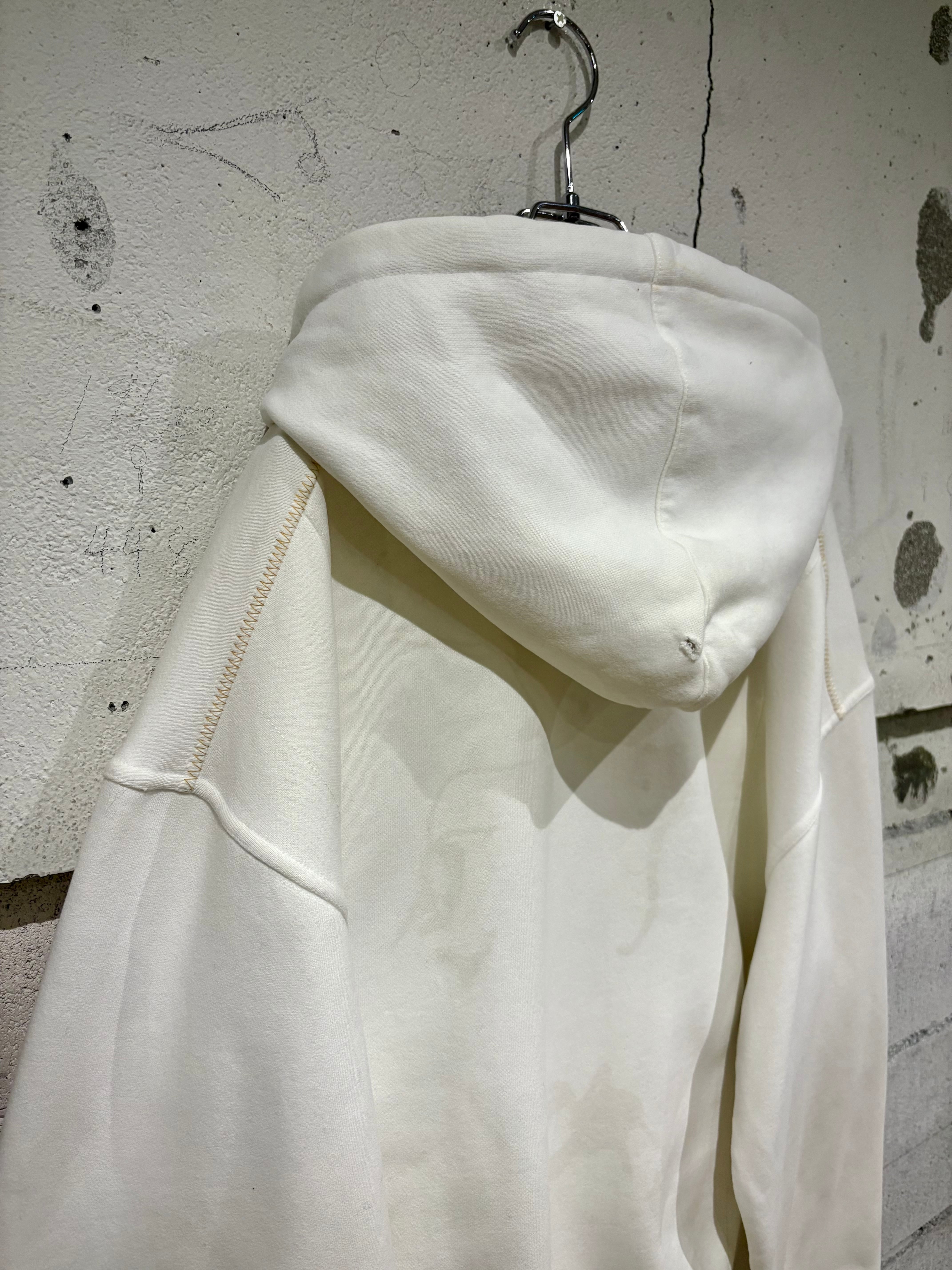 フード裏にはパッチと同じカットソーを切り替え、右裾付近にはロゴのチャーム。ボディの随所に施されたステッチがアクセントになりながら、デザインへの拘りを強く感じられます。