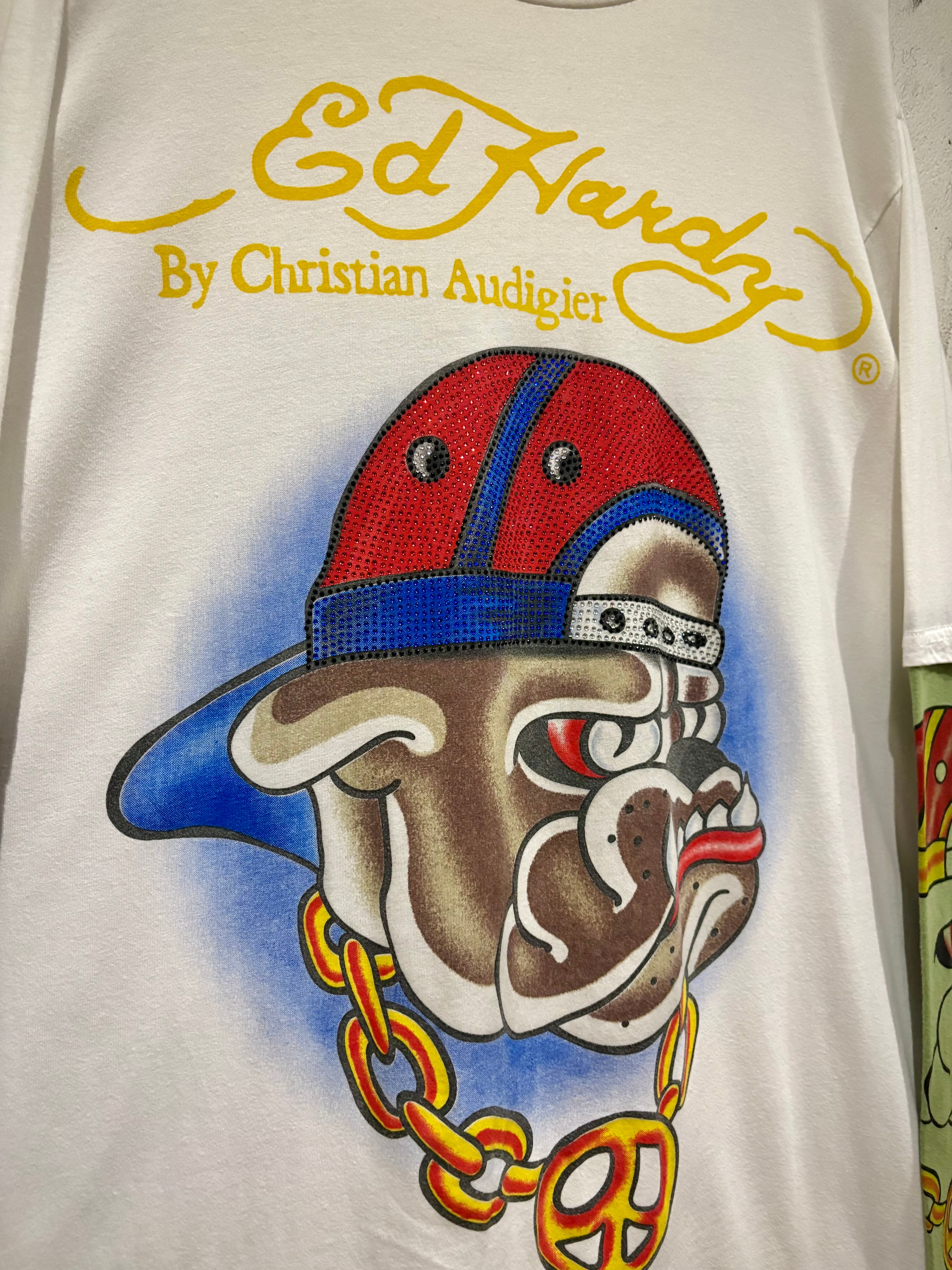 2000年代初頭にタトゥーアーティストの"エド・ハーディー"とフランス人デザイナーの"クリスチャン・オードジェー"の2人のライセンス締結により誕生。数々のタトゥーモチーフアイテムを世に送り出し、"ブリトニー・スピアーズ"や"マドンナ"、"デビット・ベッカム"など数多くのセレブに愛されてきたブランド"Ed Hardy"より、長袖Tシャツをご紹介致します。