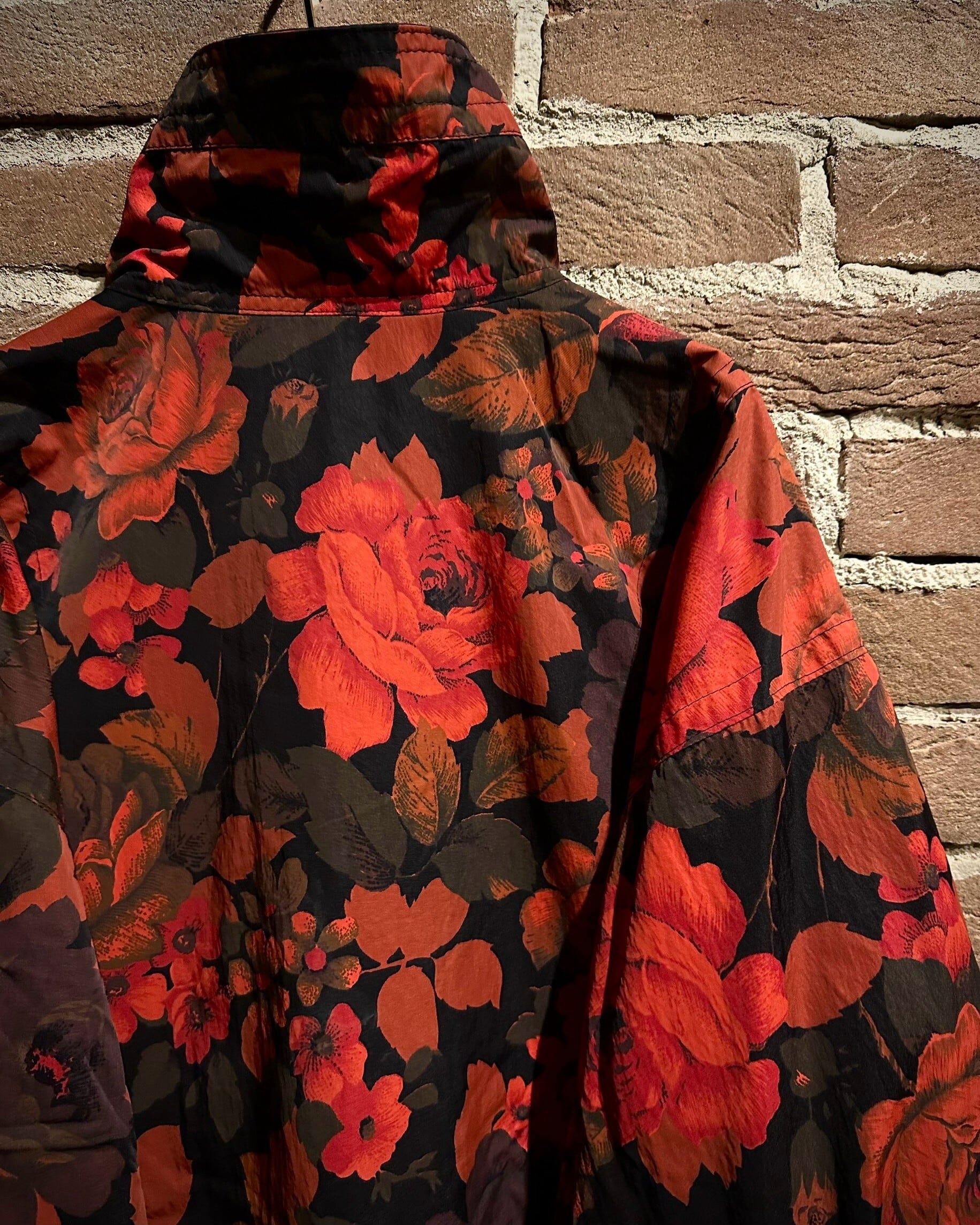 ハリのあるタフな素材を用いたボディに、レトロかつラグジュアリーな花柄を載せたプルオーバーギアジャケット。