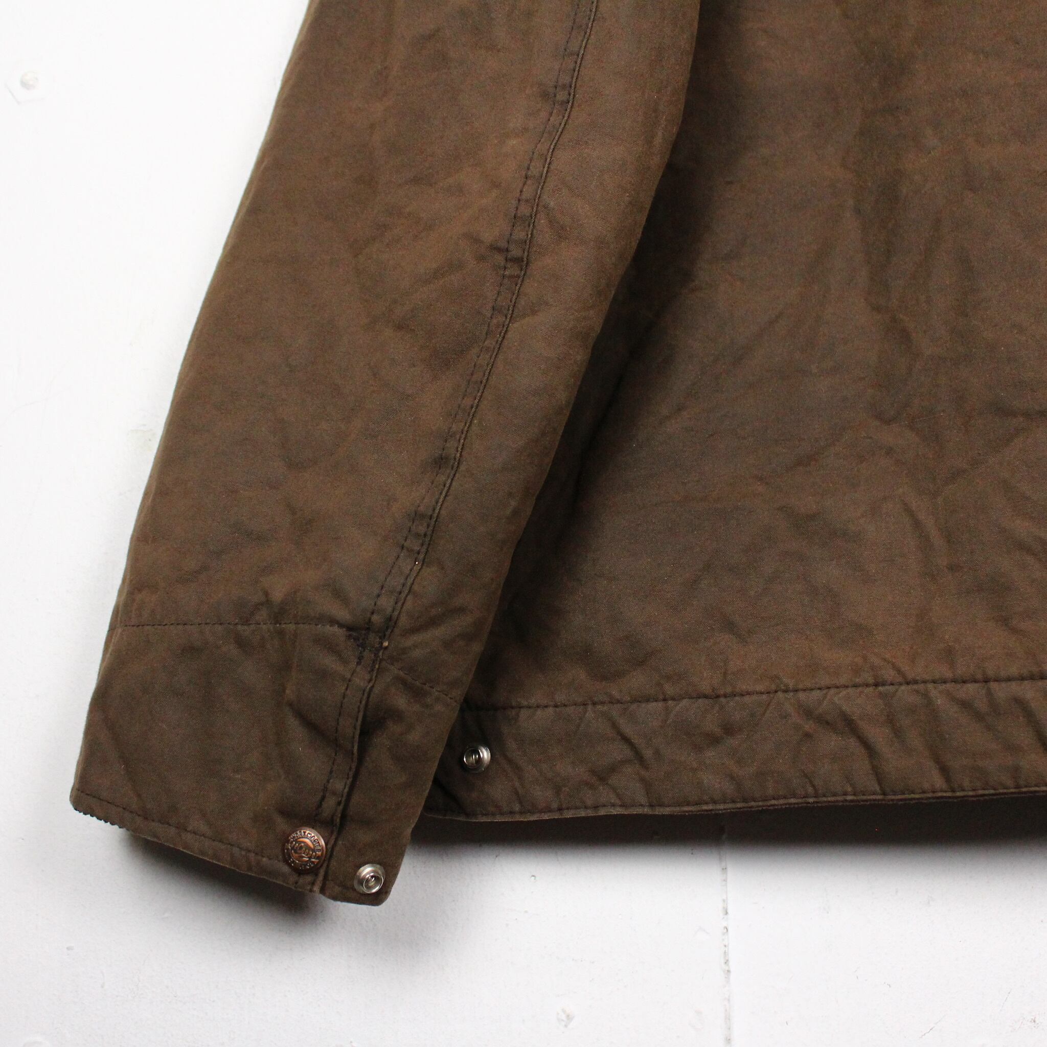 オイルドジャケットならではの無骨さに加えクラシカルな風合いを漂わせており、襟にはブラウンのコーデュロイを切り替えたことで異素材のアクセントに加え、アイテムの雰囲気が底上げされています。
