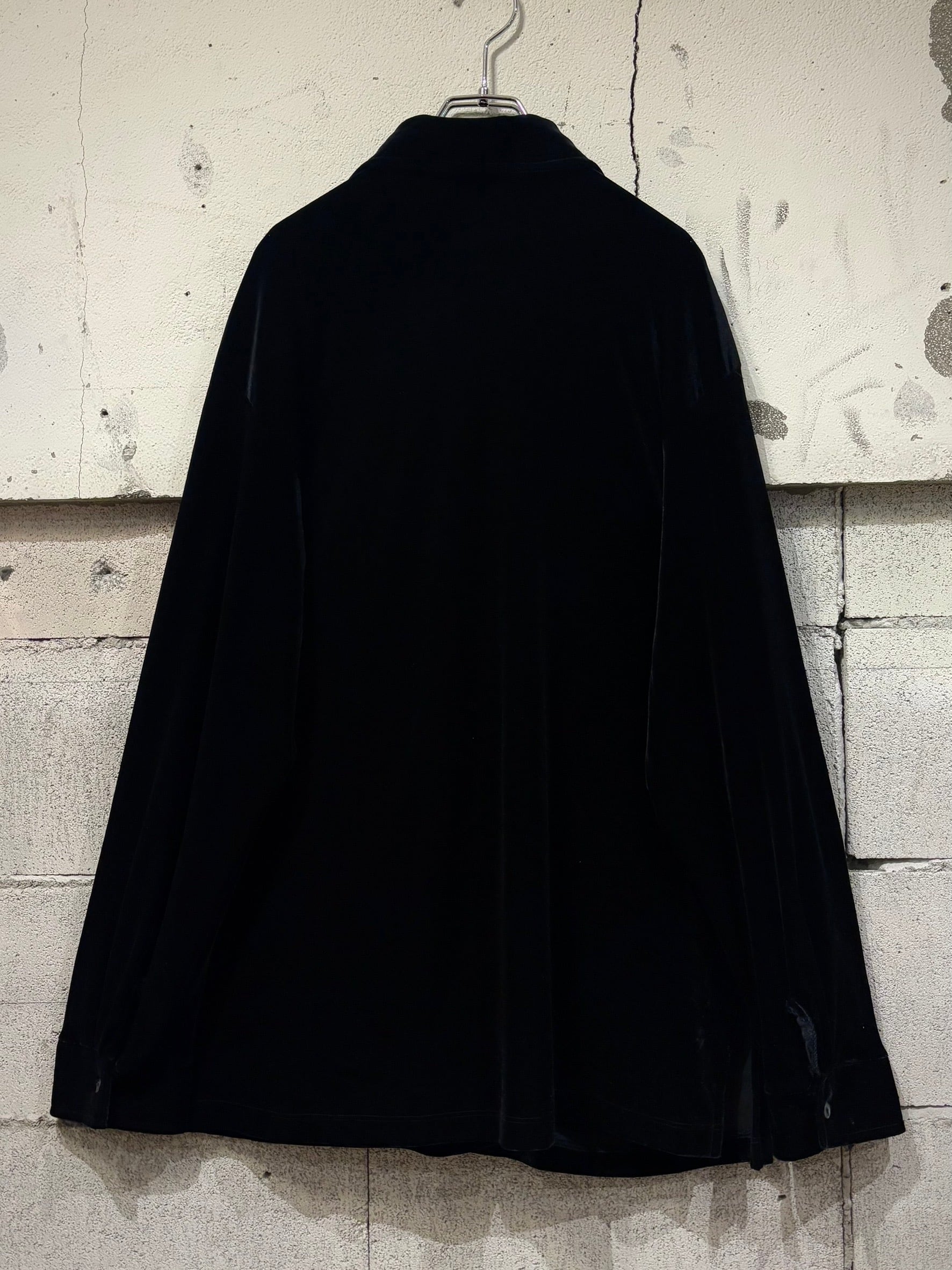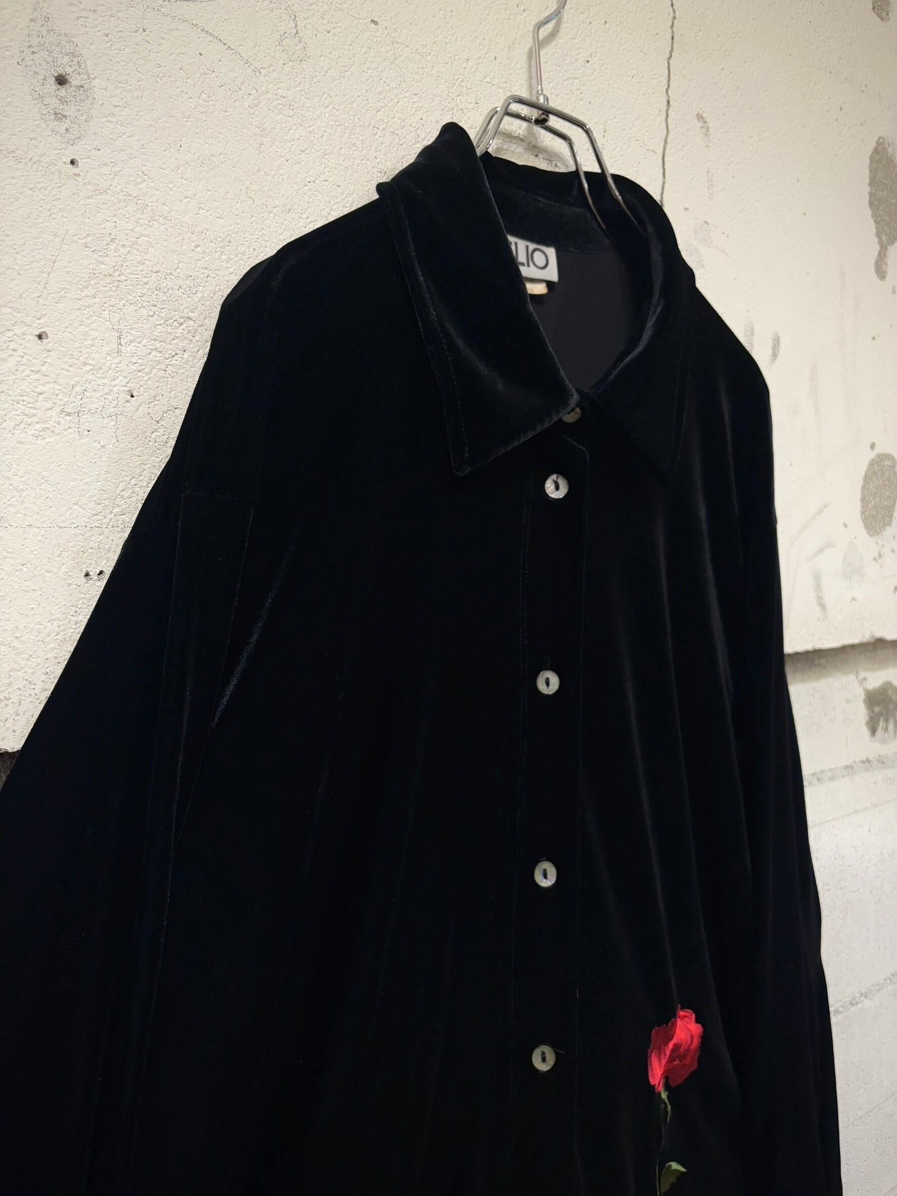 ブラックのベロアを用いたボディに、一輪の薔薇を刺繍で刻んだベロアシャツ。