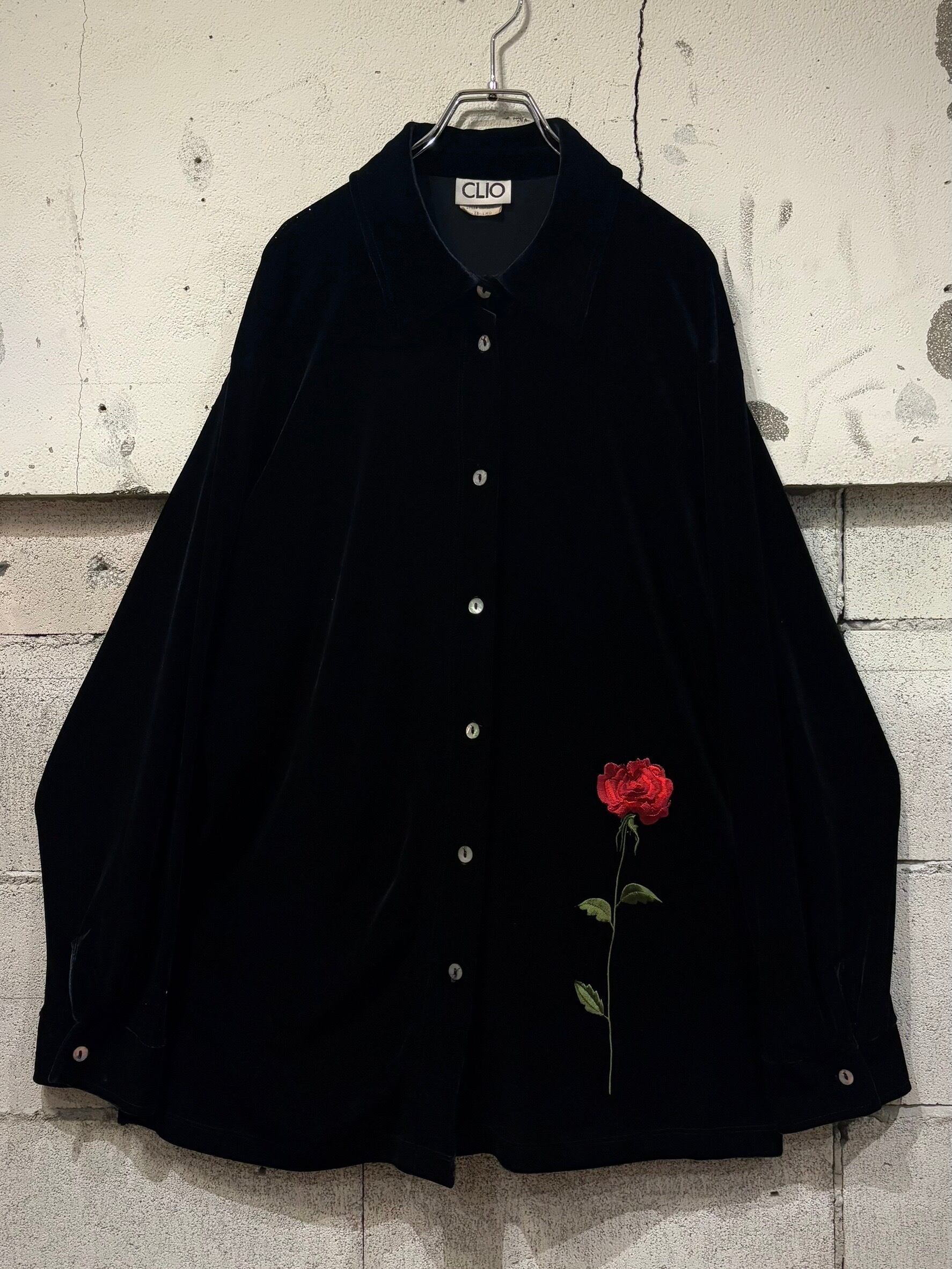 ずっと触っていたくなるようなモチモチ感が堪らない極上ベロア素材に、美しい薔薇の刺繍が映えるシャツの逸品です。