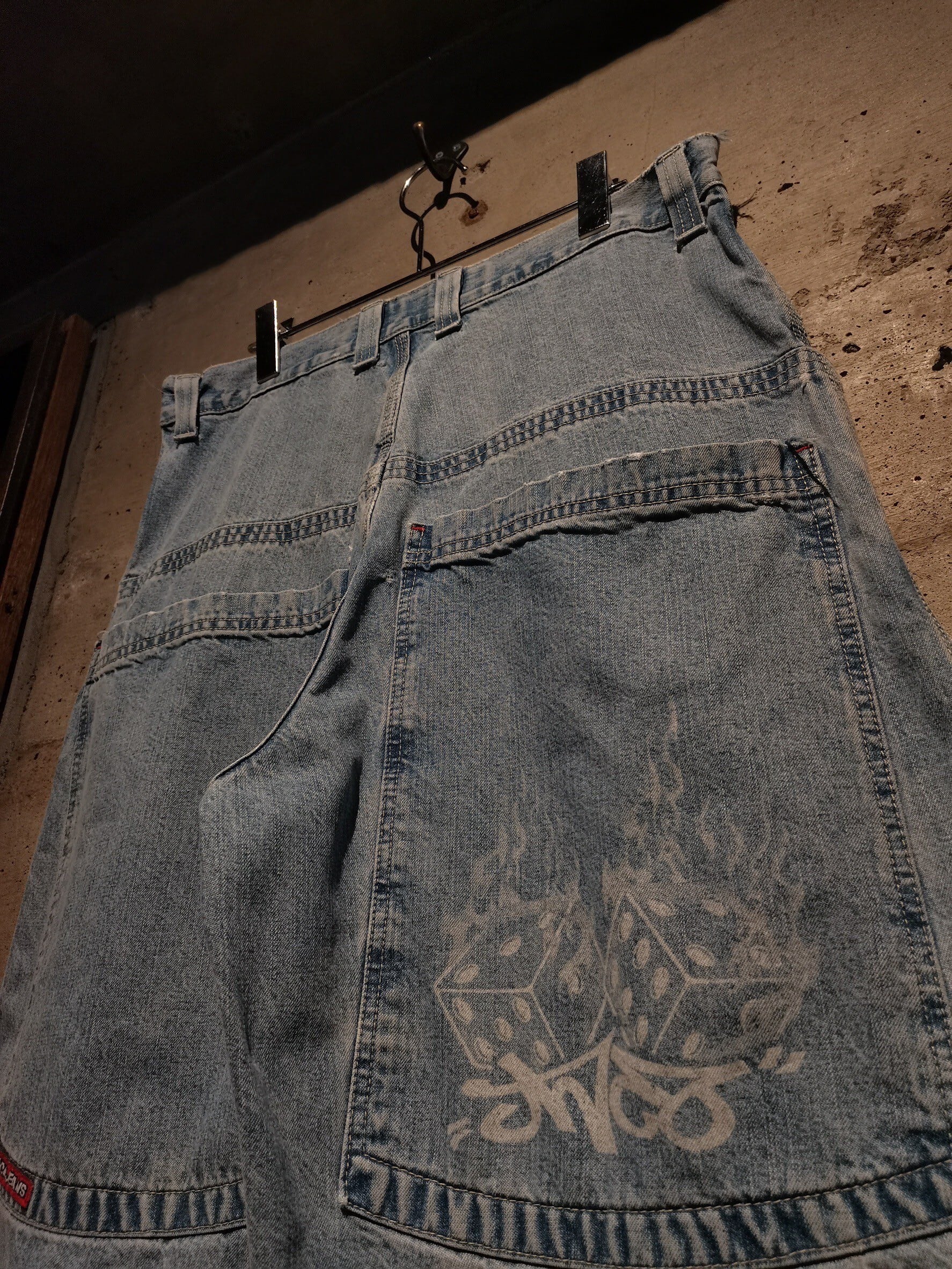 90〜00年代のストリートシーンで絶大な人気を誇り、現在古着市場においてもその高い人気と稀少性から著しい高騰を見せる"JNCO"。同ブランドらしい高いデザイン性と稀少性を兼ね備えたスペシャルなバギーショーツです。