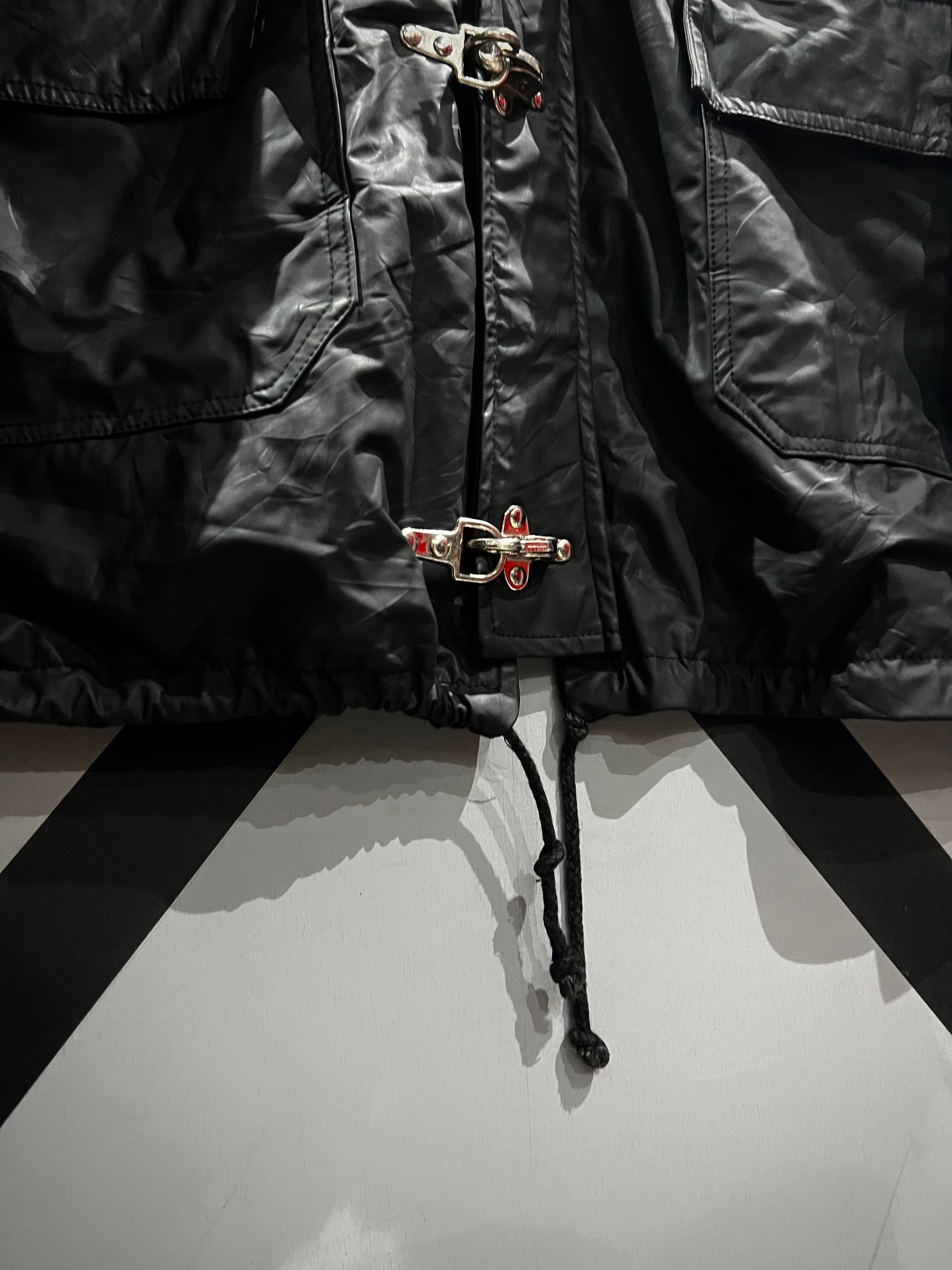 前立てはジップアップの内側に、ファイヤーマンバックルを施した比翼仕立て。更には、取り外し可能なフード、フラップポケットと洗練されたデザインの中に細部にまでギミックに加えた機能的かつファッショナブルな仕上がりに。