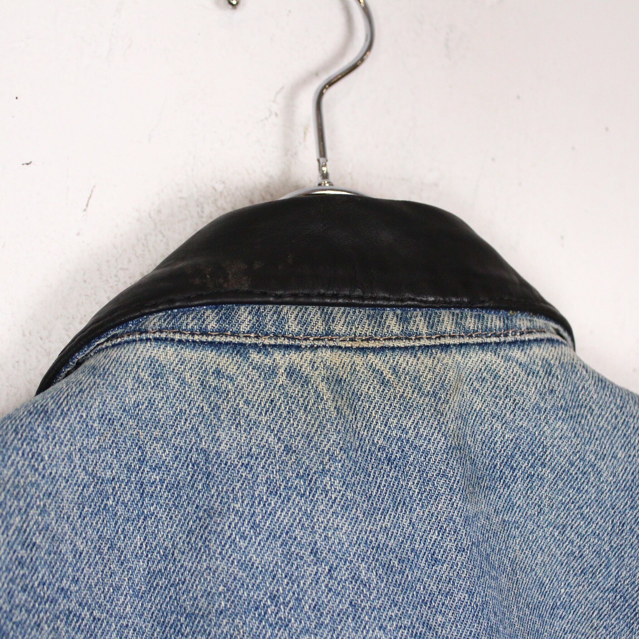 刺繍、パッチに加え、襟にはブラックレザーが被せられ、デニムの表情とも相まって全体の雰囲気を更に底上げしています。