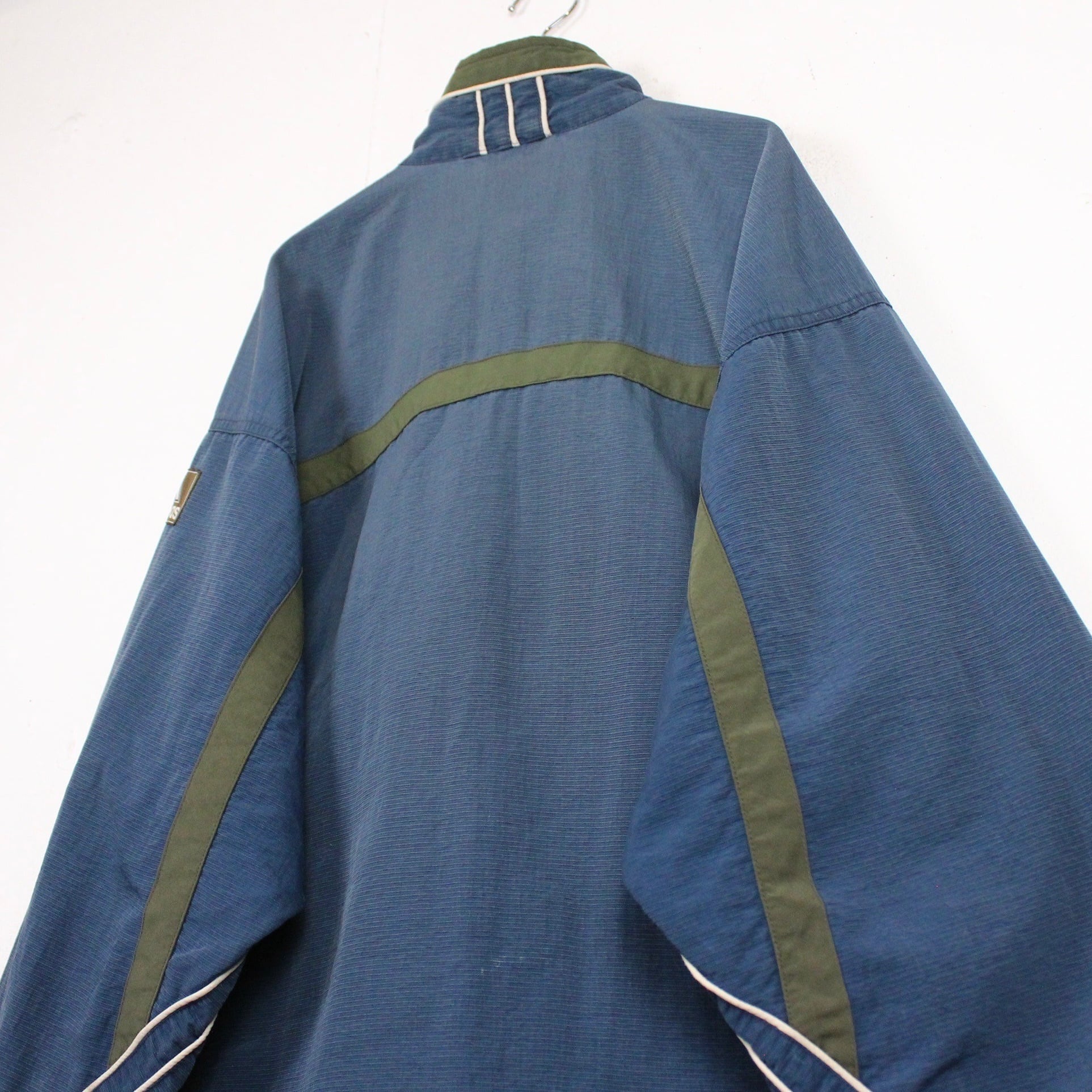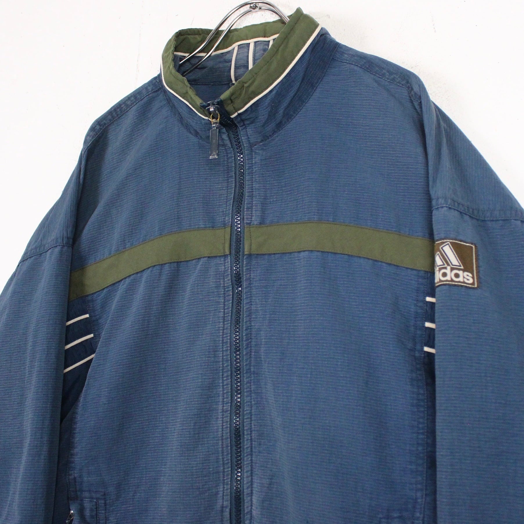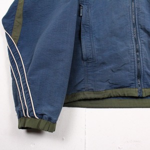 畝のある独特な質感のネイビーカラーのボディをベースに、随所にカーキのラインを走らせたジップアップジャケット。