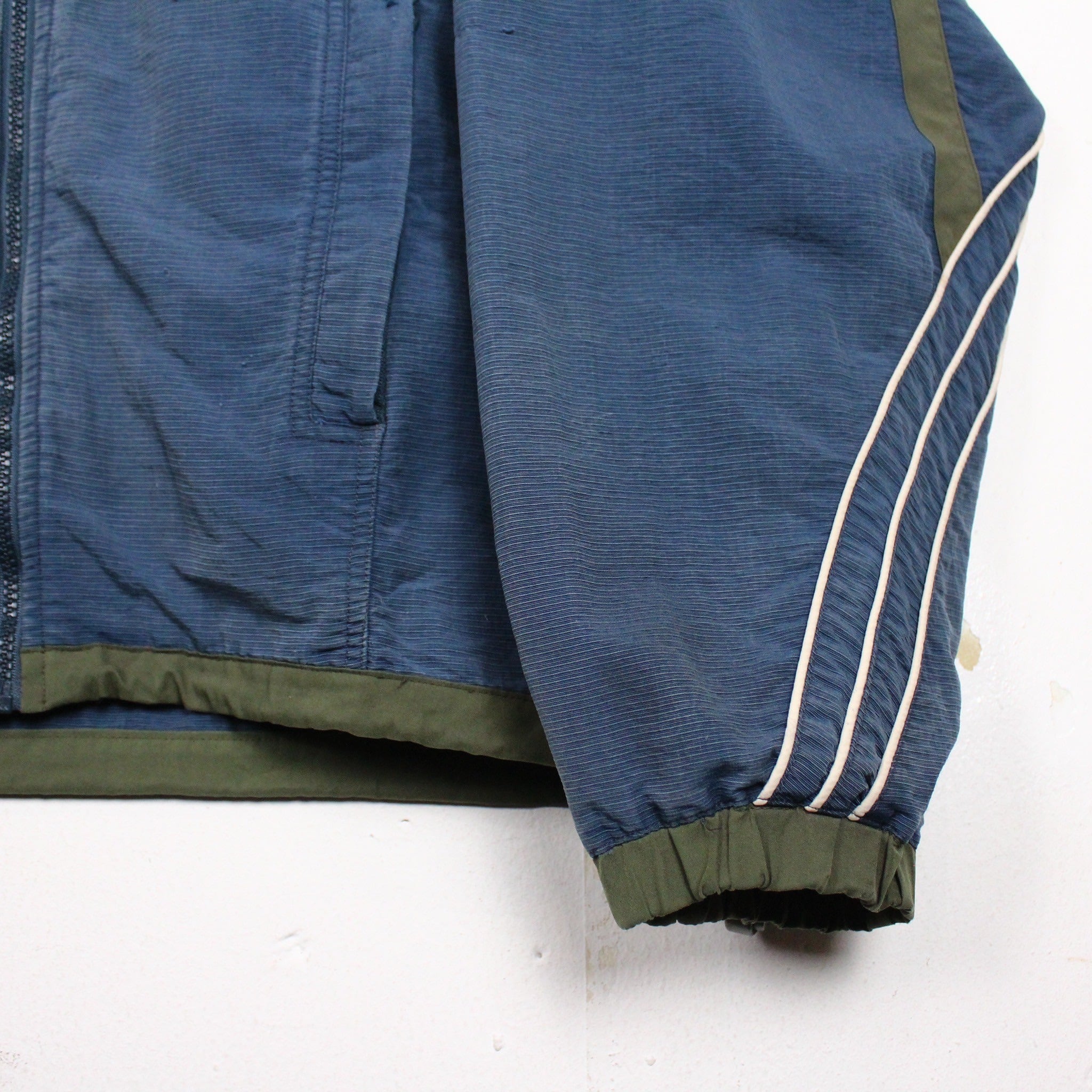 左袖にロゴパッチ、身頃からアームにかけては同ブランドの代名詞である3ストライプを配置。