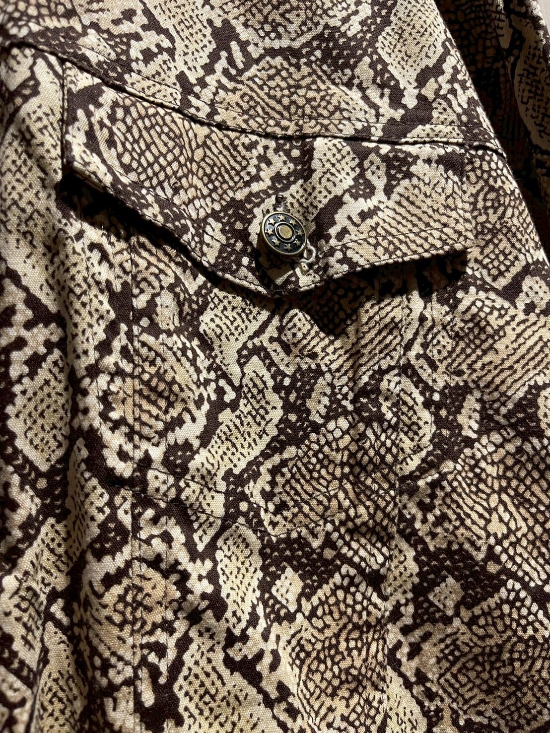 パイソン柄にショート丈が一際目を惹くトラッカージャケットをご紹介致します。