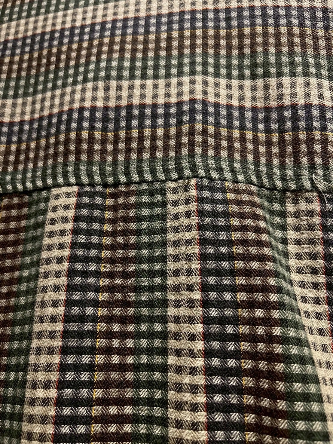 遠目で見るとストライプ、近くで見るとチェック柄と緻密にデザインされた柄模様が生み出す立体感がすばらしい、、、