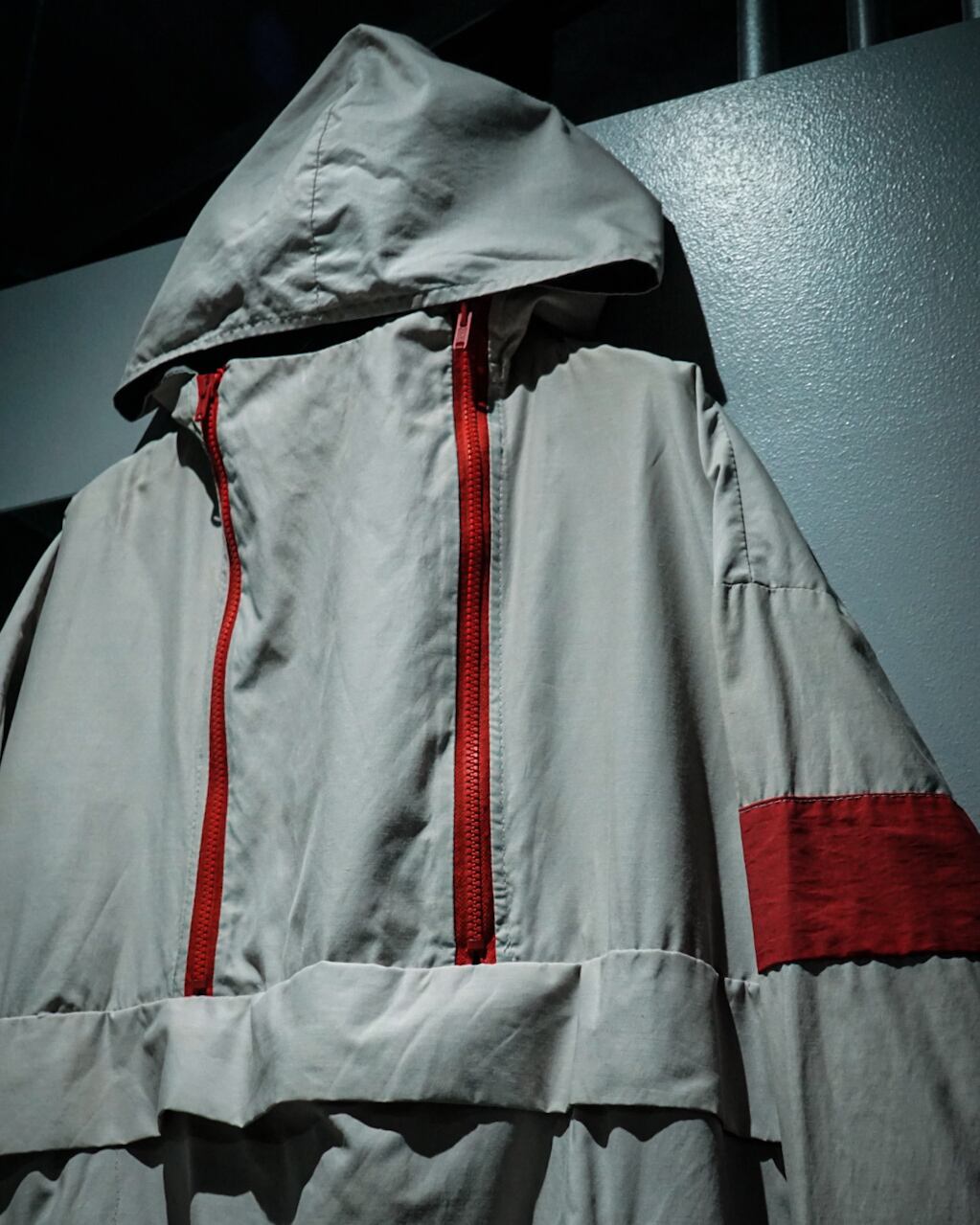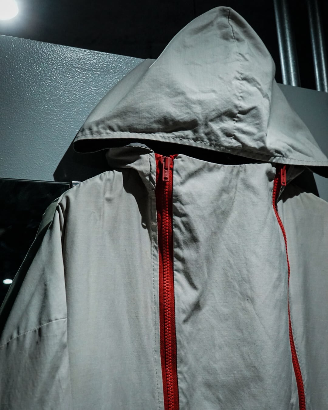 アノラックらしいフロントポケットや両サイドのジップポケット等のディテールも持ちつつ、赤ジップを採用したことによる高いファッション性も持ち合わせた1着。