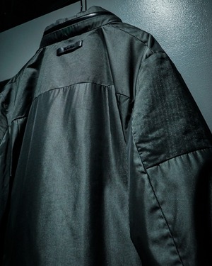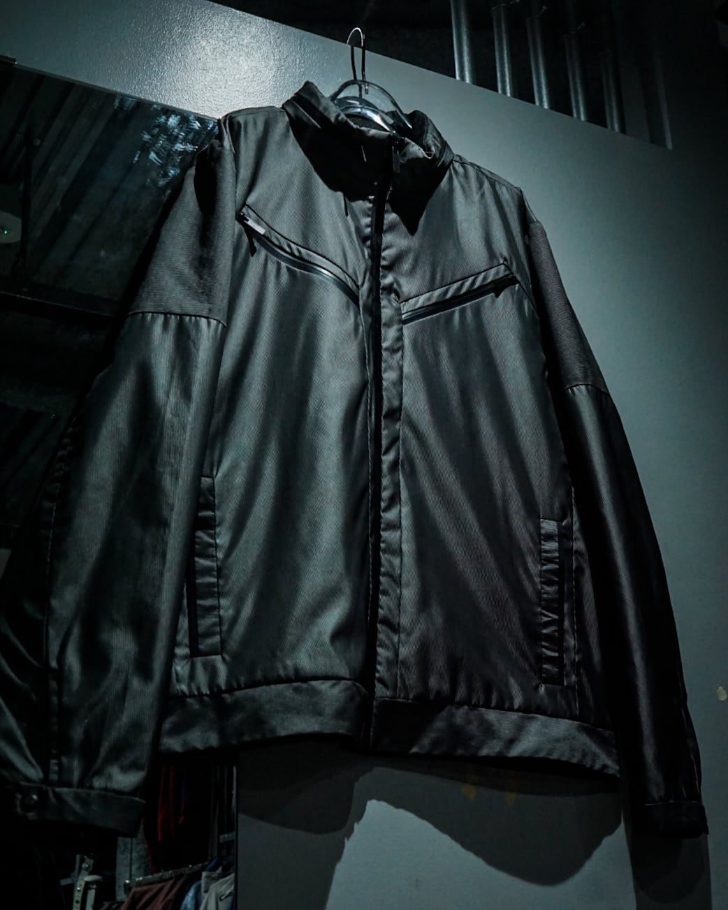 前立てはジップ、ハイネックの仕様。襟にはジップで収納されたフードが備わっており、気分によって展開することも可能となっております。