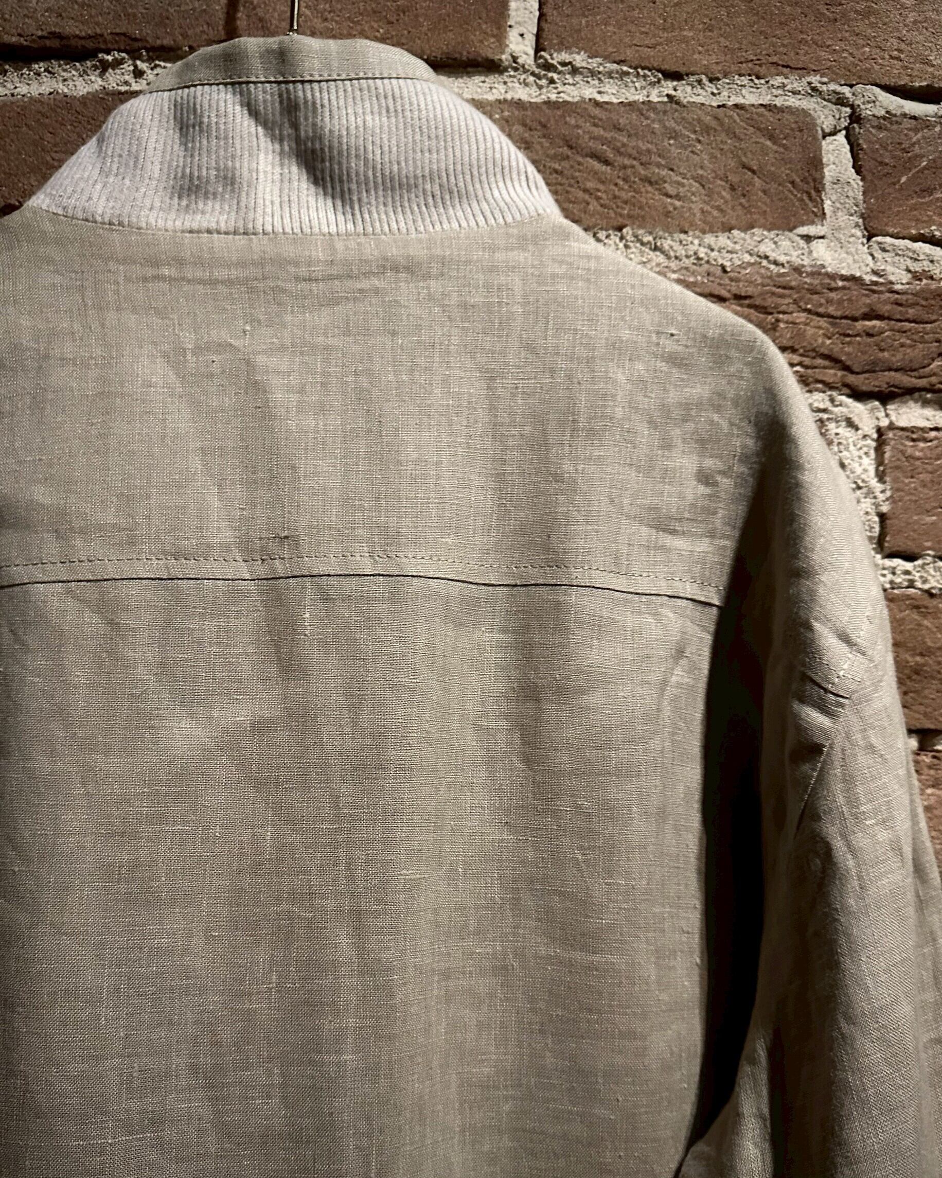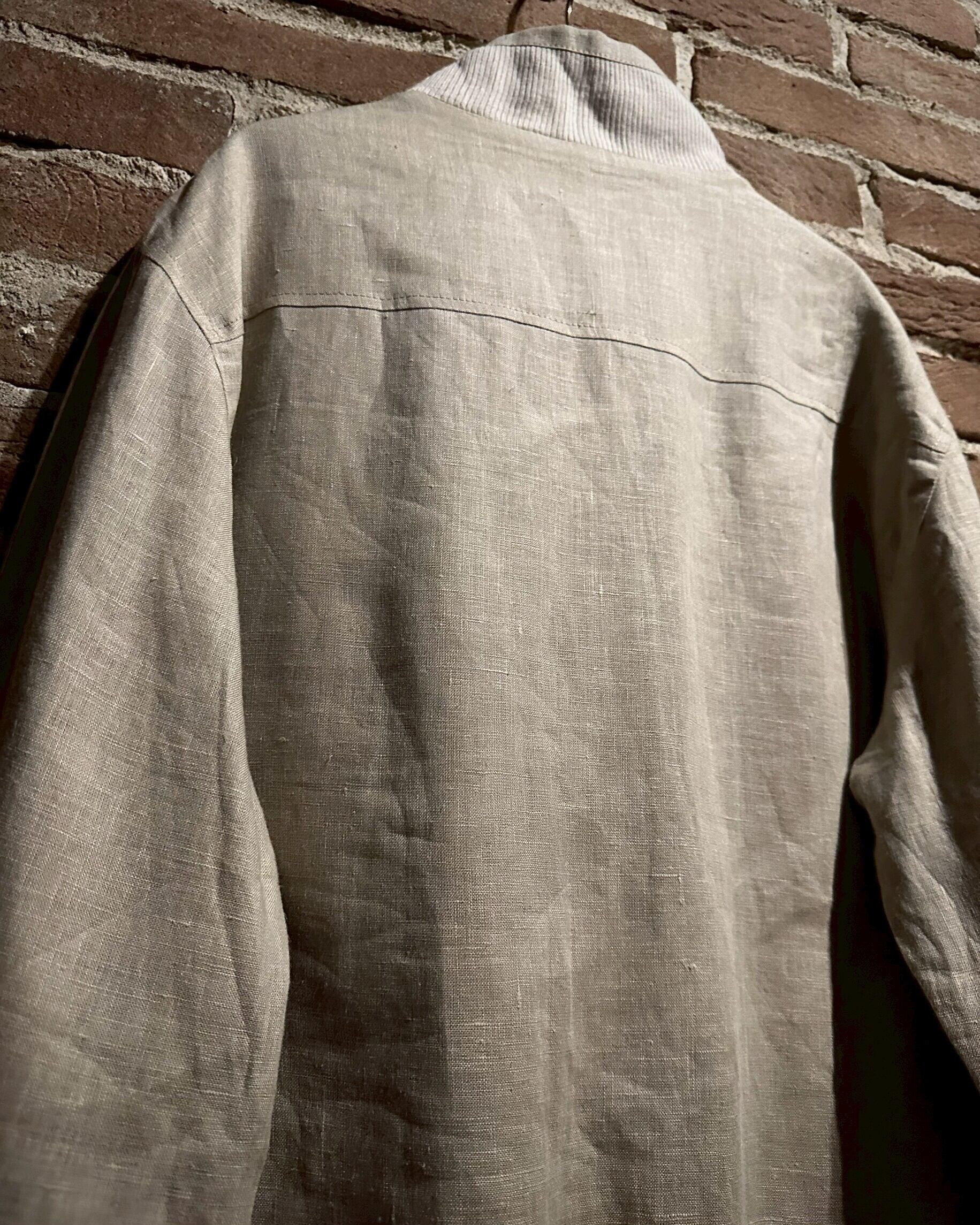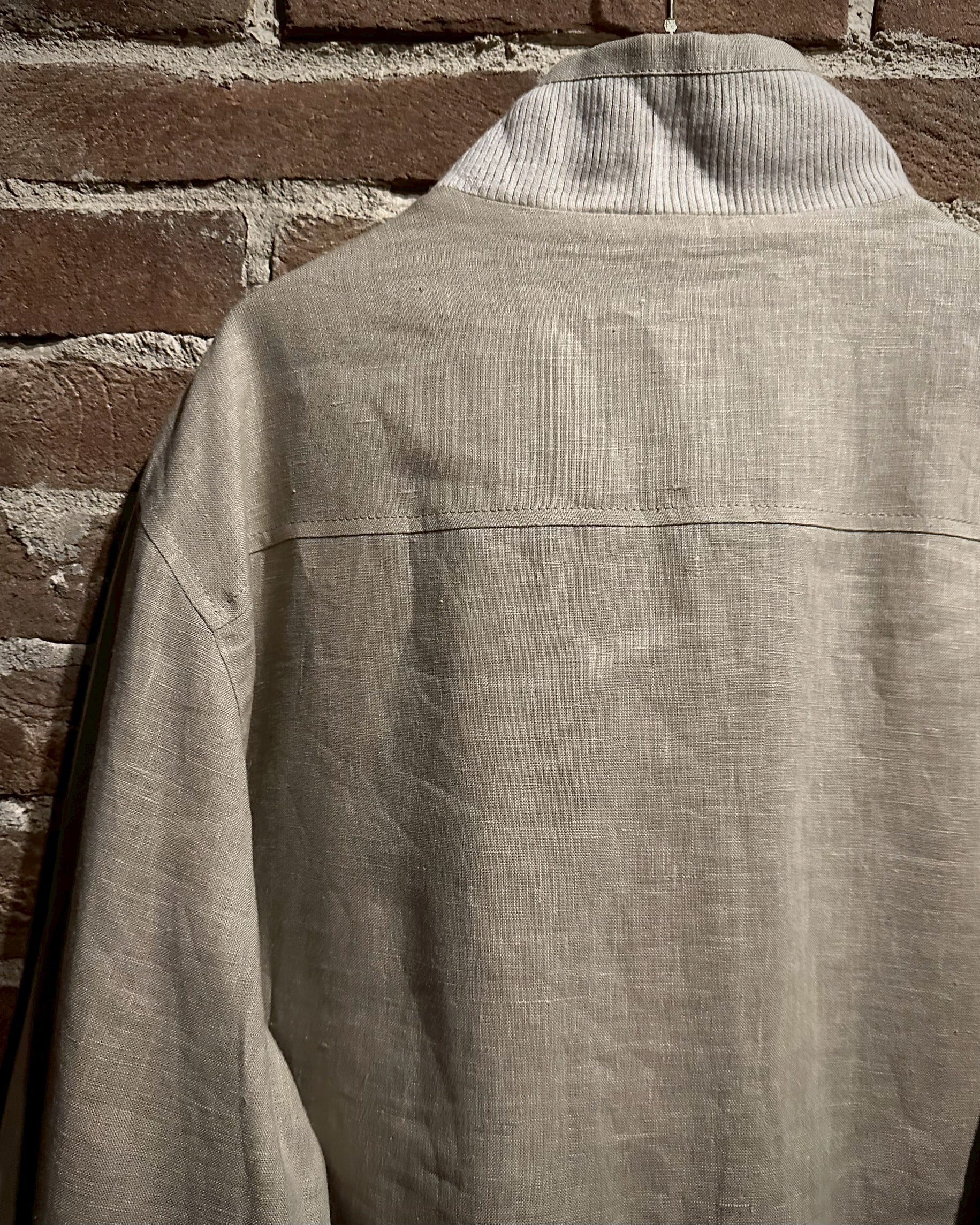 サラリとドライな質感のリネンを用いたボディに、フロントには大きめなフラップポケットを載せたジップアップジャケット。