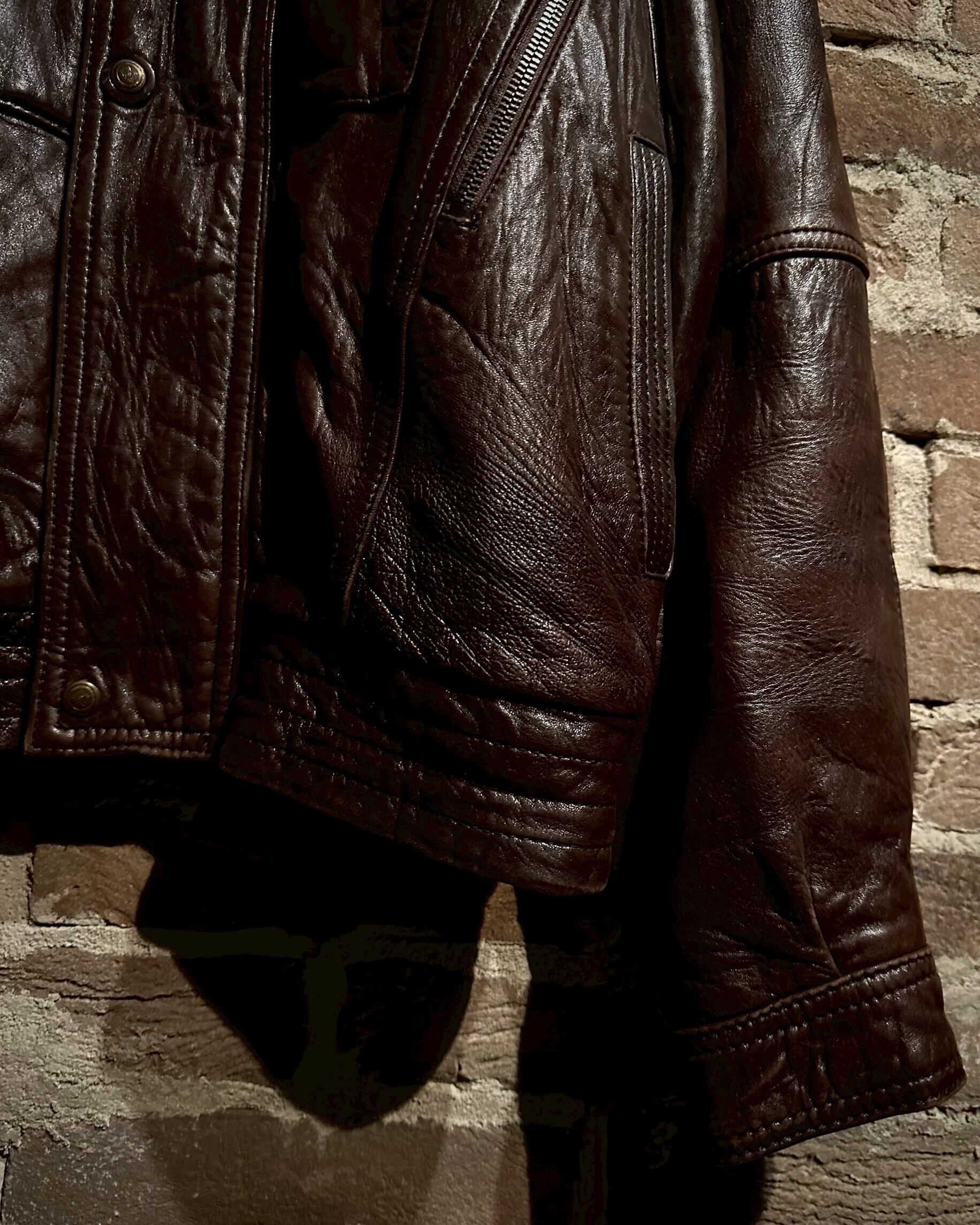 非常に柔らかく上質な濃いブラウンのレザーを採用したボディに、ジップ、パッチ、フラップポケットのギミックを落とし込んだレザージャケット。