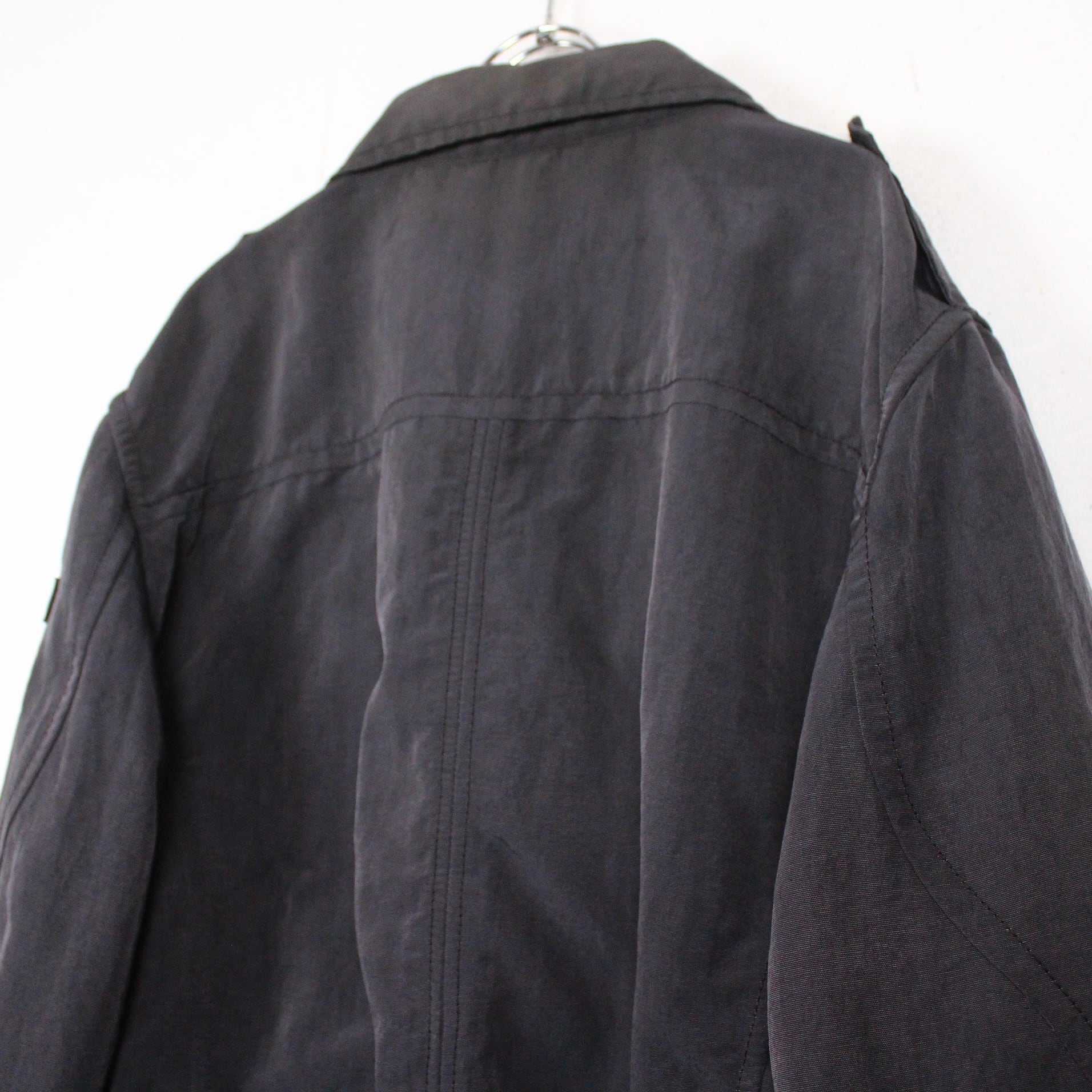 フェードグレーのボディをベースに、フロントにベルトを施したフラップポケットを載せたジップアップジャケット。