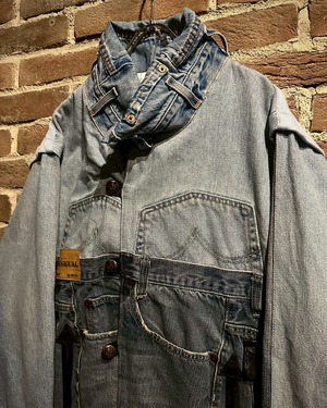 2種のデニムパンツを解体、ドッキングしリメイクしたスペシャルなデニムジャケット。