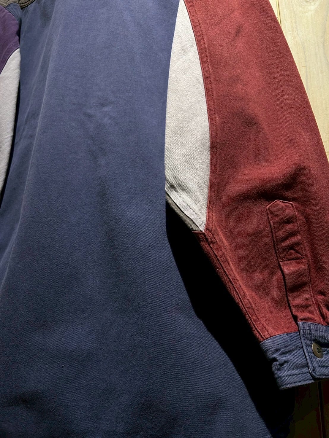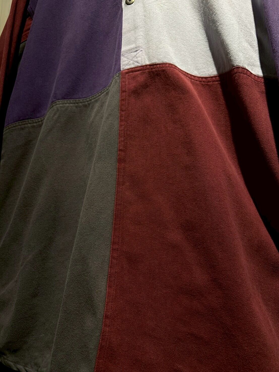 柔らかくコシのある上質なコットンを用いて、様々なカラーリングをパネル状に切り替えたシャツジャケット。