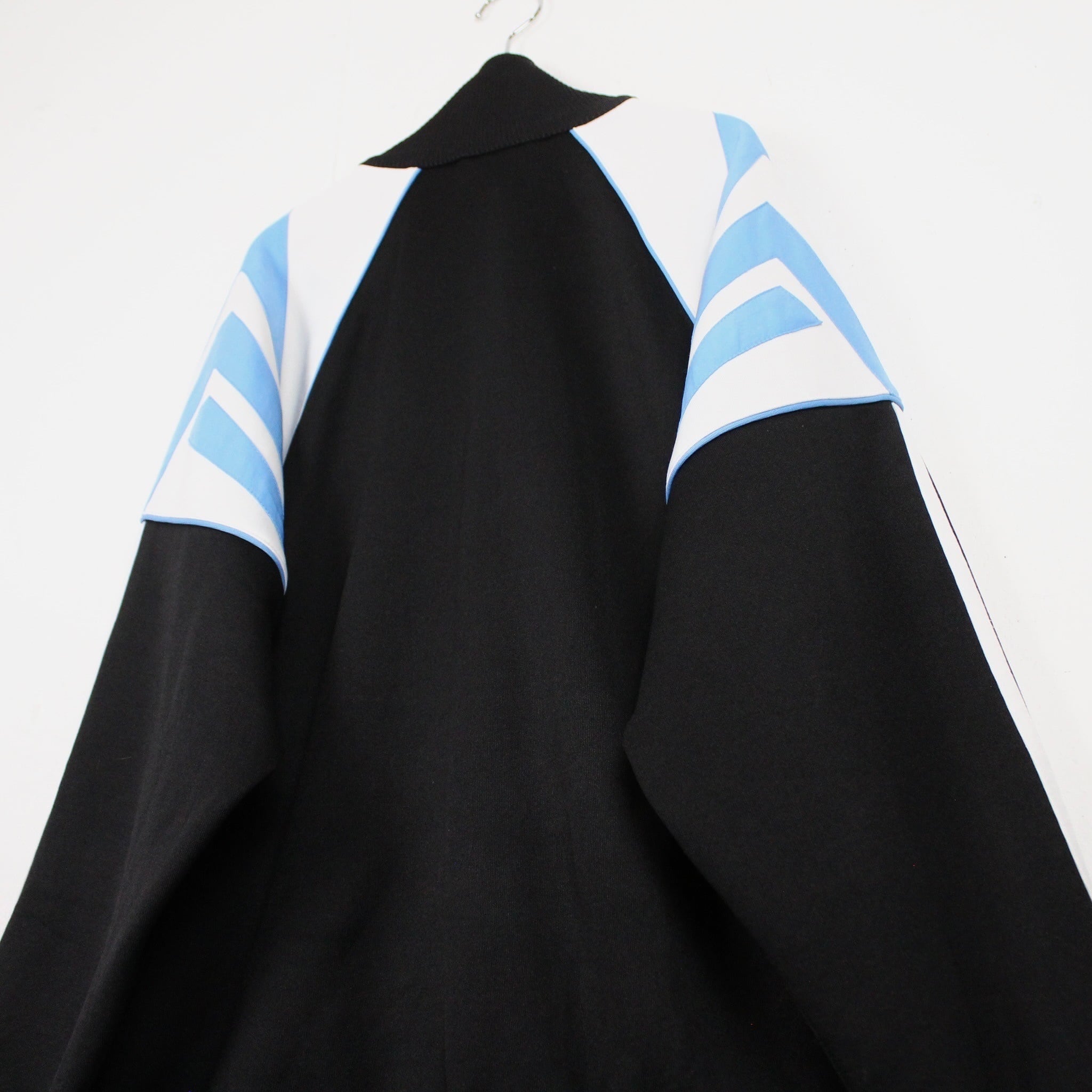 ブラック×ホワイト×水色のカラーリングで、エッジの効いた切り替えを施したadidasの80〜90'sヴィンテージのトラックジャケット。