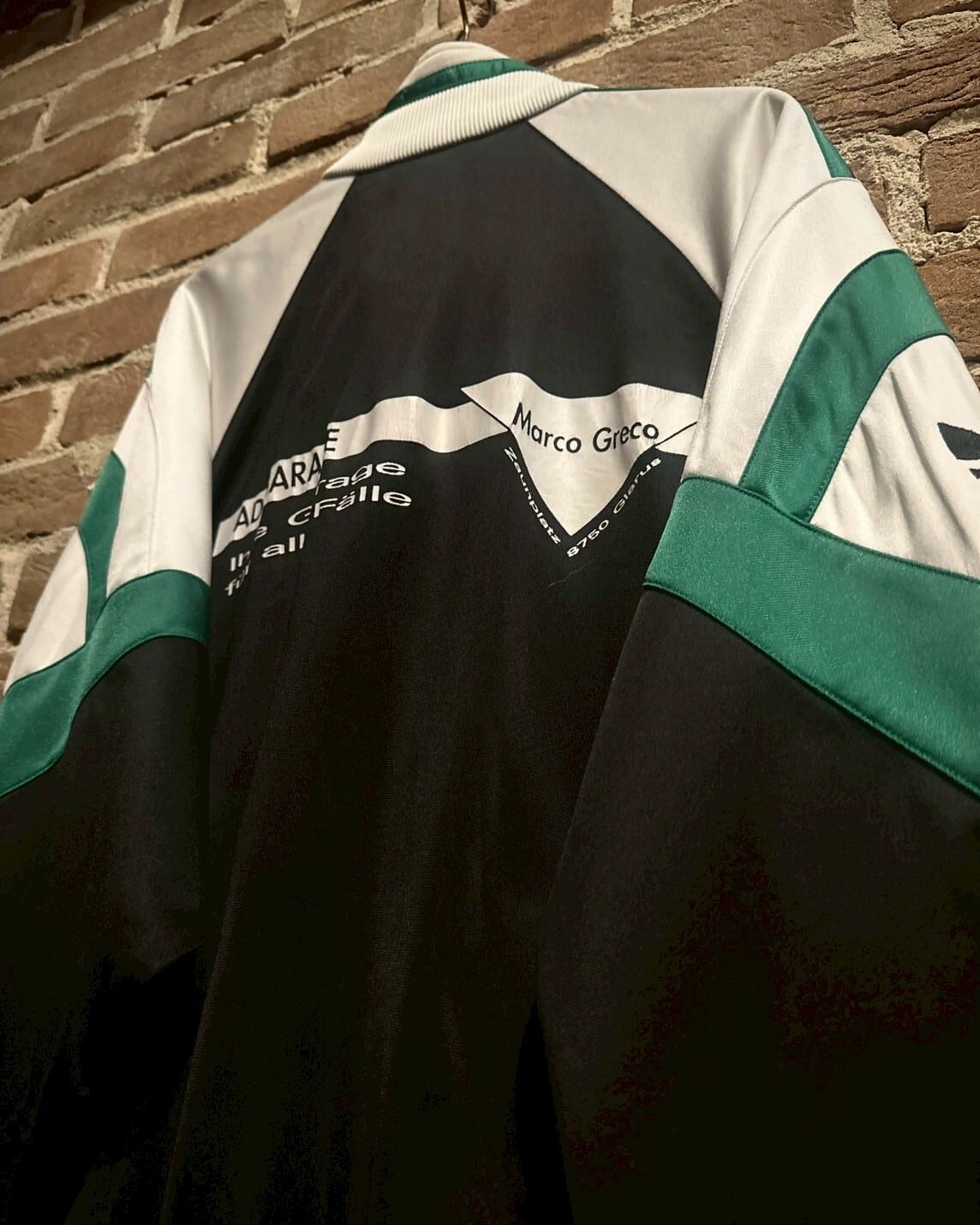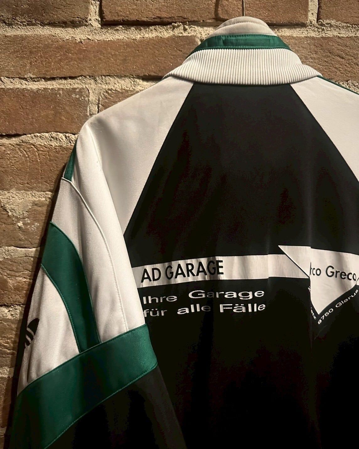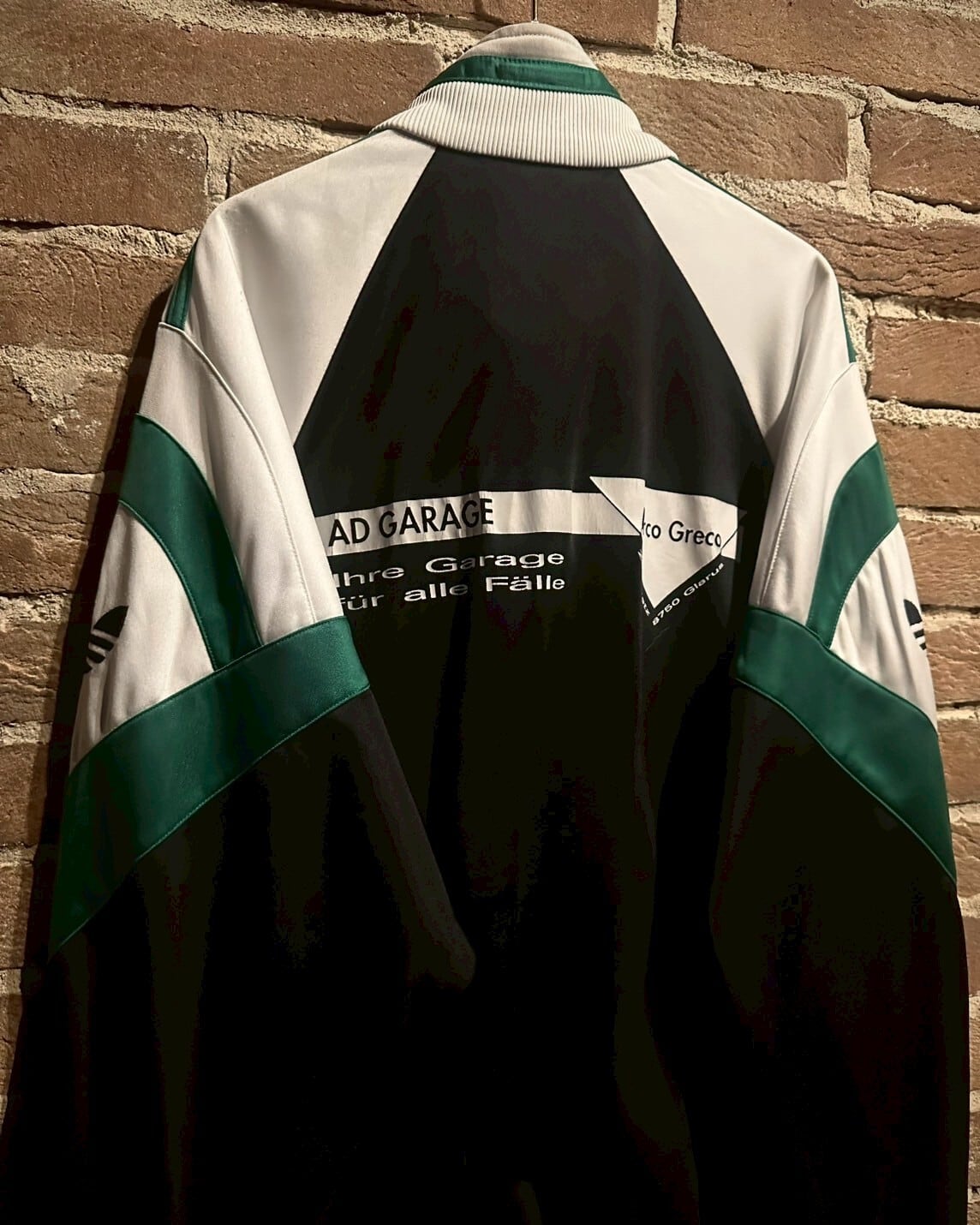 ブラックをベースに、グリーン×ホワイトで仕上げられたこの年代らしいスポーティながら配色がイケてる90'sのトラックジャケット。