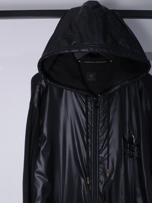 左胸にはエナメルのような光沢を放つロゴプリント、アームには象徴的な3本のラインをON。ジップアップのフーディタイプで今まさに気分の方も多いのではないでしょうか。