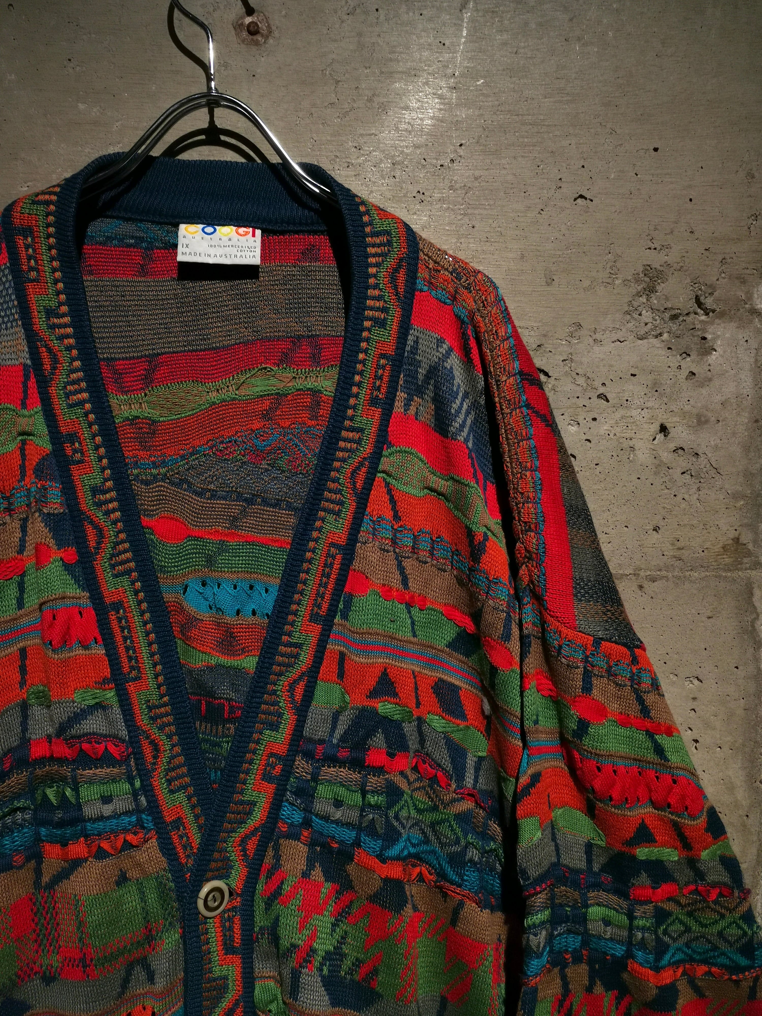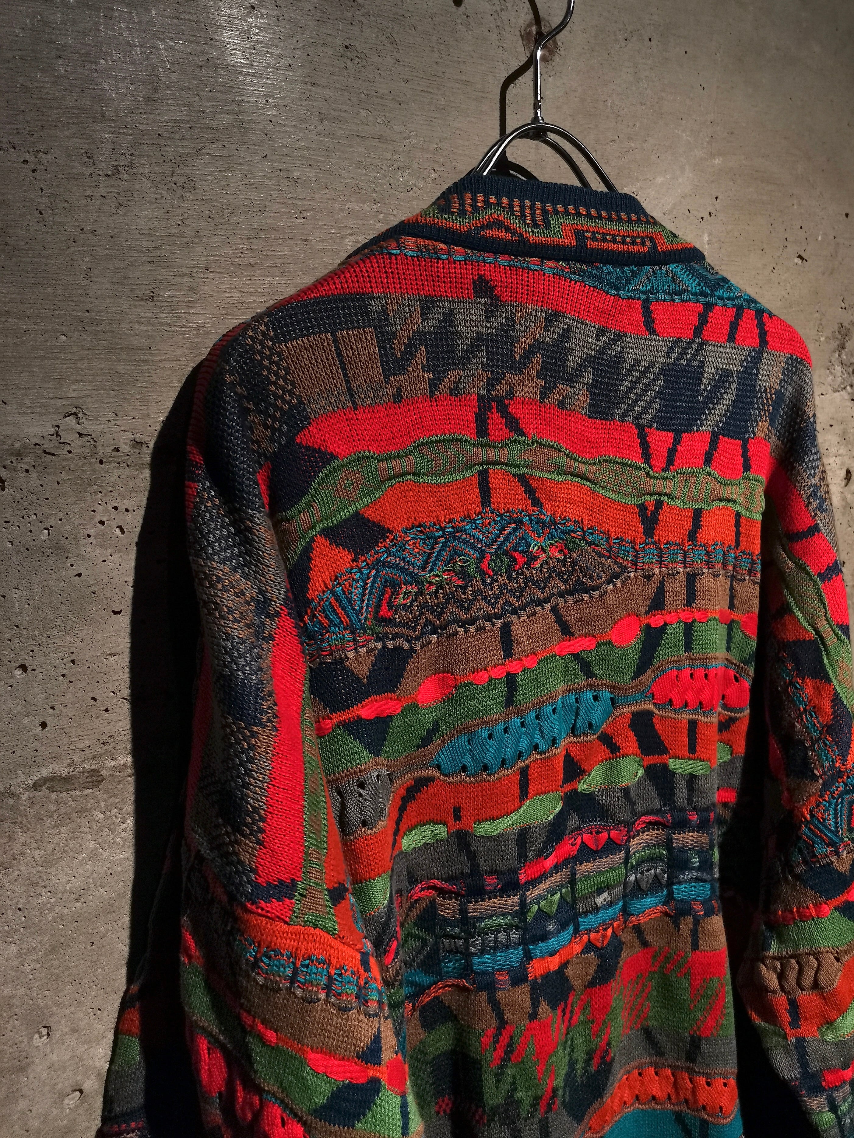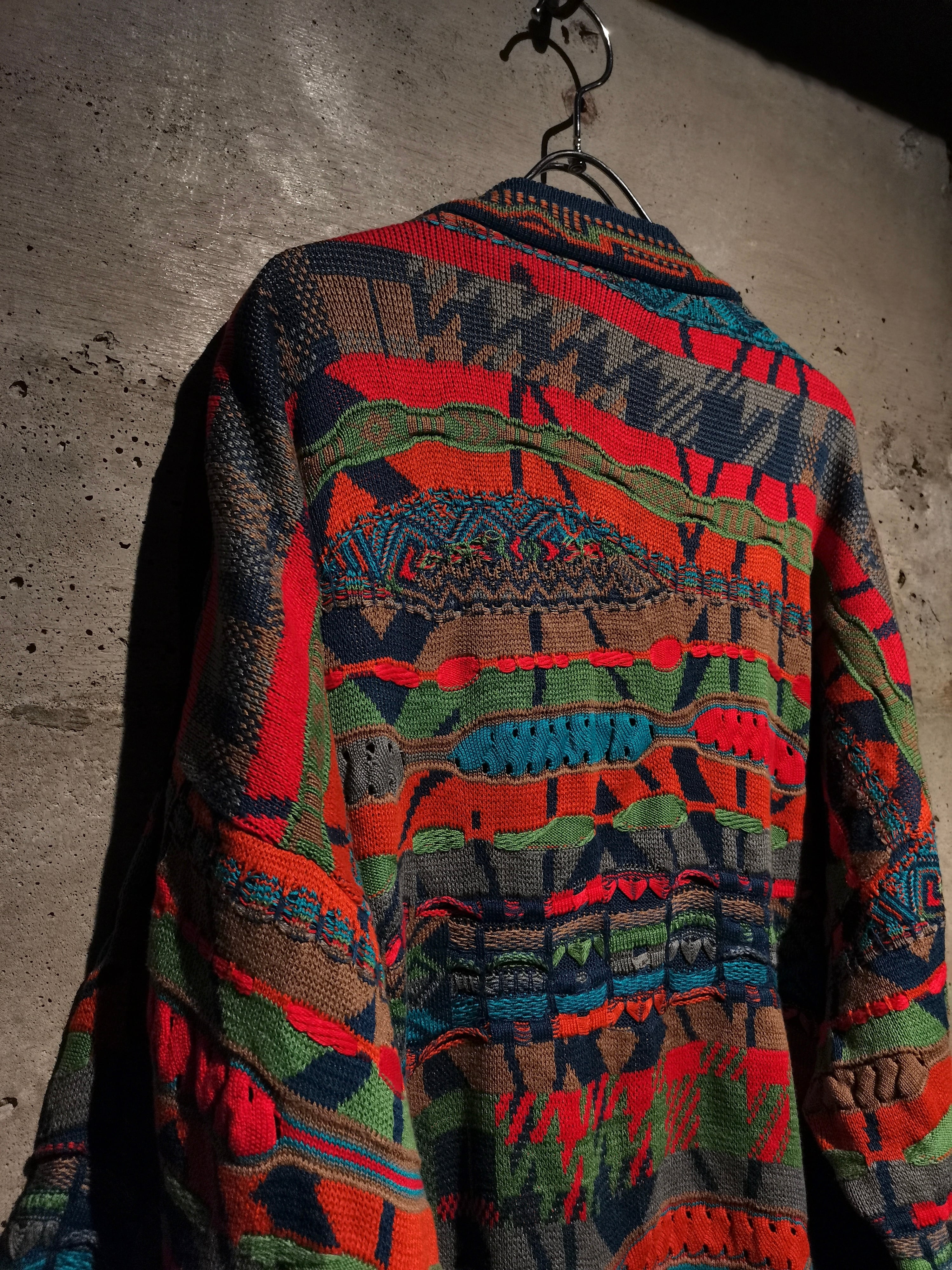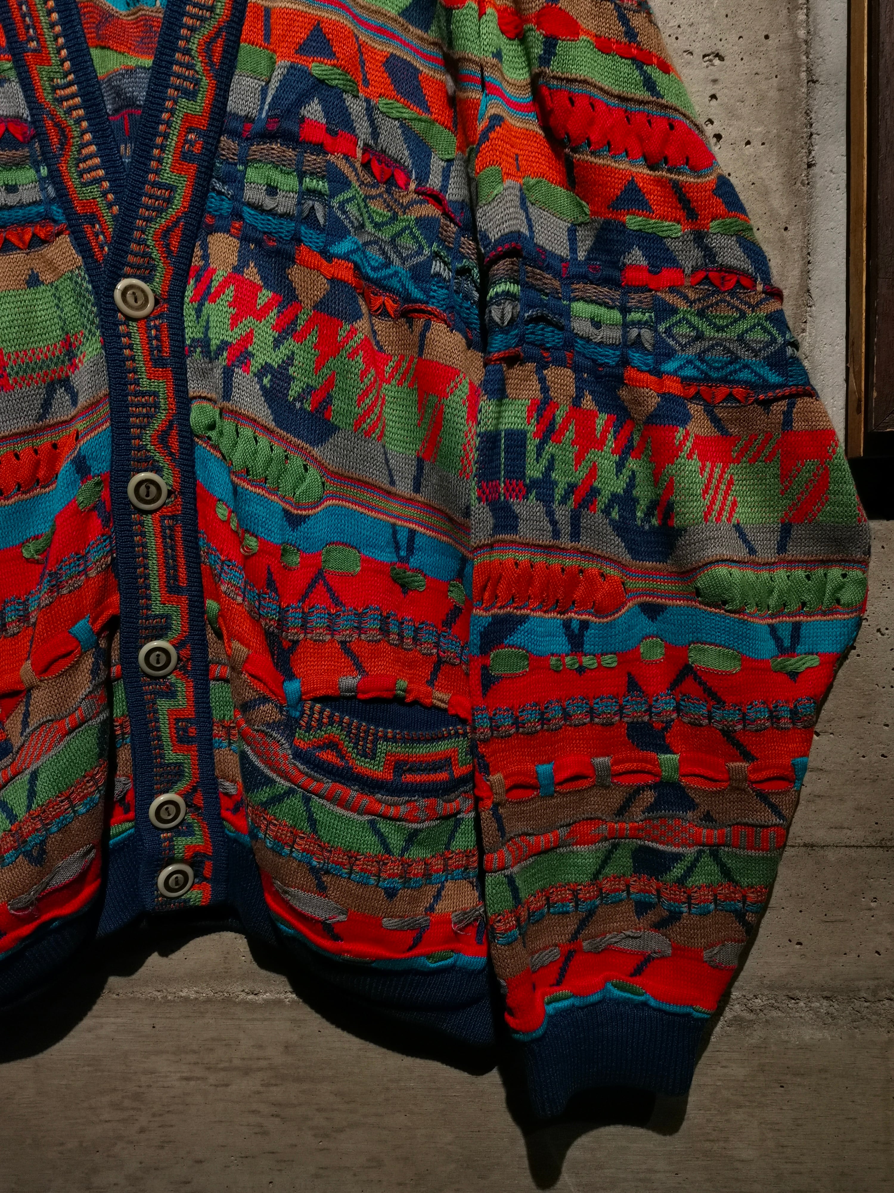 年々稀少価値が高まり、国内外共に著しい高騰化を見せる3Dニットより、3Dニットの本家大元、我らが"COOGI"の逸品。その中でも非常に珍しいカーディガンタイプの1着。