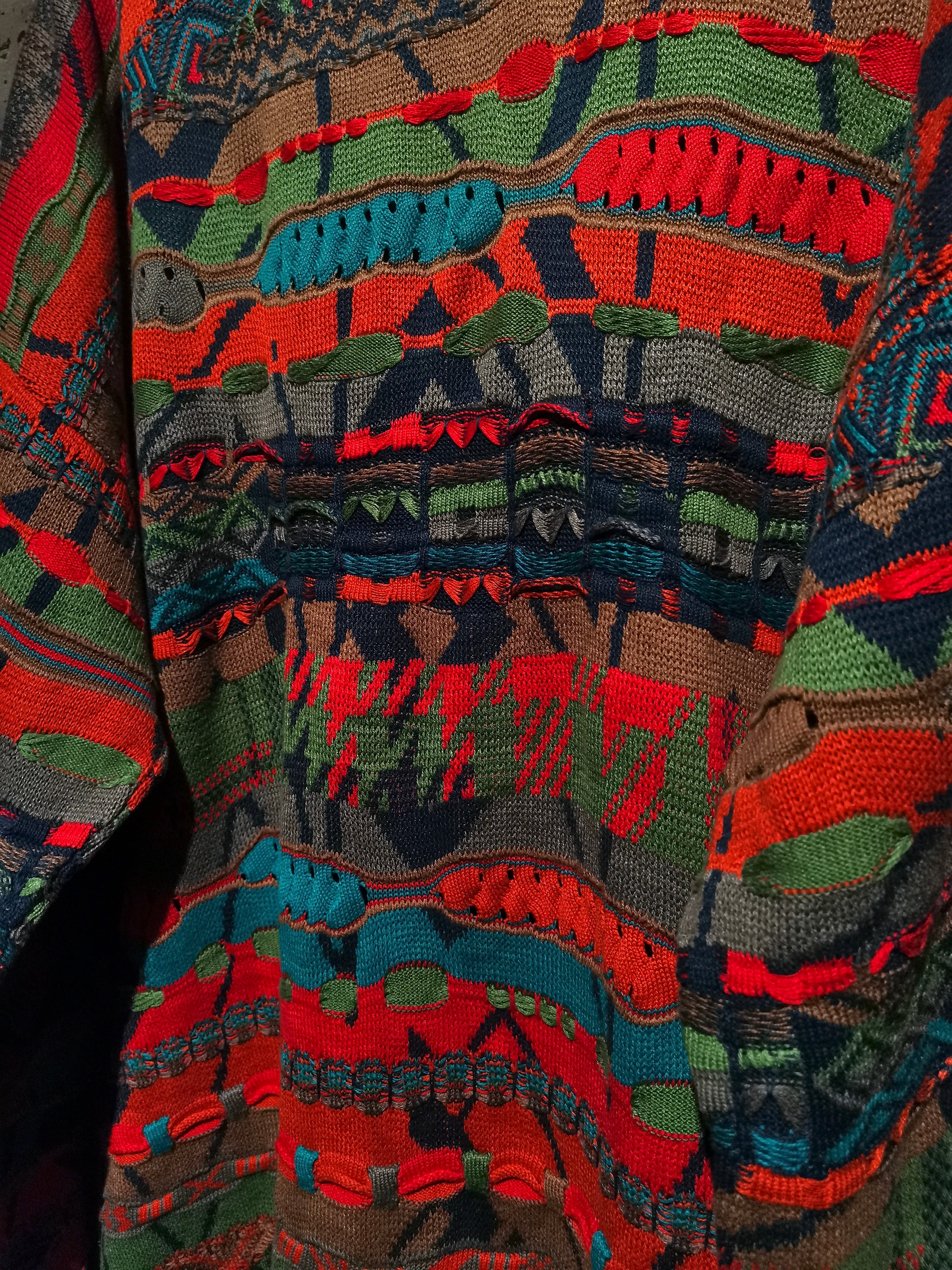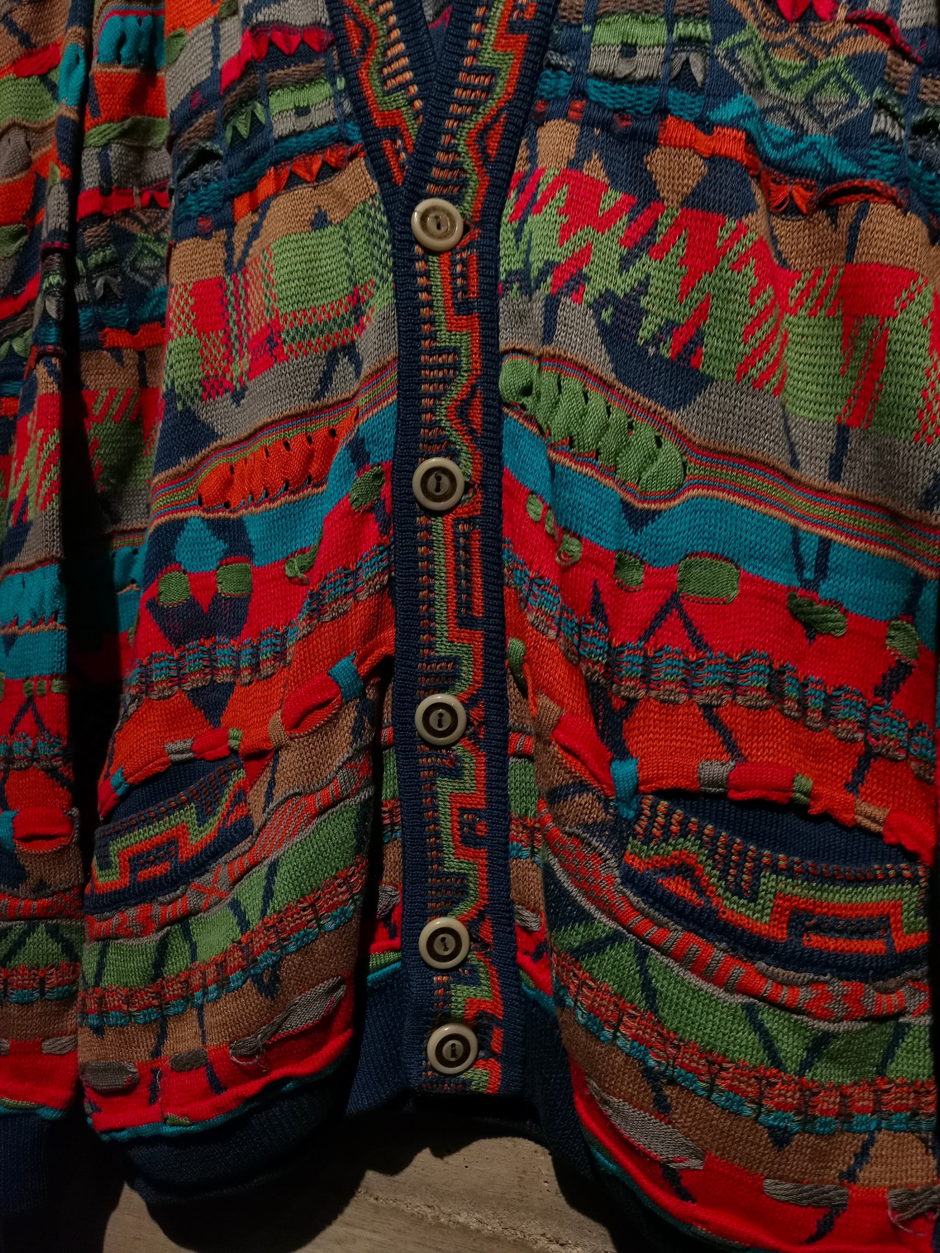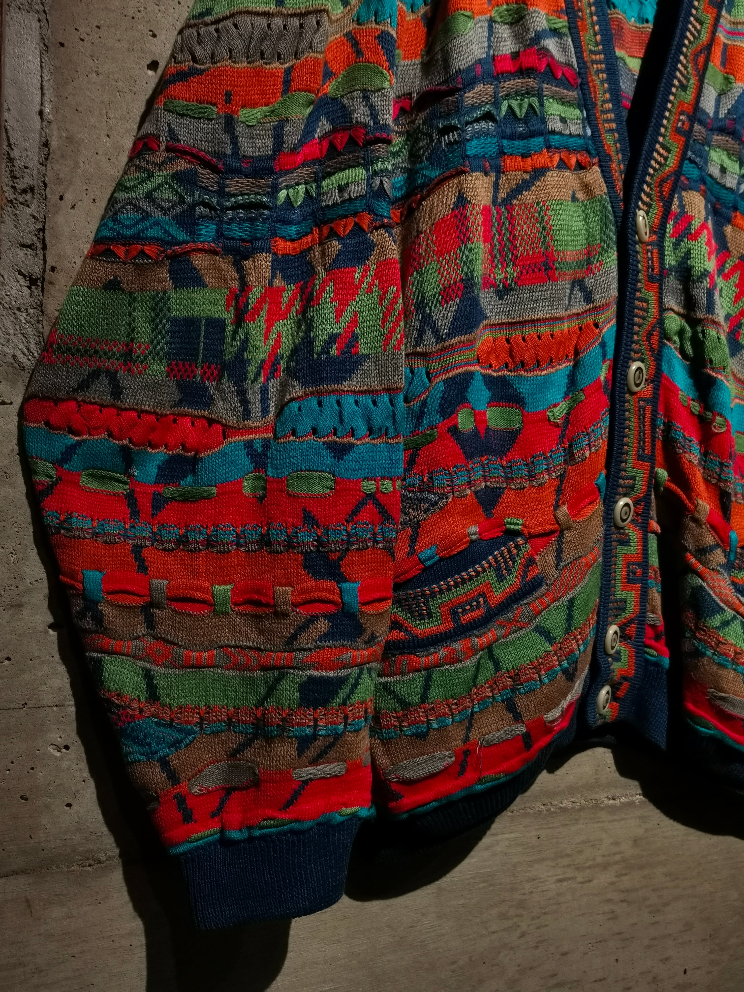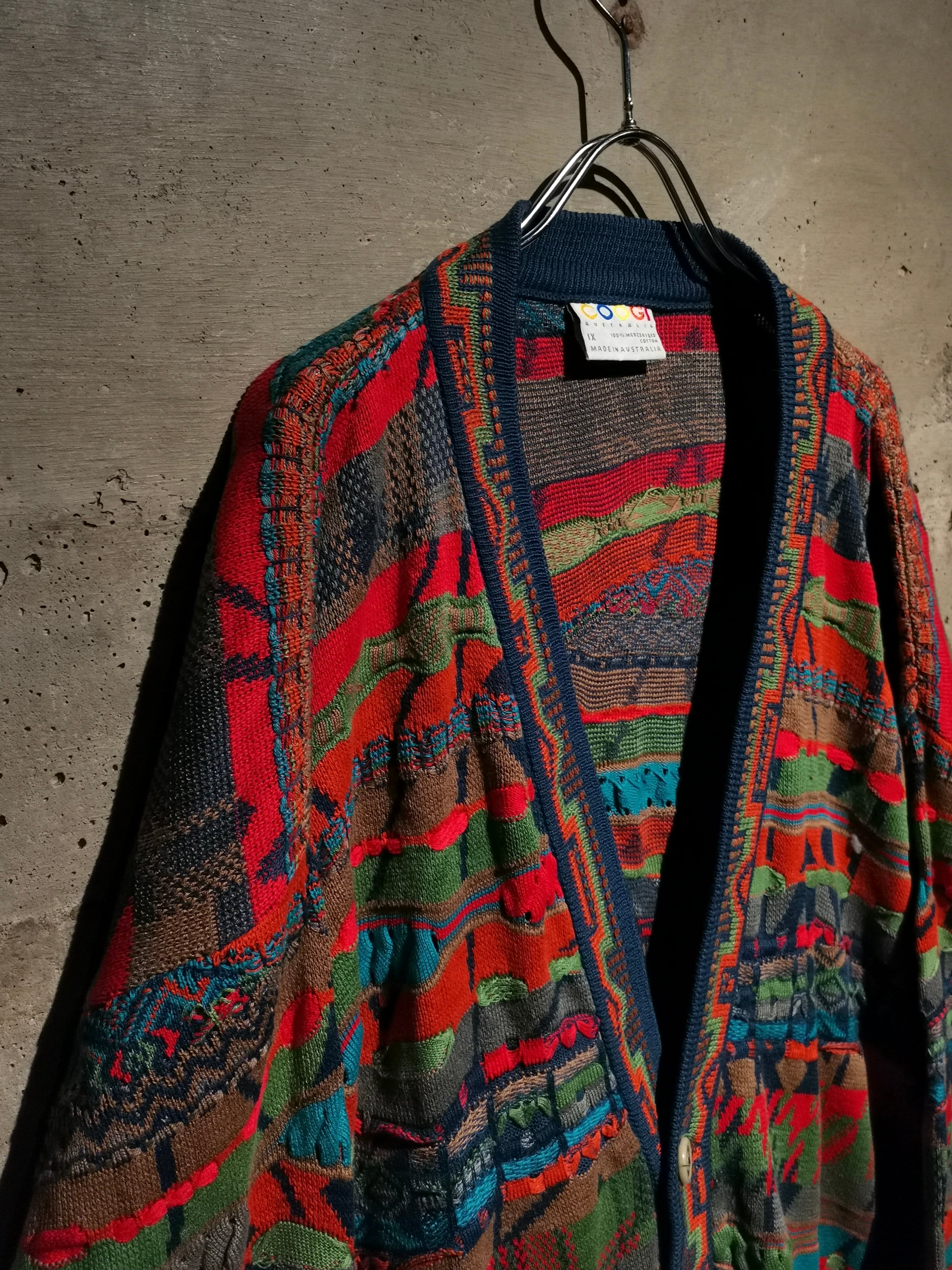 年々稀少価値が高まり、国内外共に著しい高騰化を見せる3Dニットより、3Dニットの本家大元、我らが"COOGI"の逸品。その中でも非常に珍しいカーディガンタイプの1着。