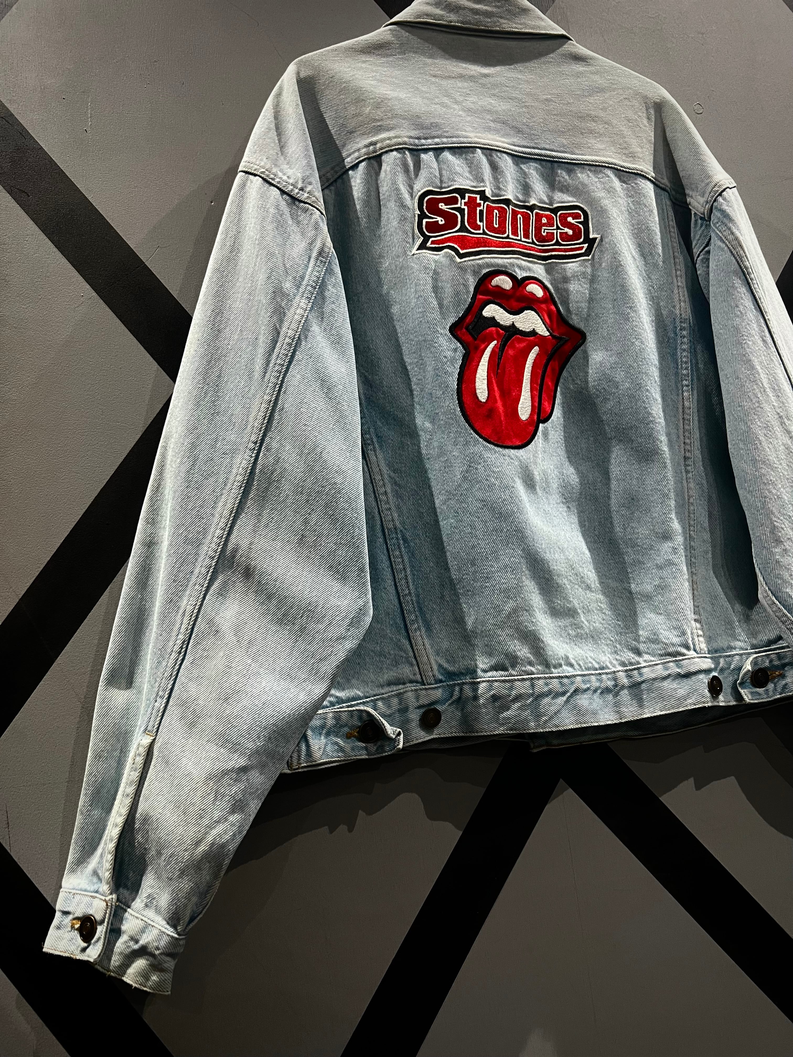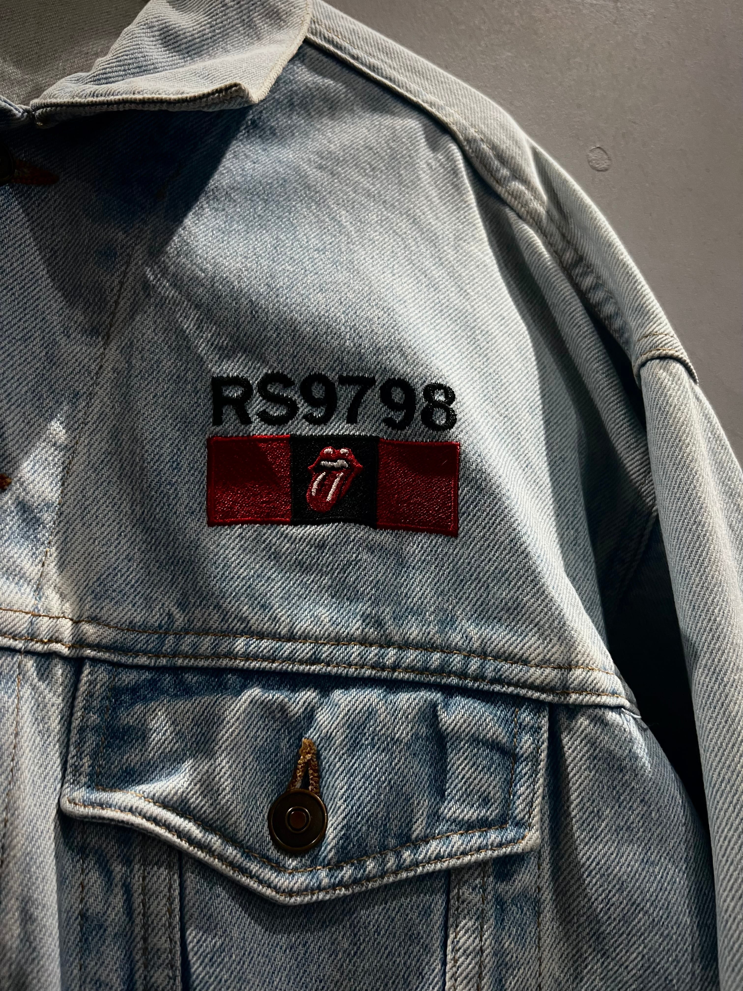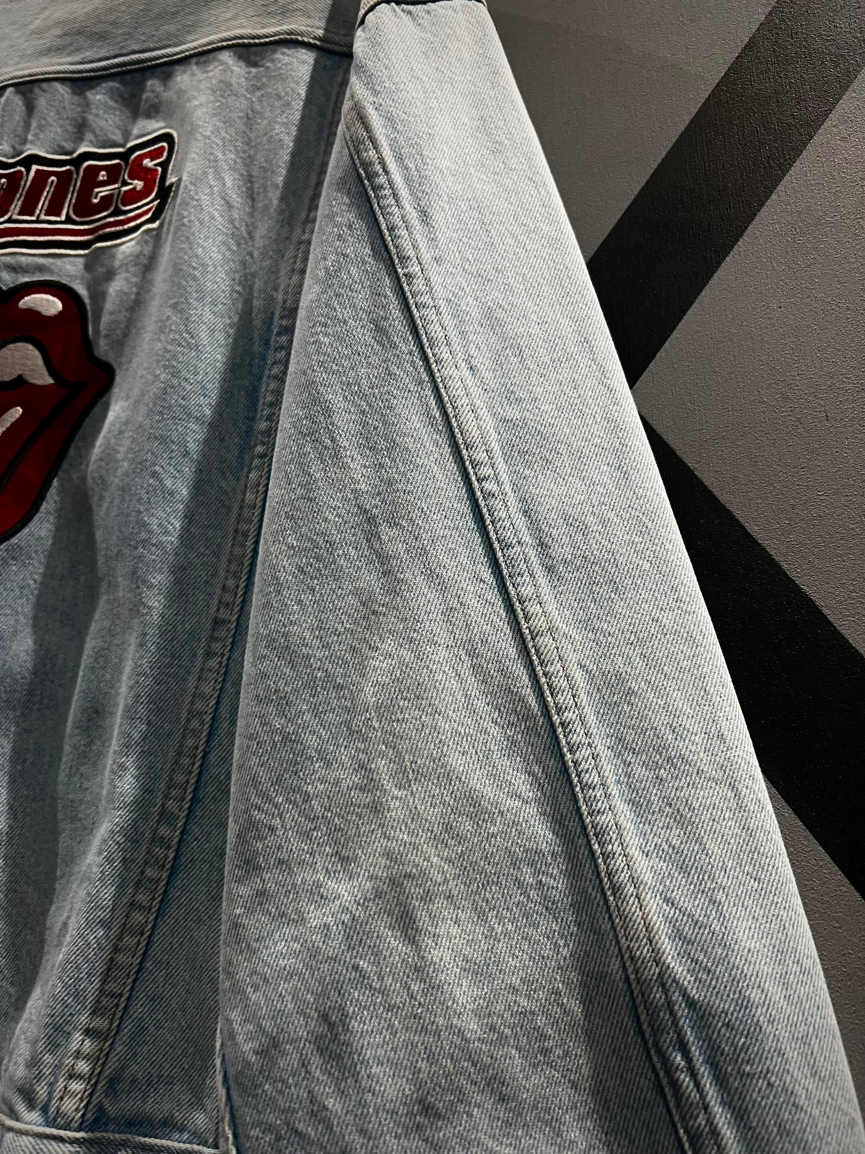 アイスブルーのデニムボディをベースに、影響力ある無数の楽曲を生み出し、ファッションにおいても新たな流行を創出したイギリスのロックバンド"The Rolling Stones"のデザインを乗せたデニムジャケット。