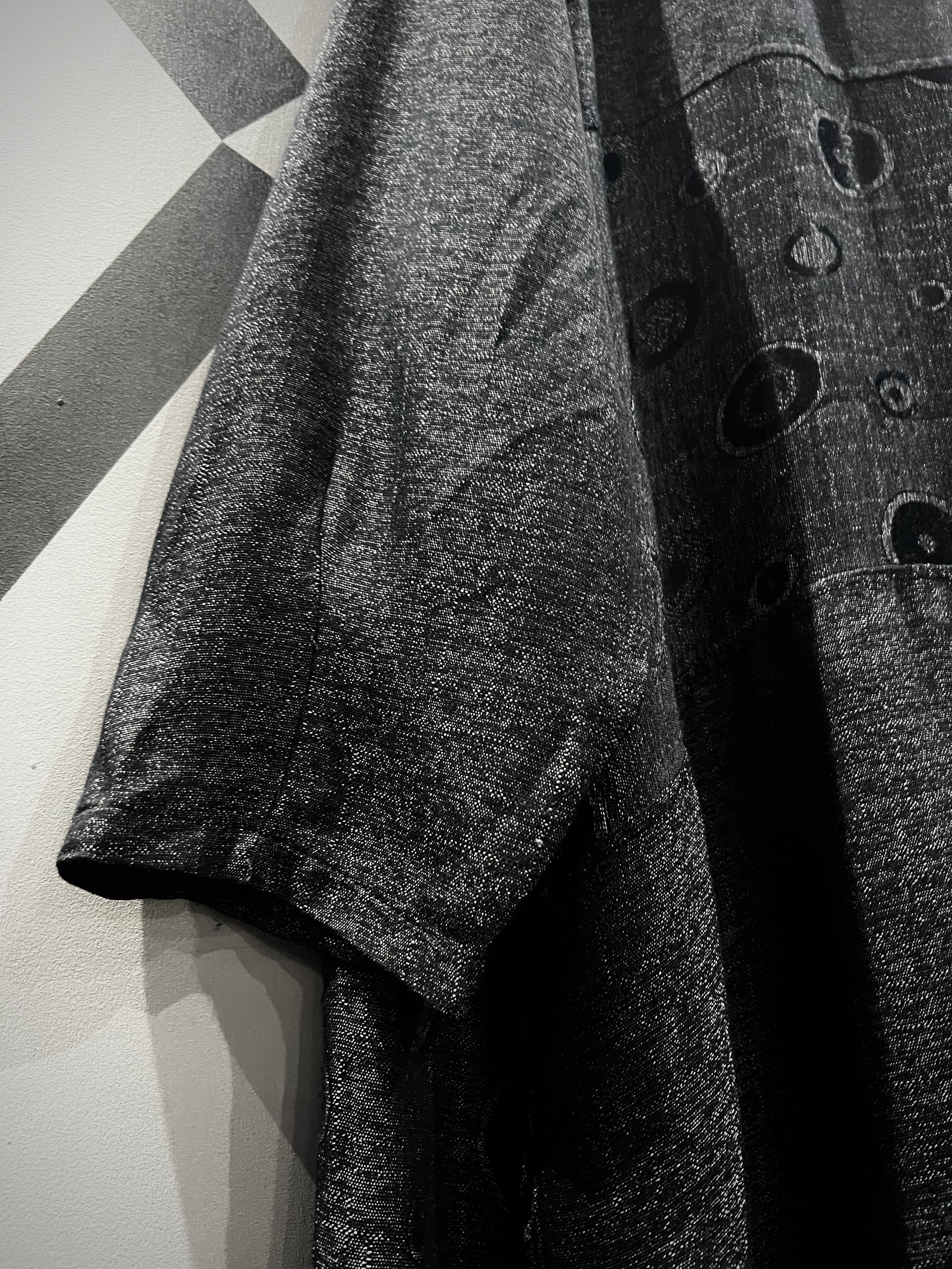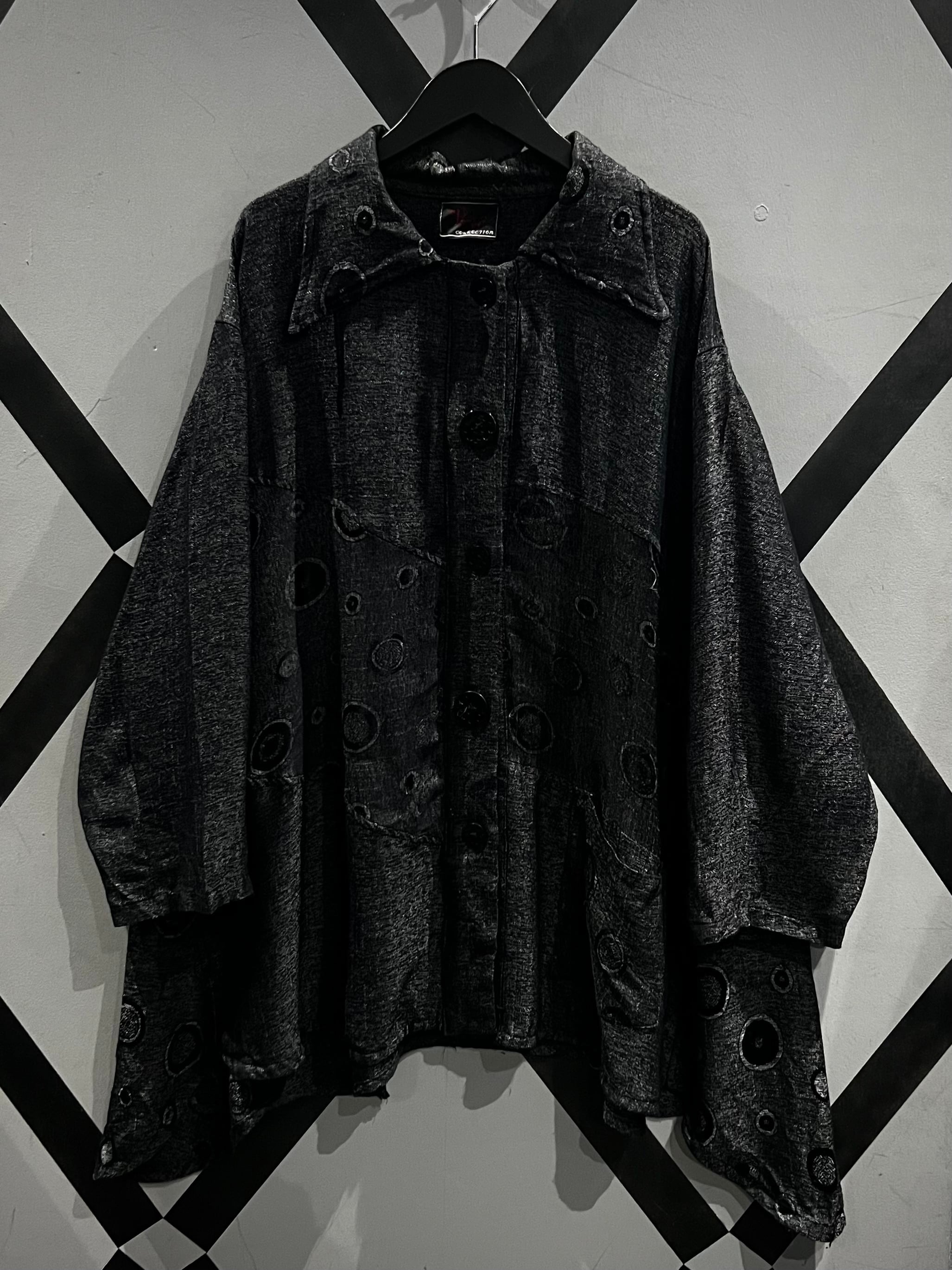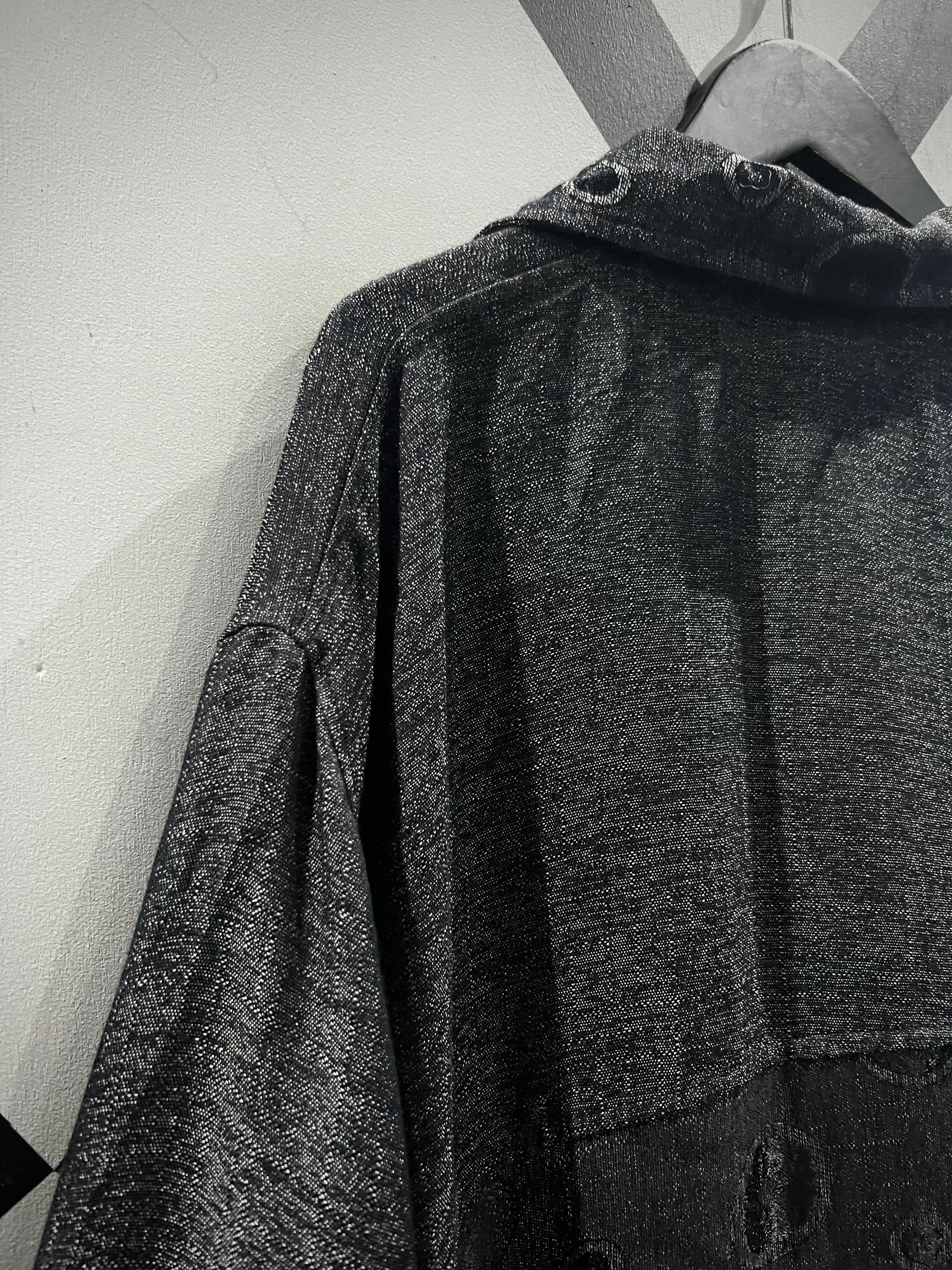 ブラックのコットンレーヨンボディをベースに、サークル状の柄を無数に載せたシャツジャケット。