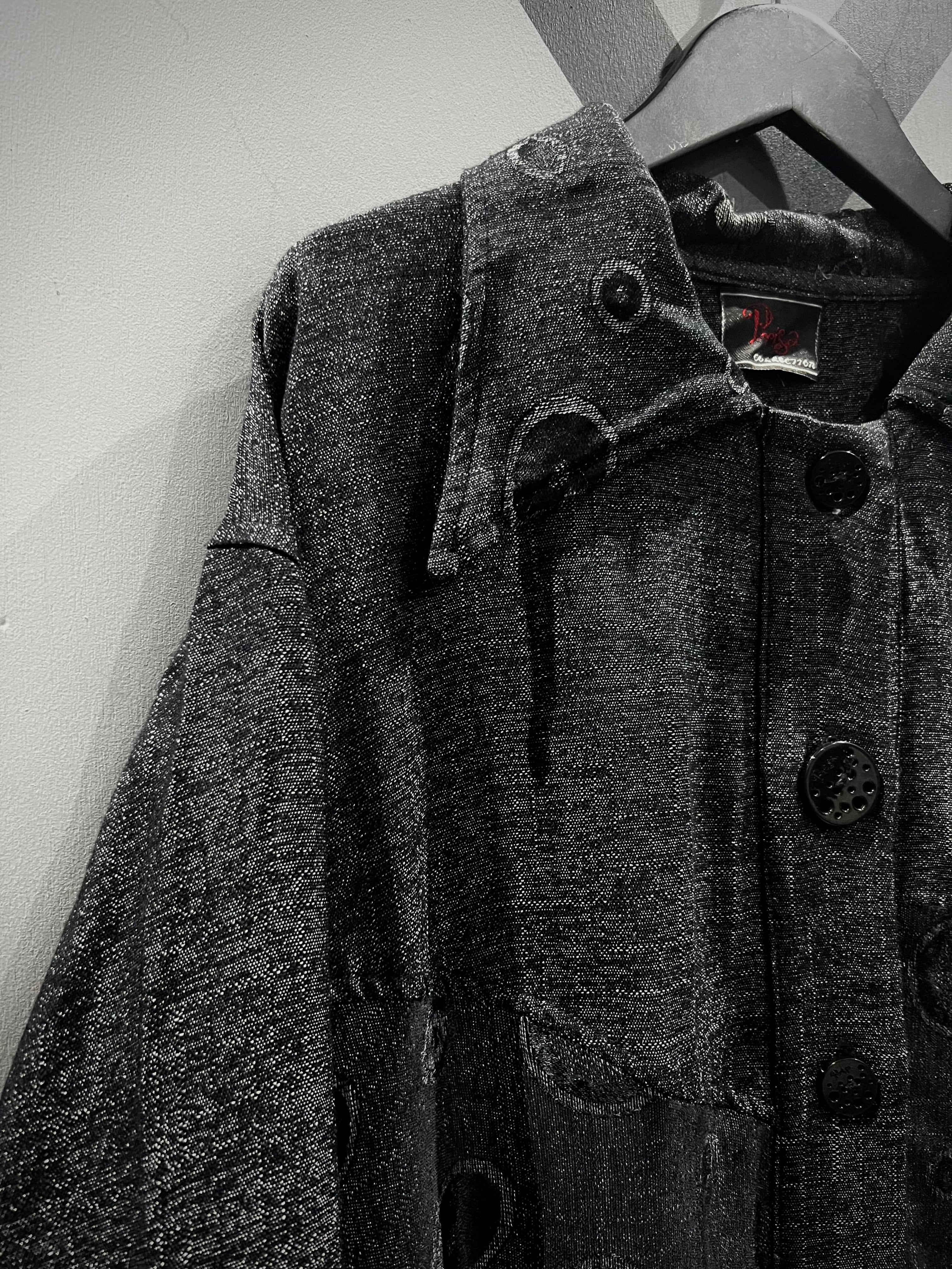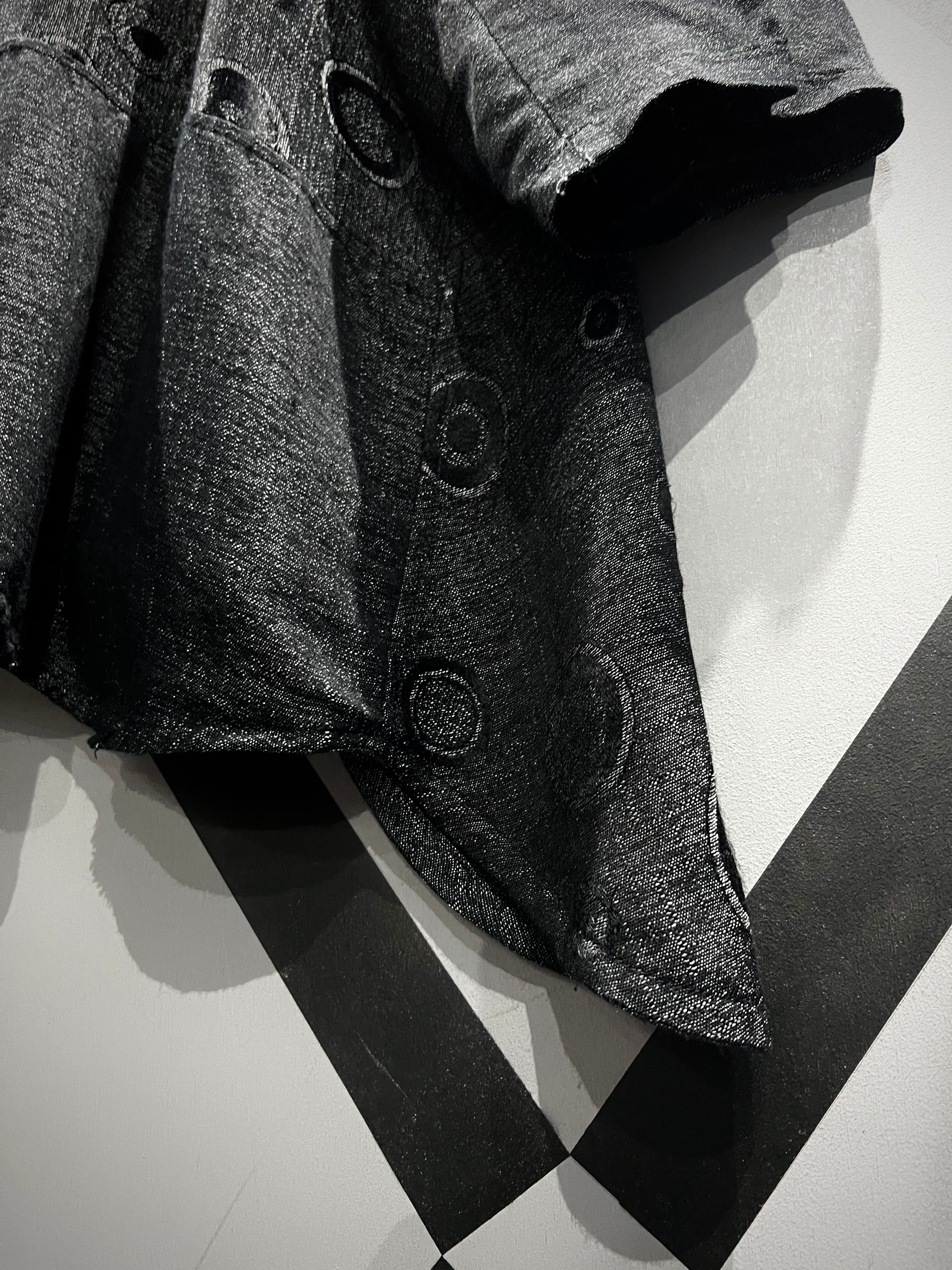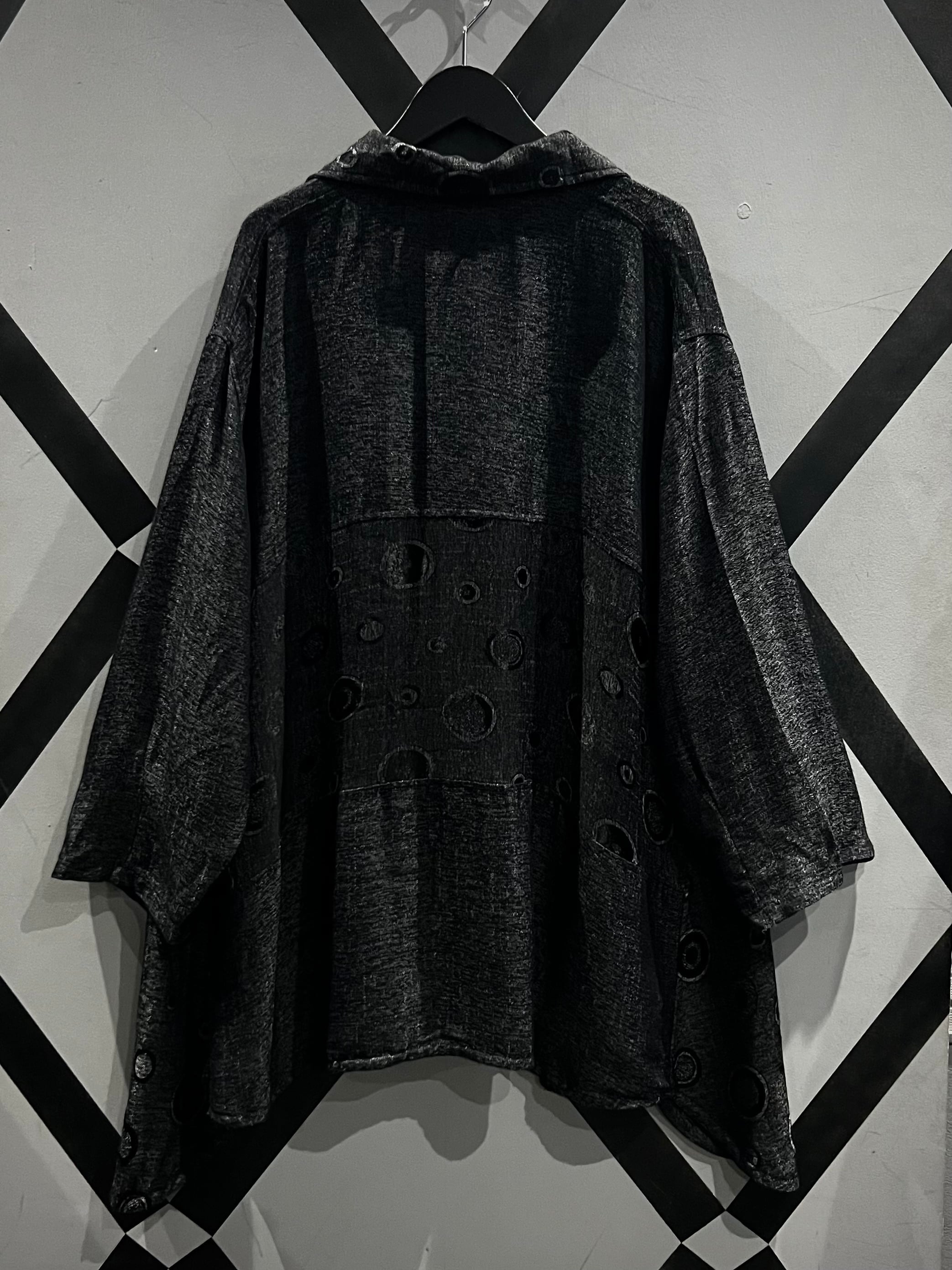 ブラックのコットンレーヨンボディをベースに、サークル状の柄を無数に載せたシャツジャケット。