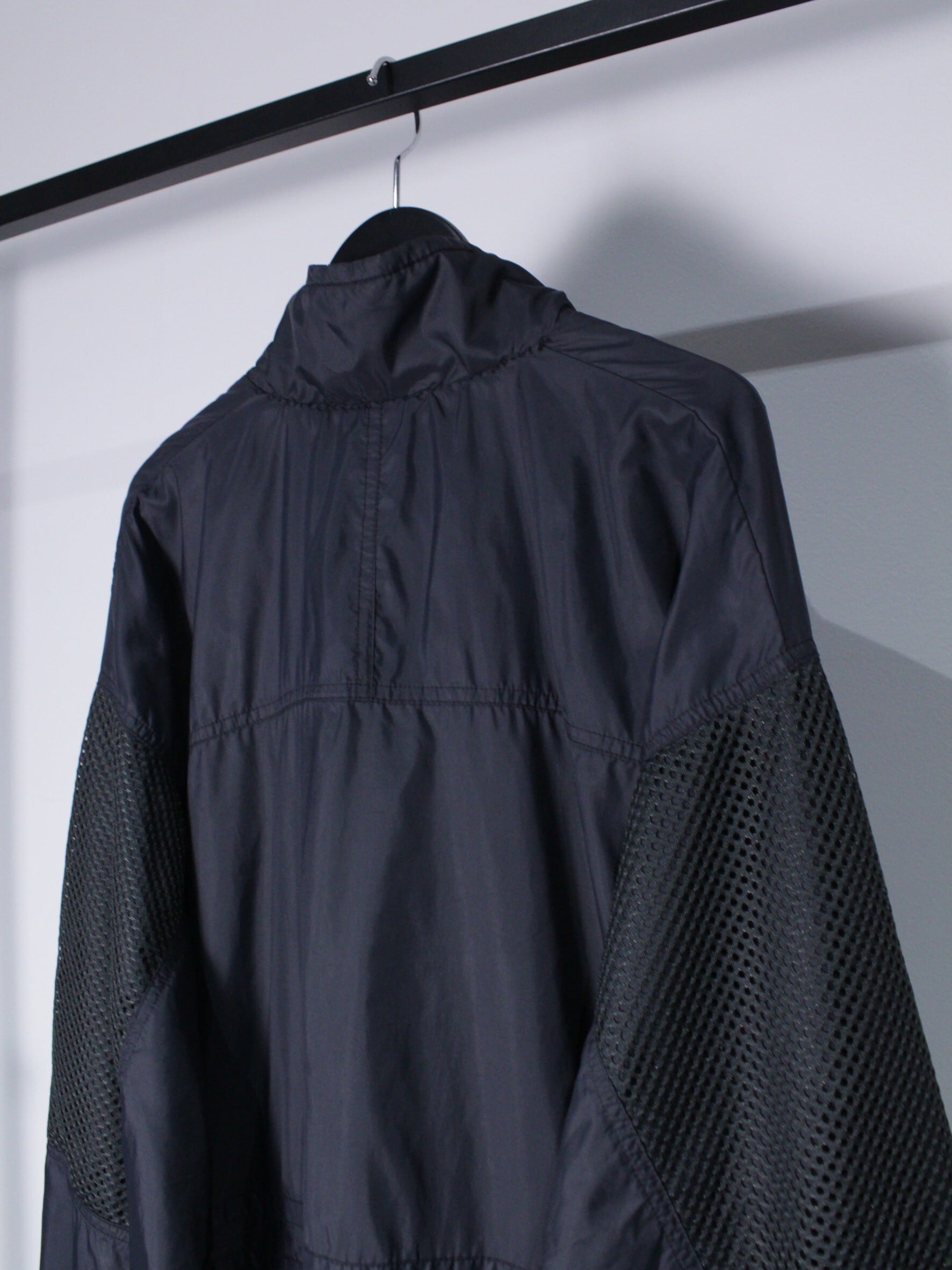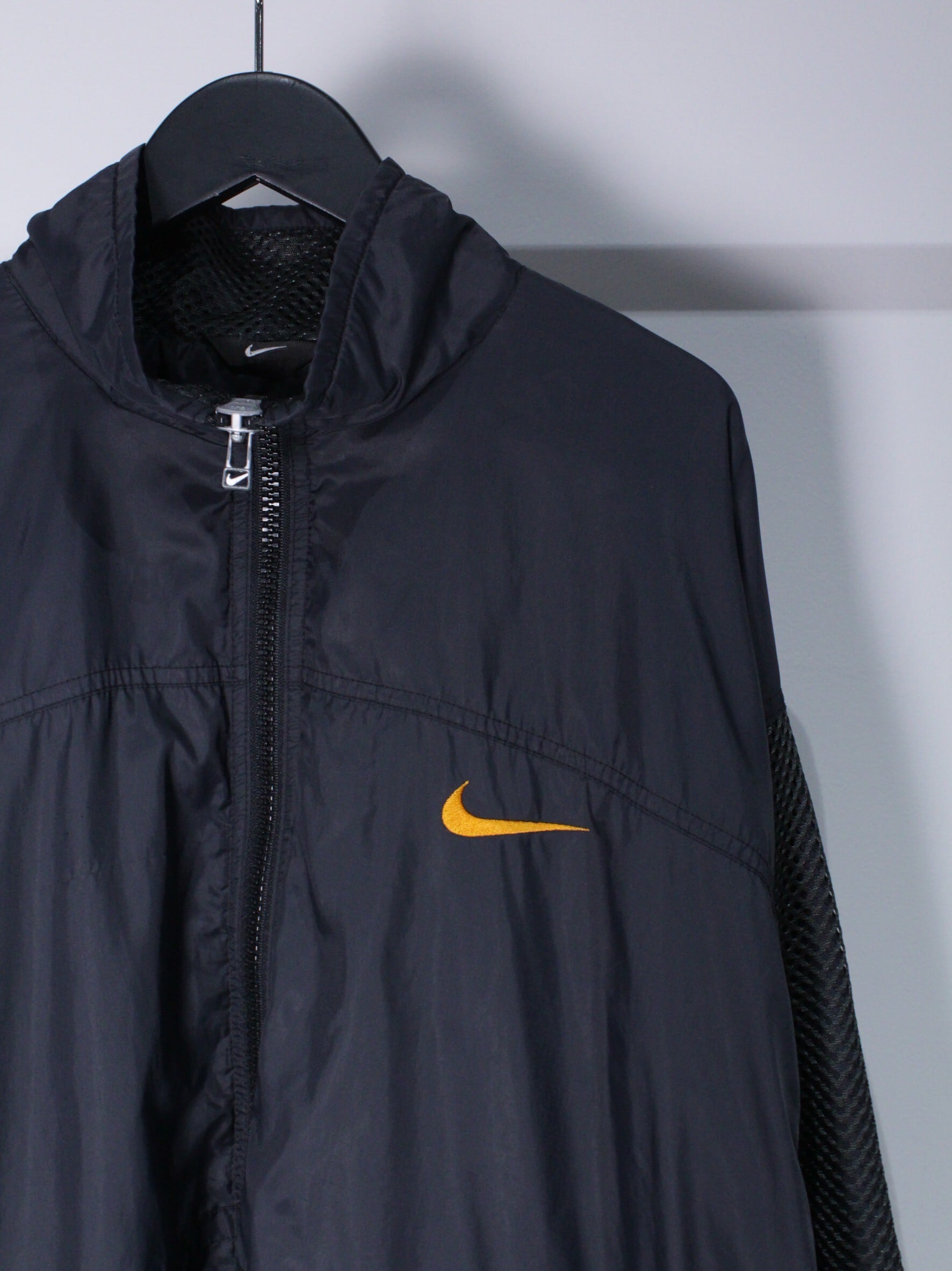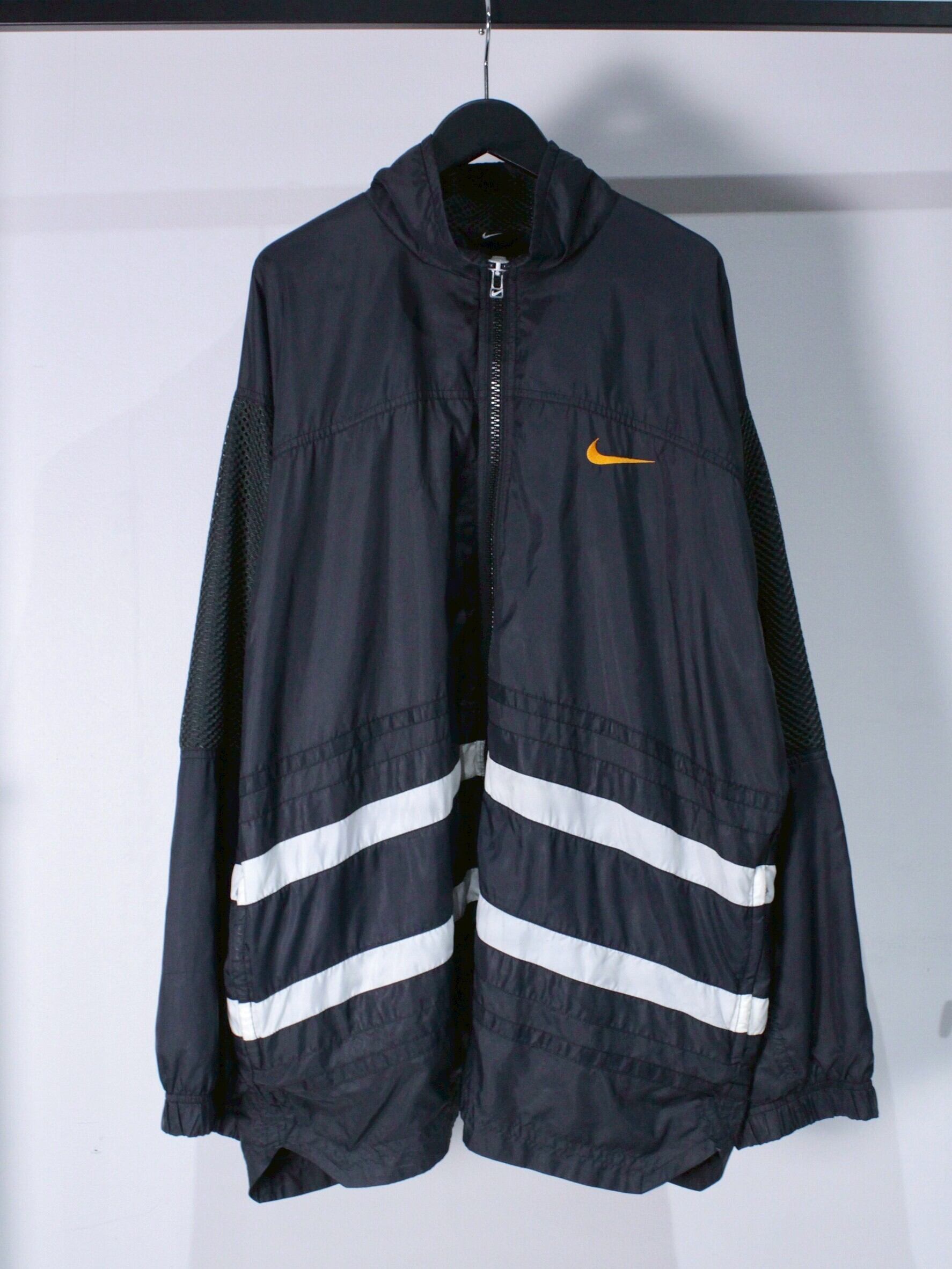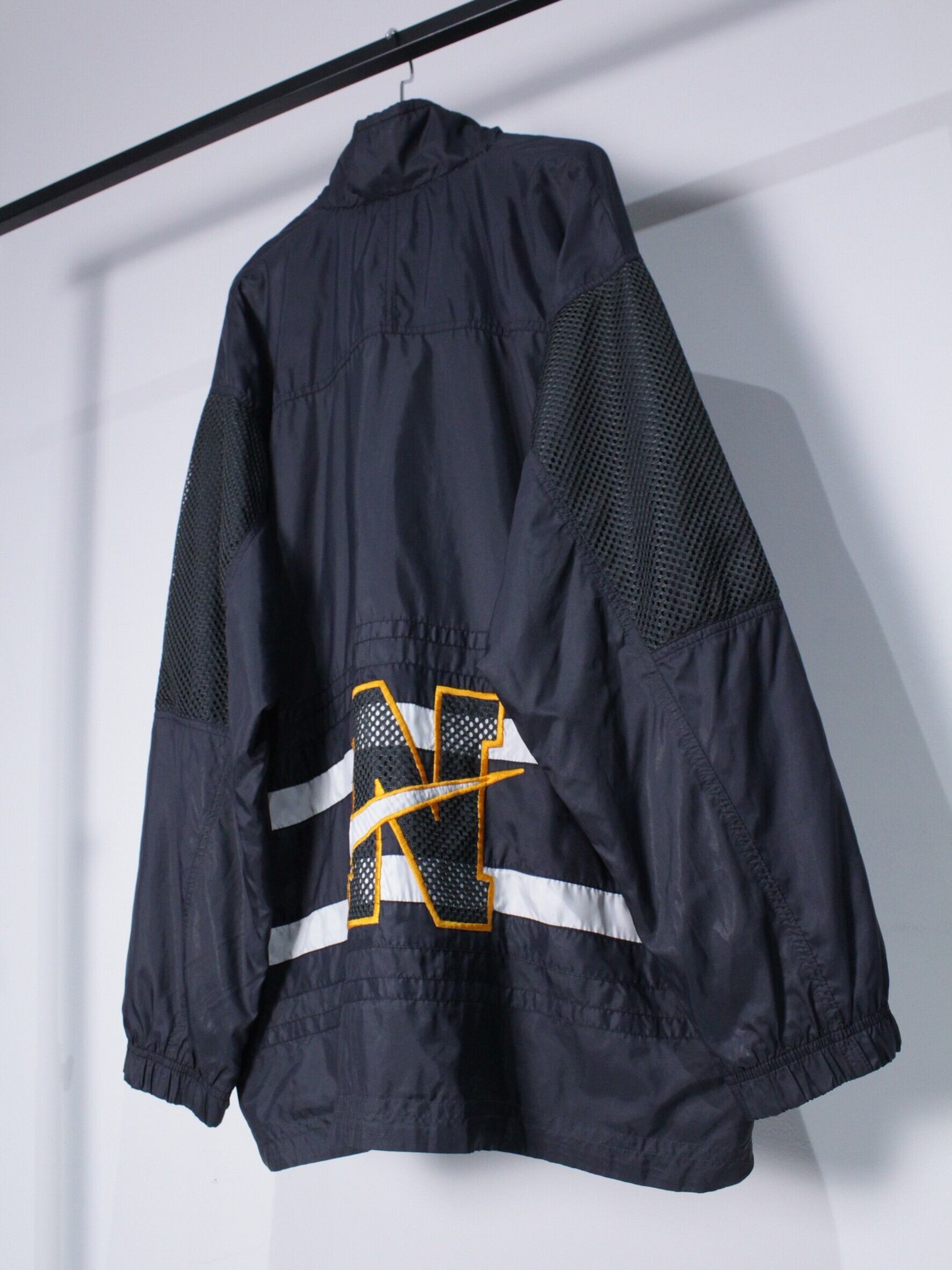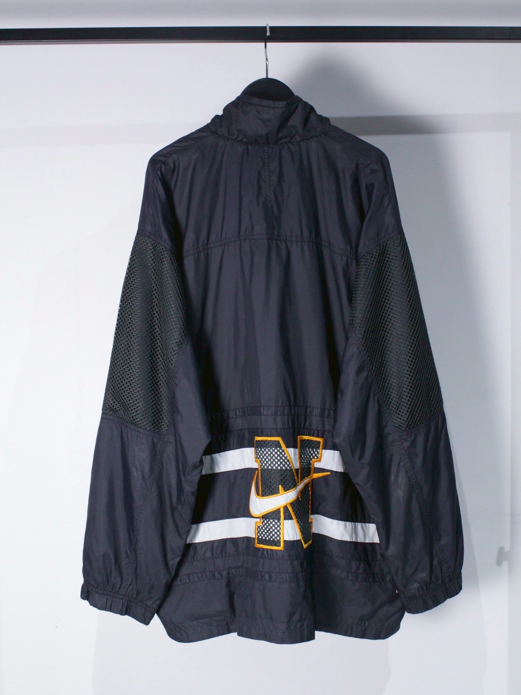 シャリ感のあるブラックのボディに、白のラインをアクセントとして落とし込んだ90's NIKEのジャケット。