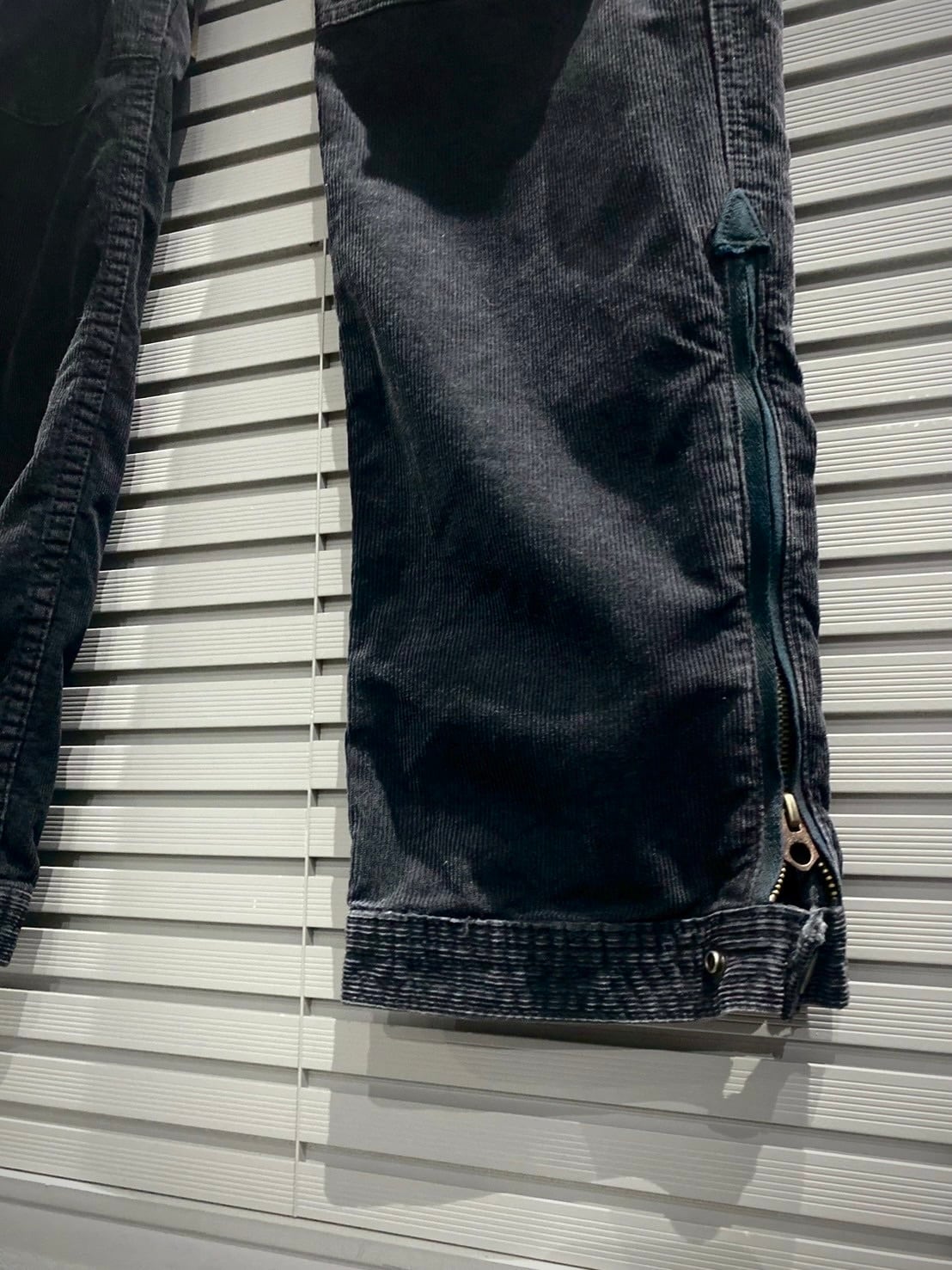 落ち着きのあるブラックカラーのコーデュロイ生地を用いたボディに、ボックス型のフラップポケットを両サイドに、ジップポケットが施されたマルチポケットコーデュロイパンツ。