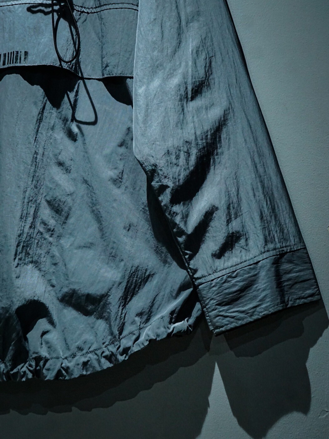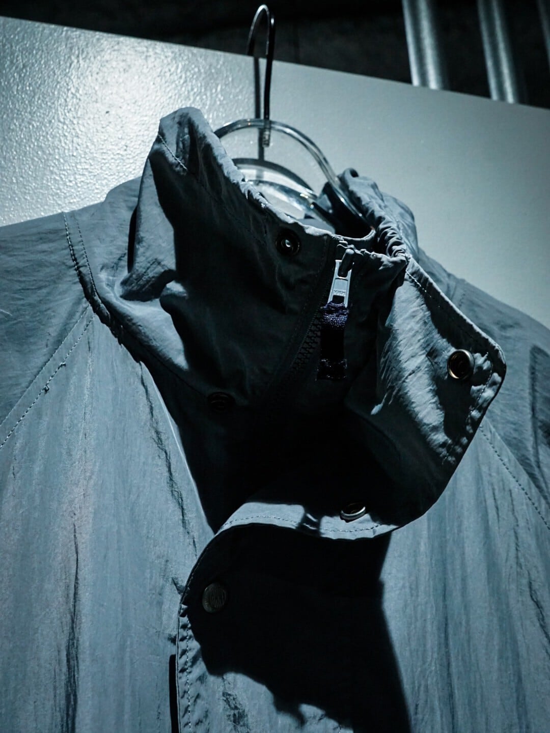 サラッとした質感に独特の光沢を放つナイロン素材を使用したアノラック型のハーフジップジャケット。