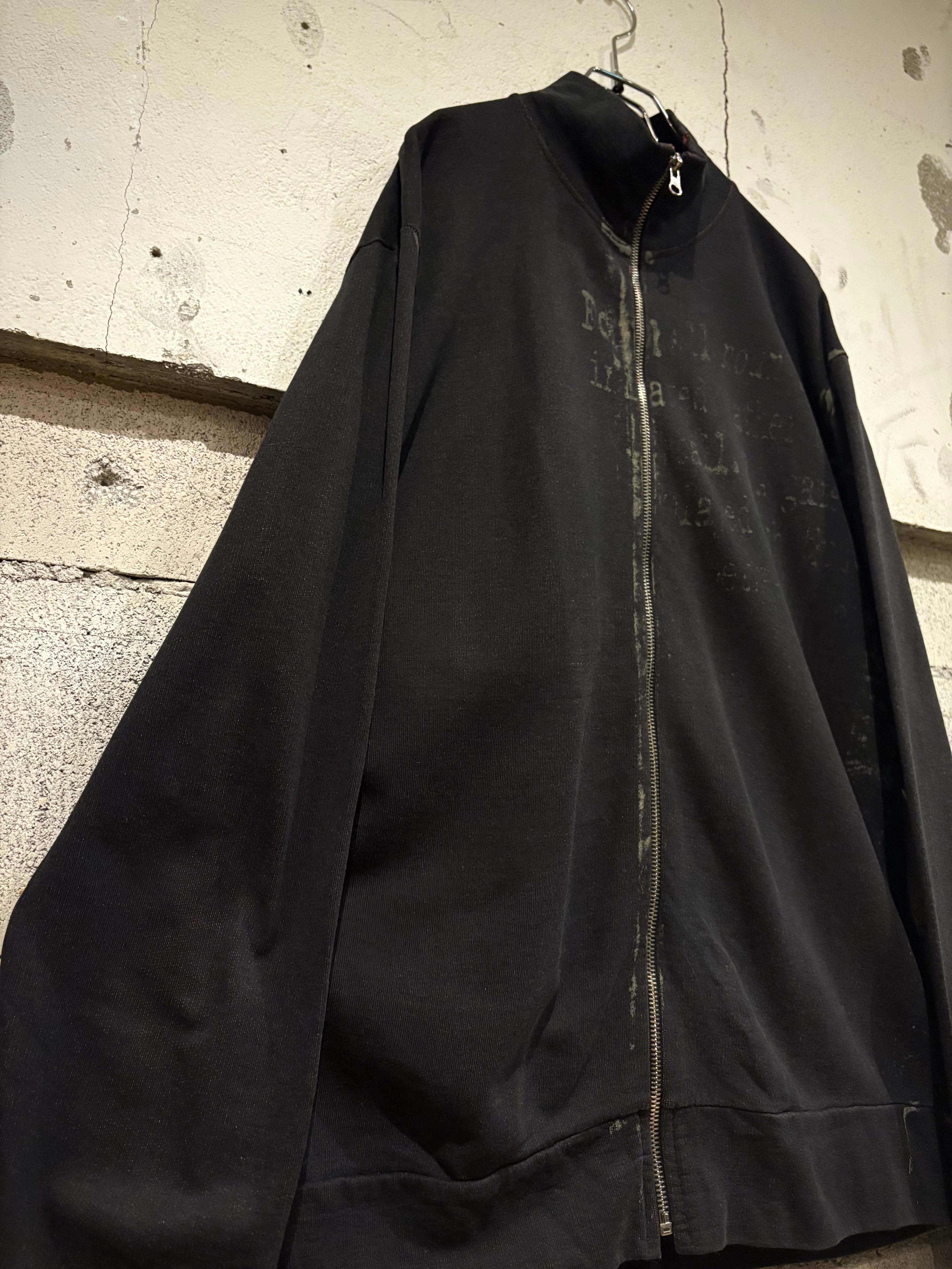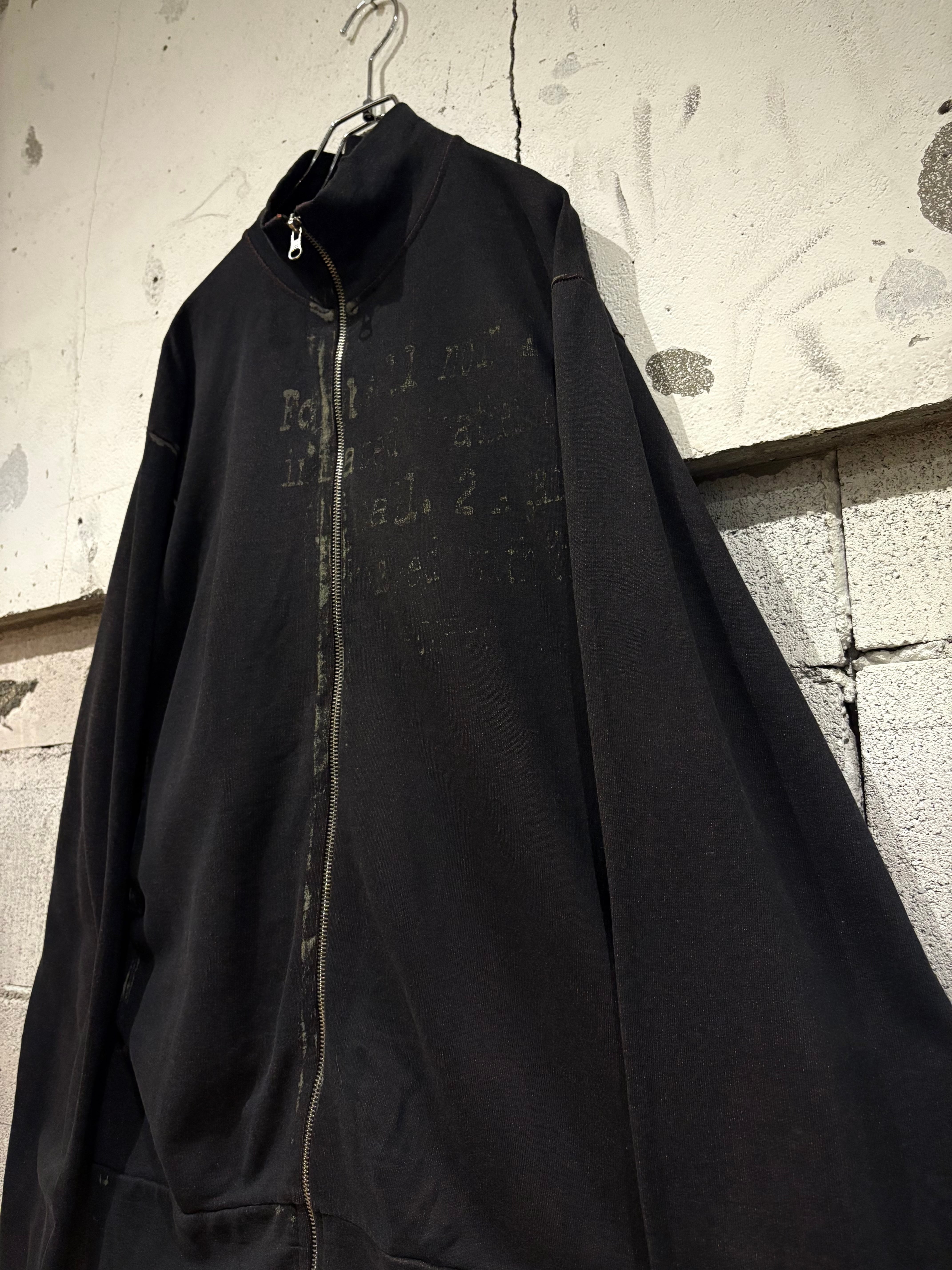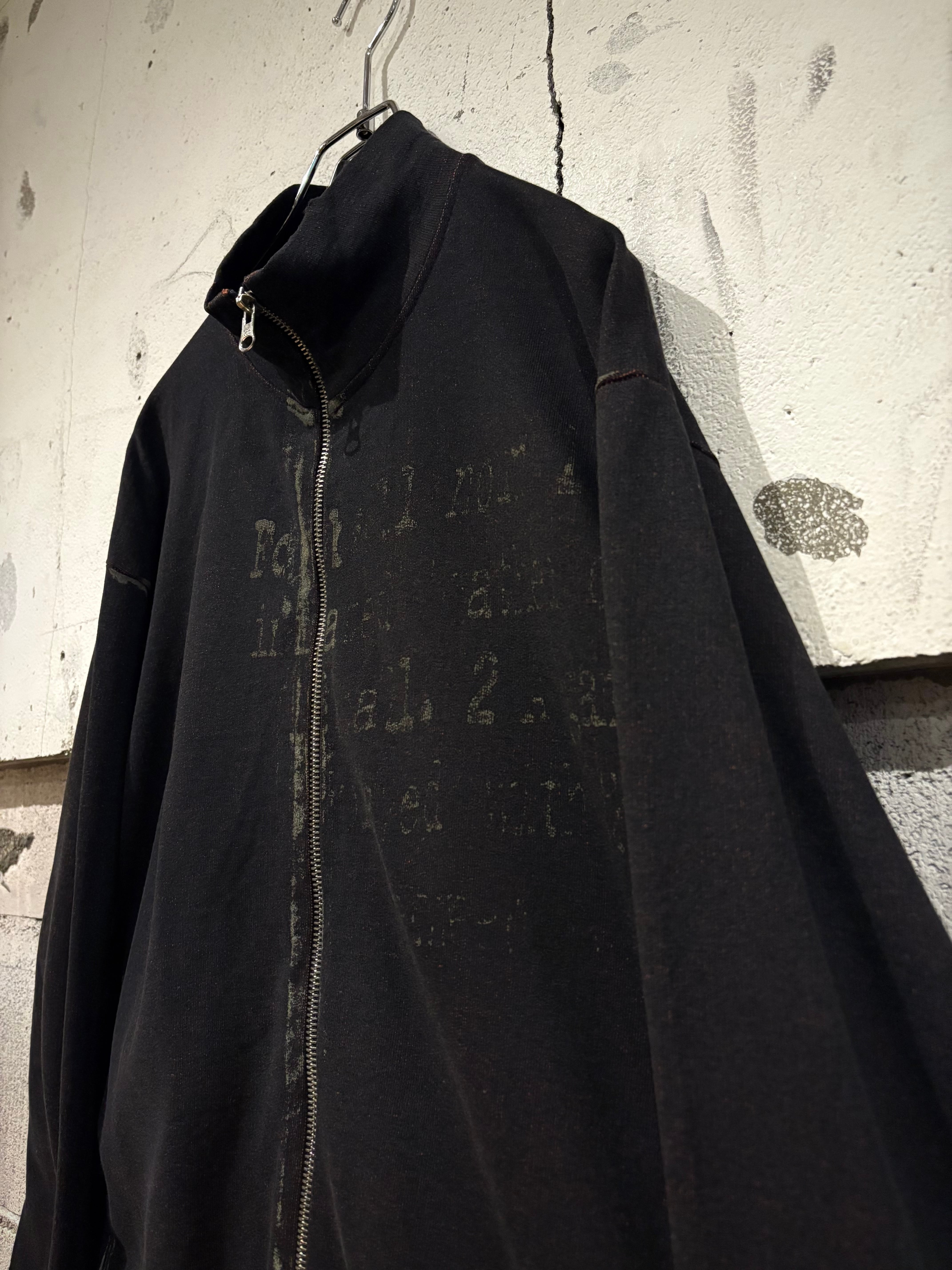 薄手のスウェット生地をベースに、レタリング風のプリントを載せジップアップスウェットジャケット。
