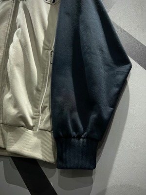 ブラックをベースに、オフホワイトのようなくすんだカラーリングを切り替えた1着。フロント、背面にはパフォーマンスロゴを載せ、3ストライプス状に色を切り替え。ブランドらしいデザインを組み込んだ逸品です。