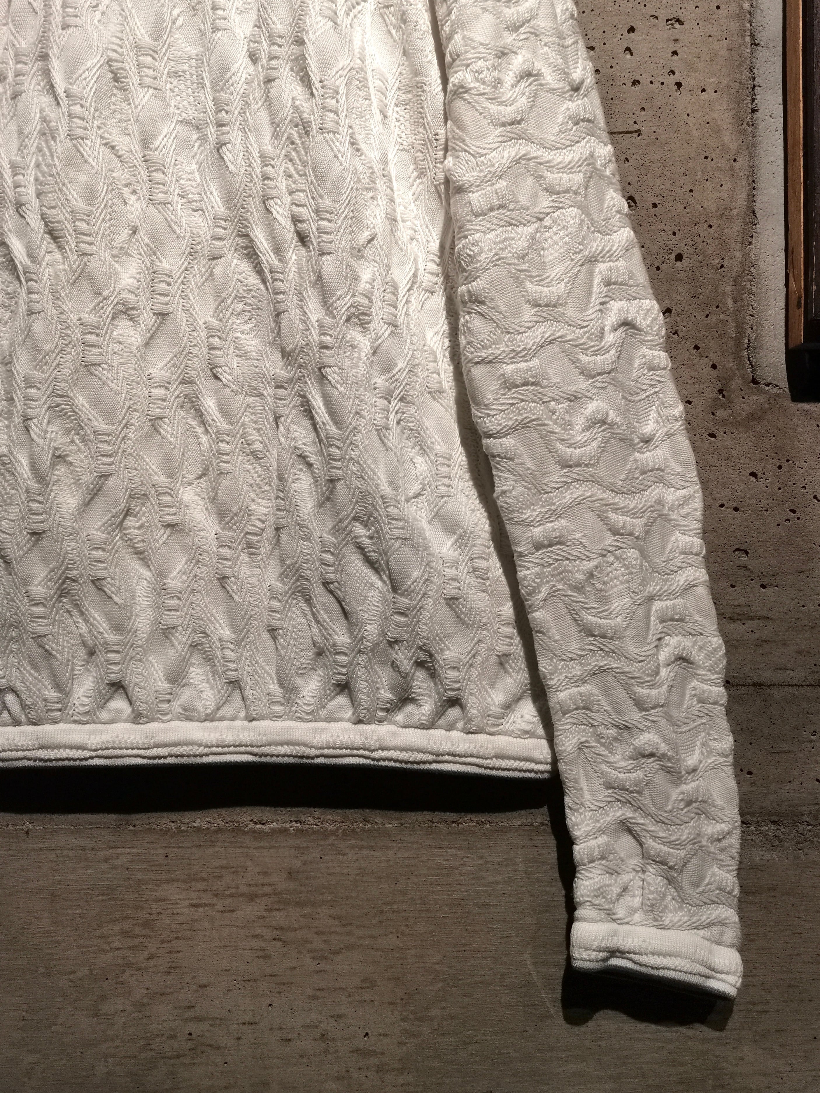 サイケデリックなマルチカラーの印象が強い当ブランドの3Dニットですが、こちらの1着は美しさすら感じる真っ白で纏め上げられた、このブランドでは稀有な個体。
