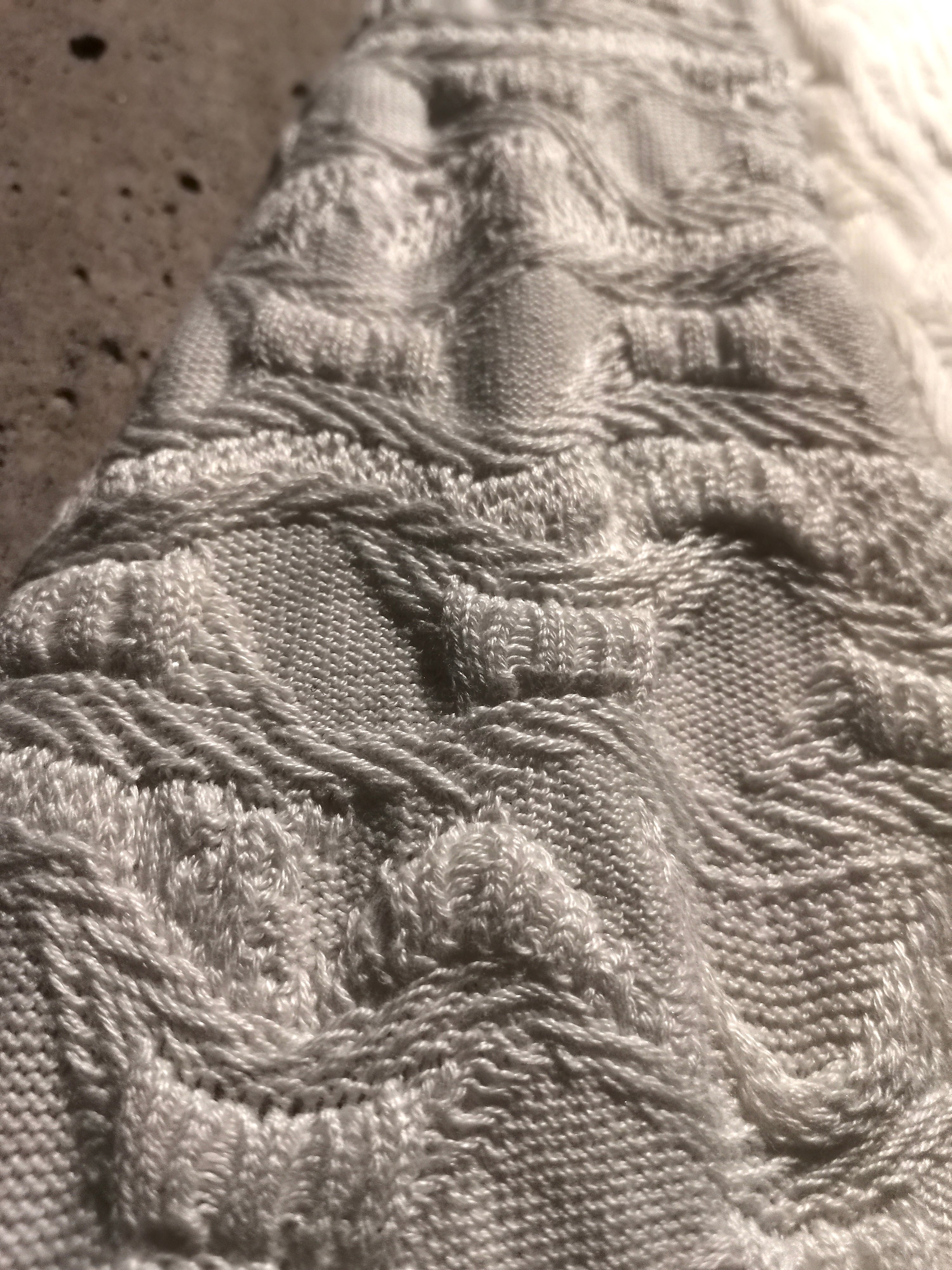 ワンカラーながらこのブランドならではの巧みなニッティング技術によって立体感が生み出されており、存在感を抜群に放っています。