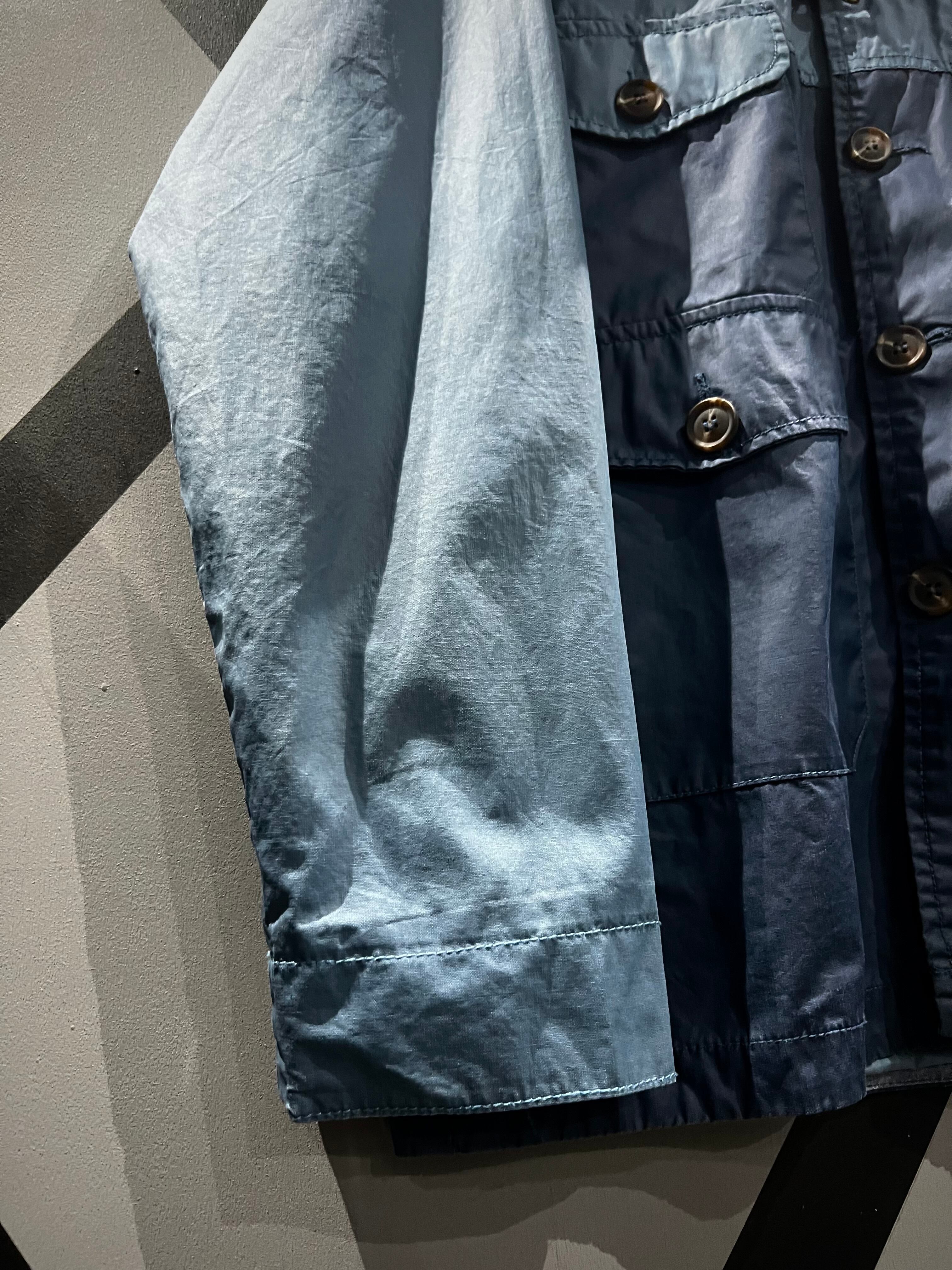 柔らかくタフなコットンを用いたボディを2トーンの青色で切り替え、そしてファイアーマンバックルのギミックを施したジャケット。
