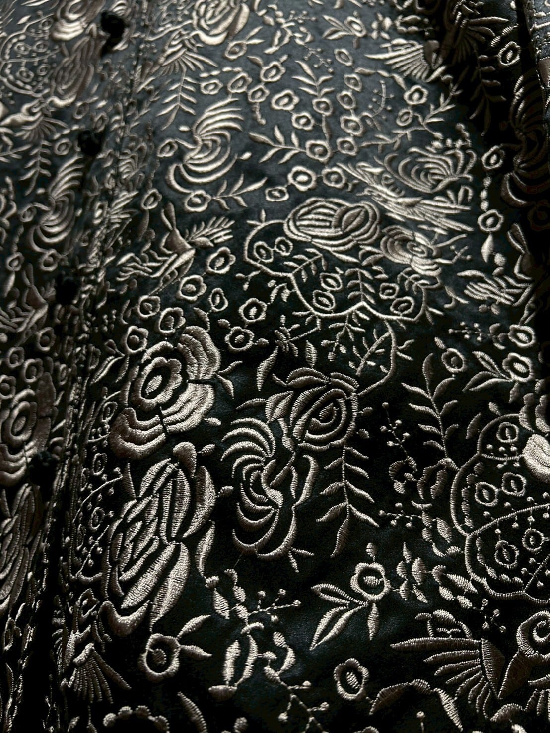 ハリ感、滑らかさを兼ね備えたシルクとコットンの混紡ボディに、みっちりと緻密に花の刺繍を施したモードな逸品。総柄のごとく刺繍が所狭しと施された稀有かつスペシャルな1着です。