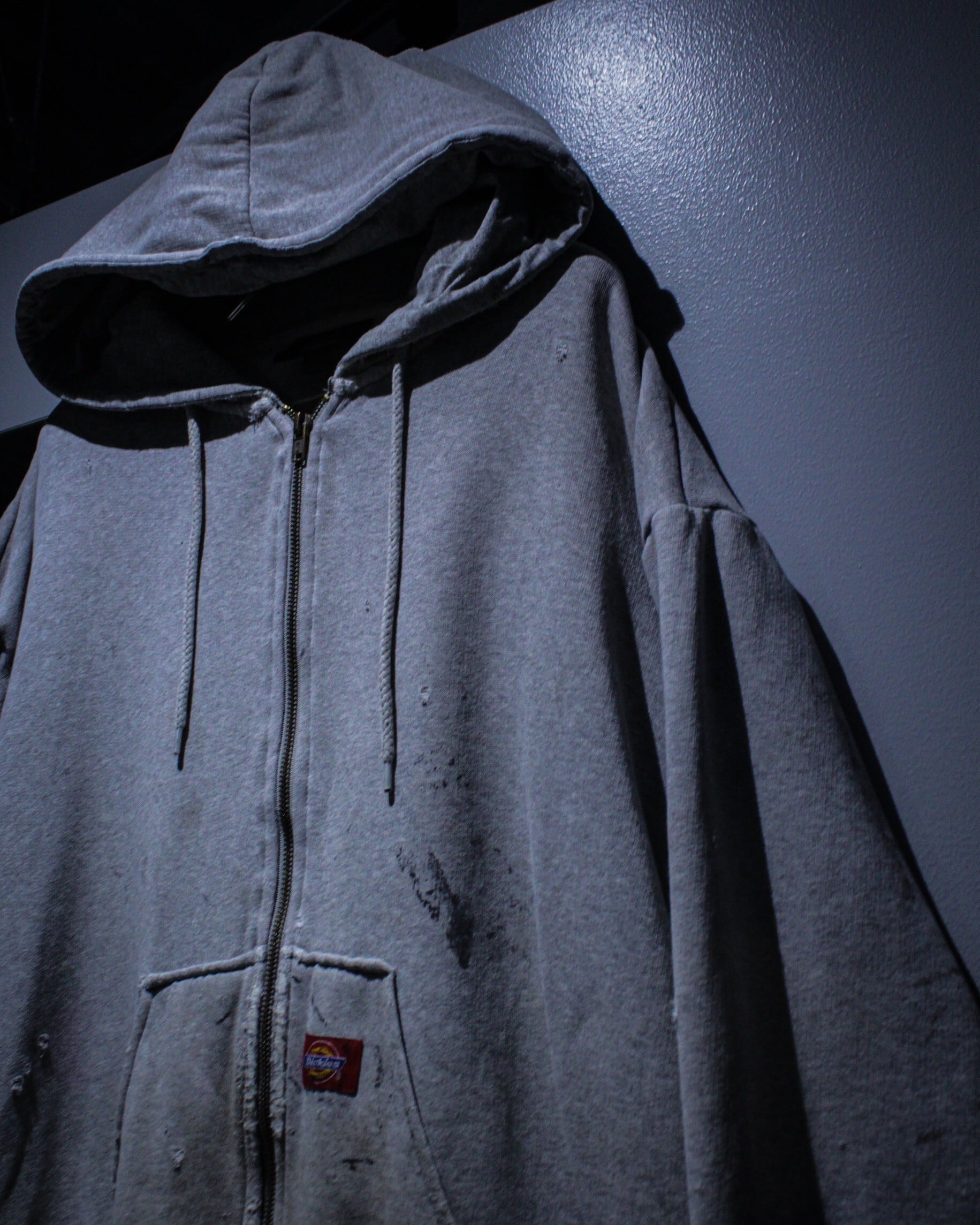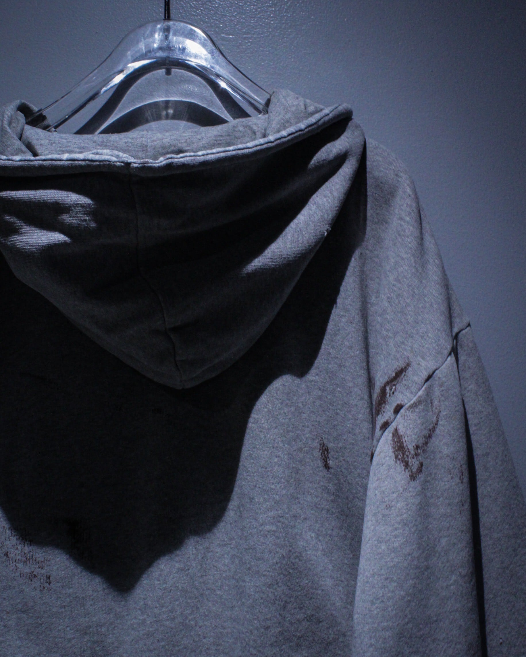 フェード感の素晴らしいグレーのスウェット地のボディに、さらにボロ、エイジングの渋さが載せられたジップアップフーディ。