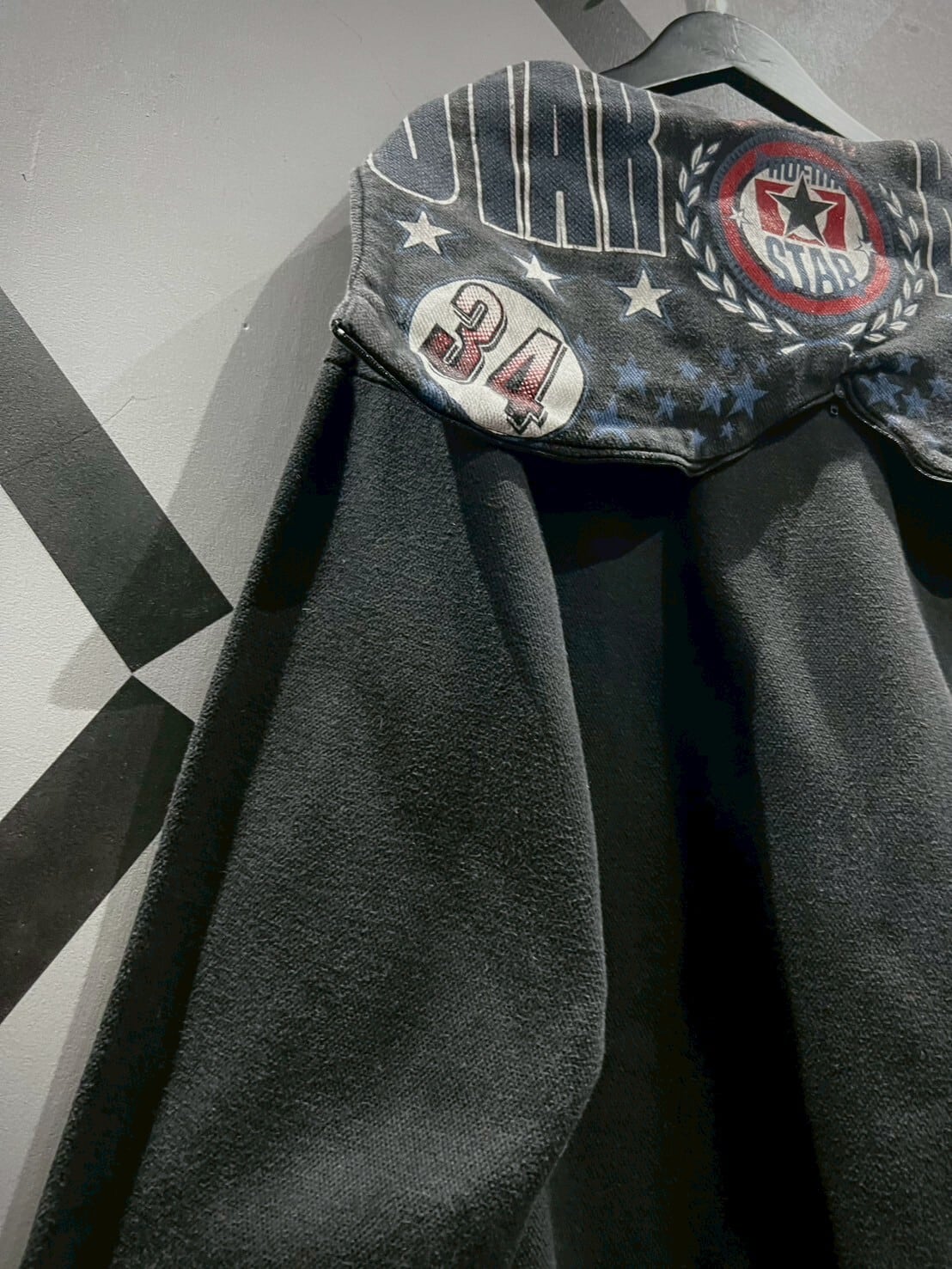 前述の通りフードのセンタージップを開くことでセーラーカラーになるギミック付き。更にフード部分にはワッペンやプリントデザインを施した1着。他フーディーアイテムとは一線を画すデザイン性の高い1着になっています。