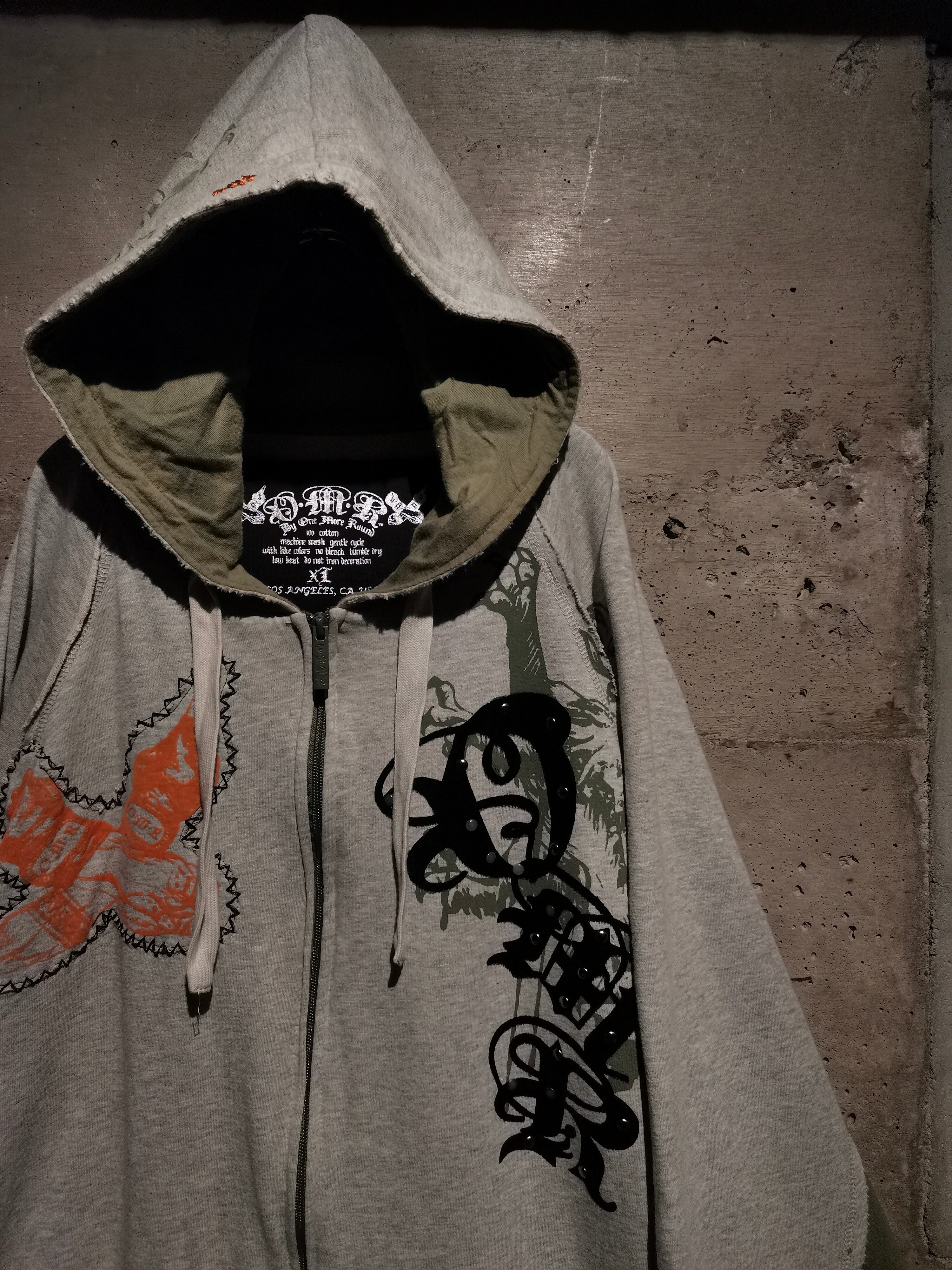 店頭でも引き続き大量展開を続けるジップフーディより、現代的な雰囲気漂うゴシックなデザインを載せた1着をご紹介いたします。