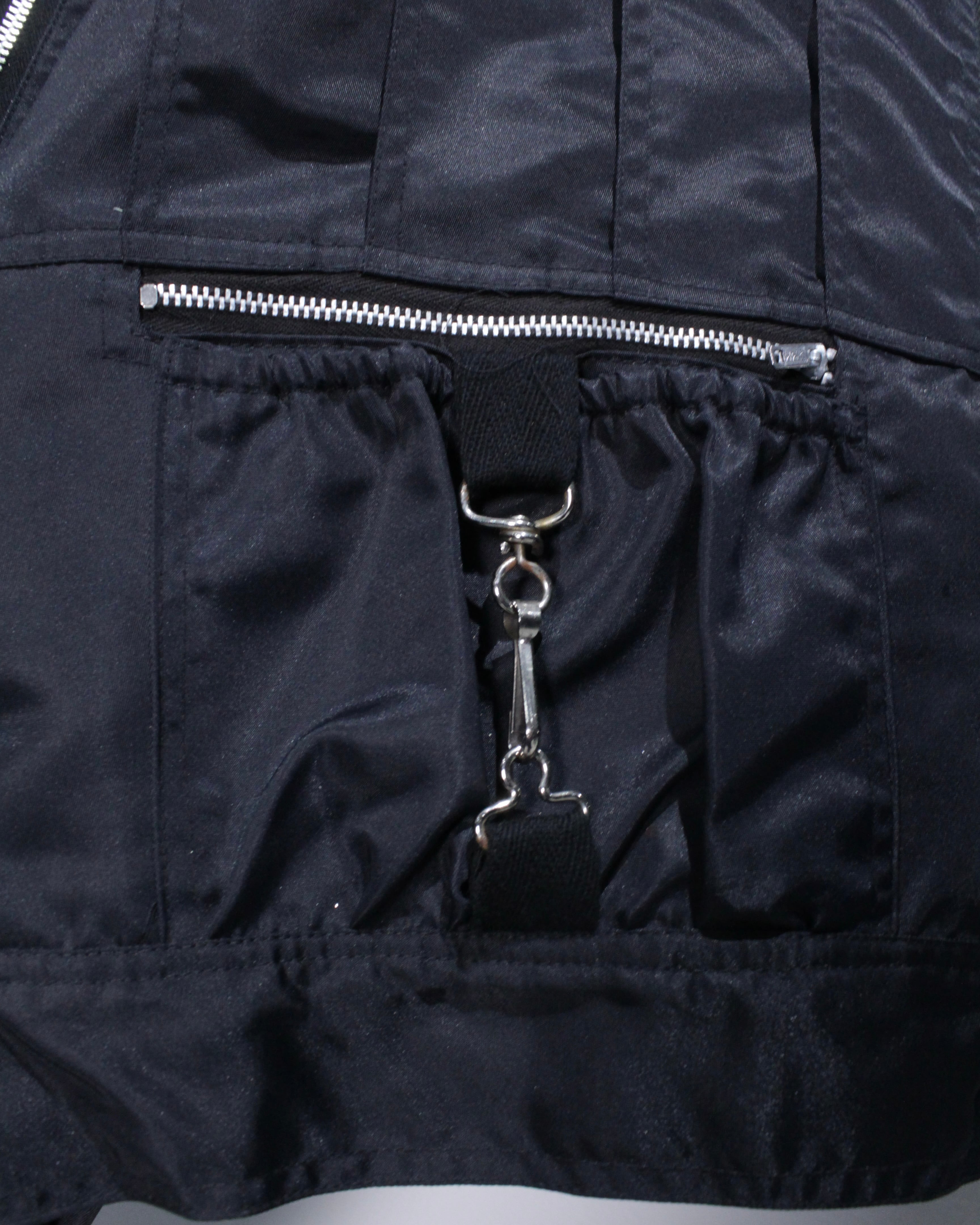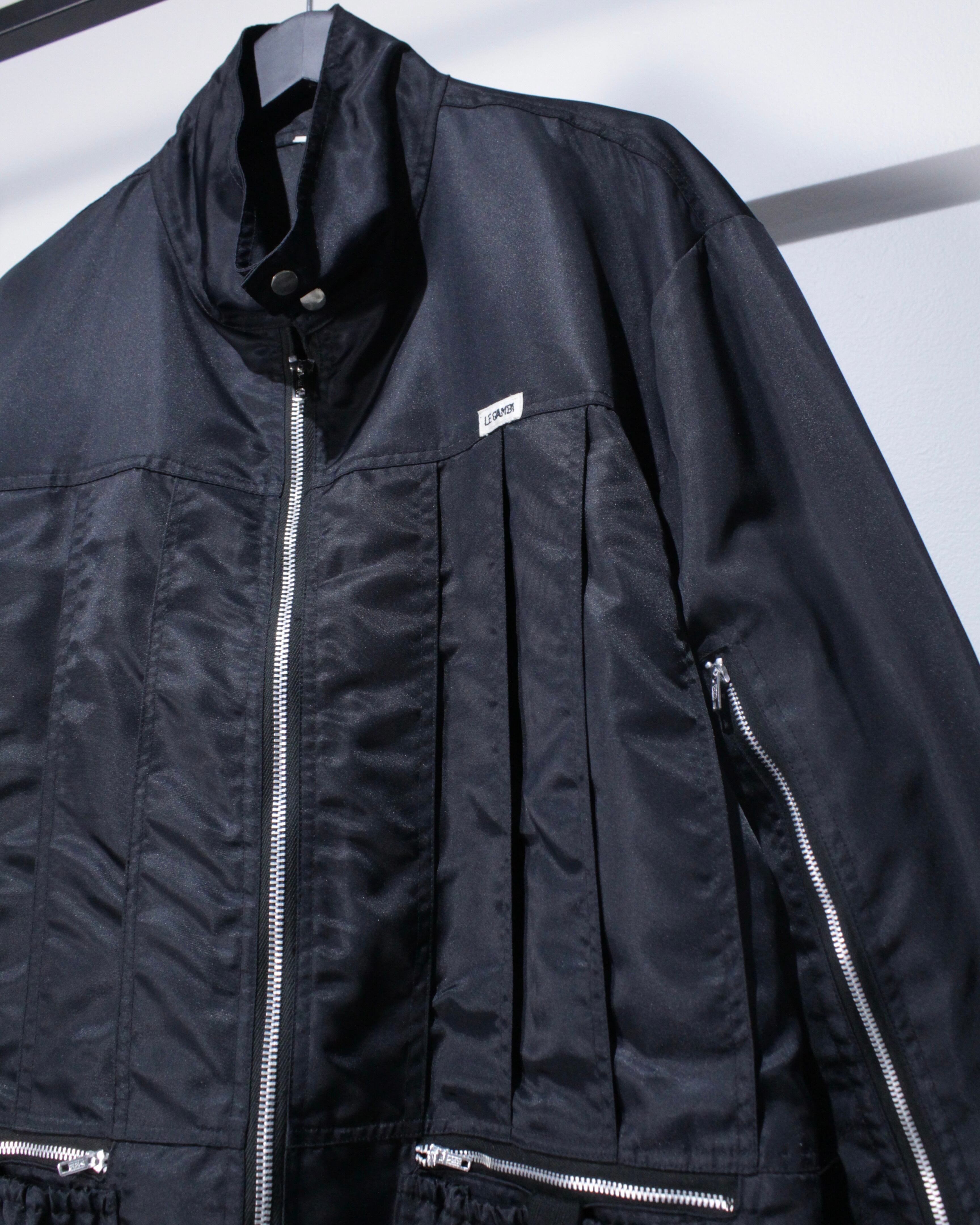 フロントには2つのジップポケット、ポケットにはフックのギミックをON。両胸にはプリーツが施され全体的に立体感のあるデザインに仕上がっています。