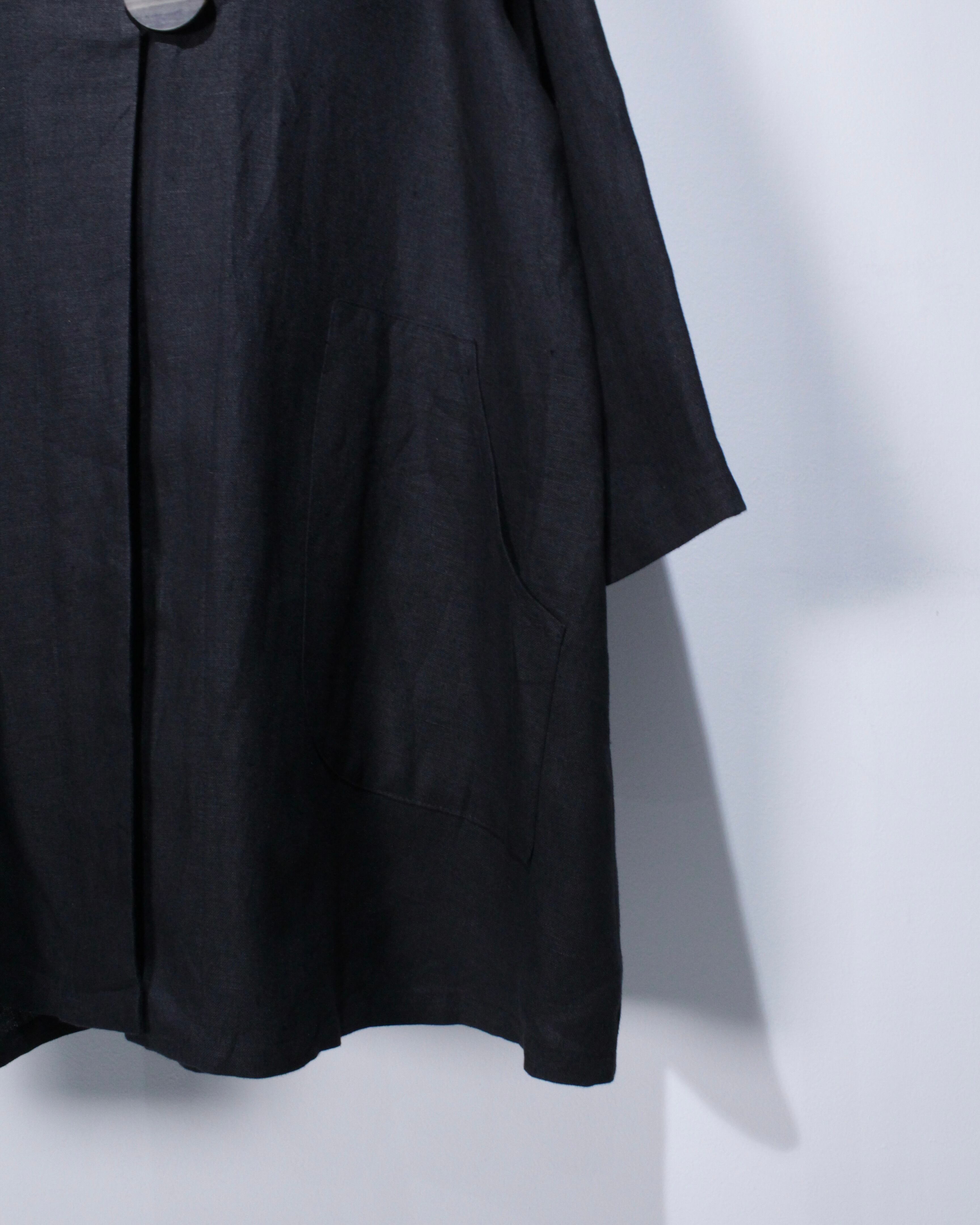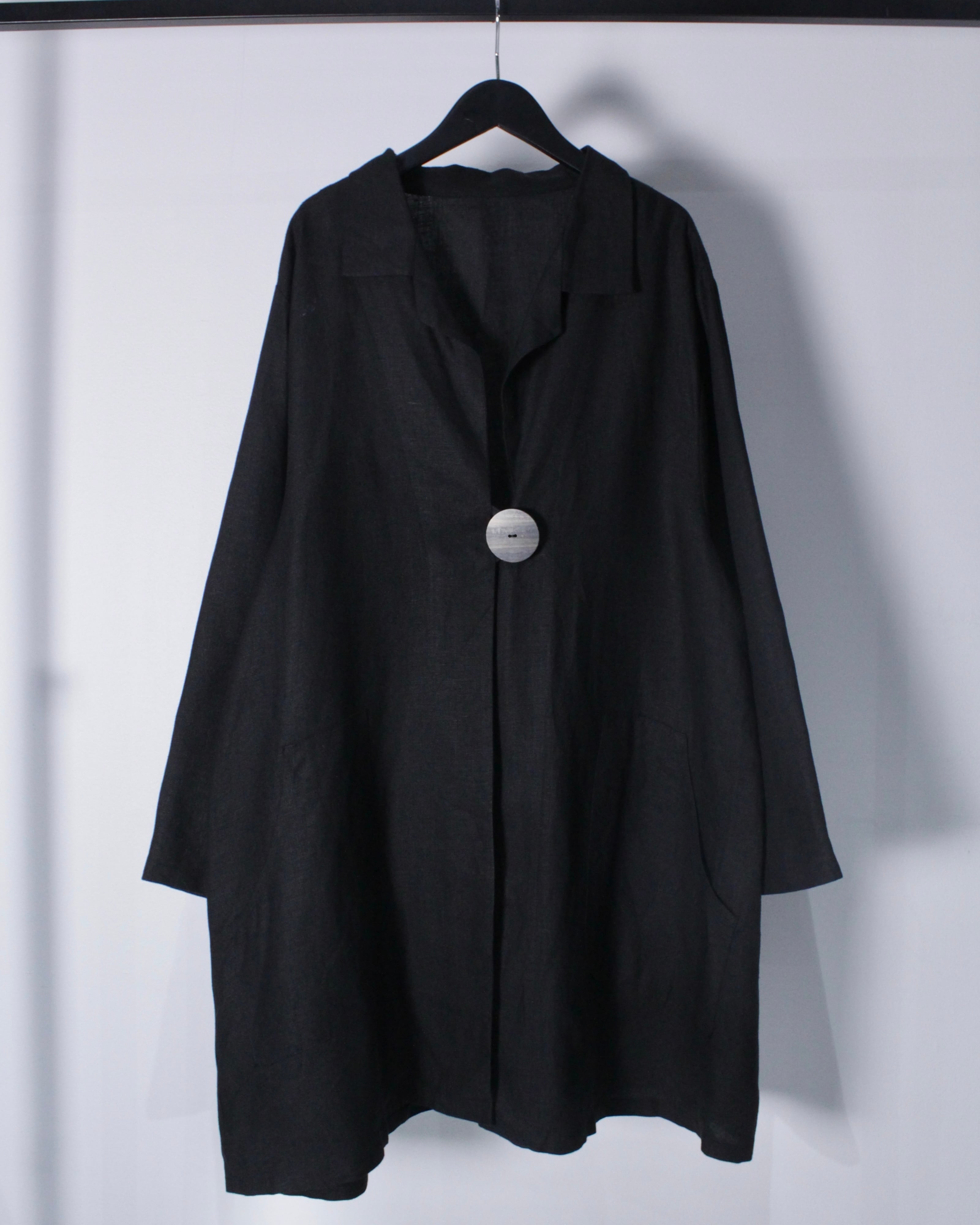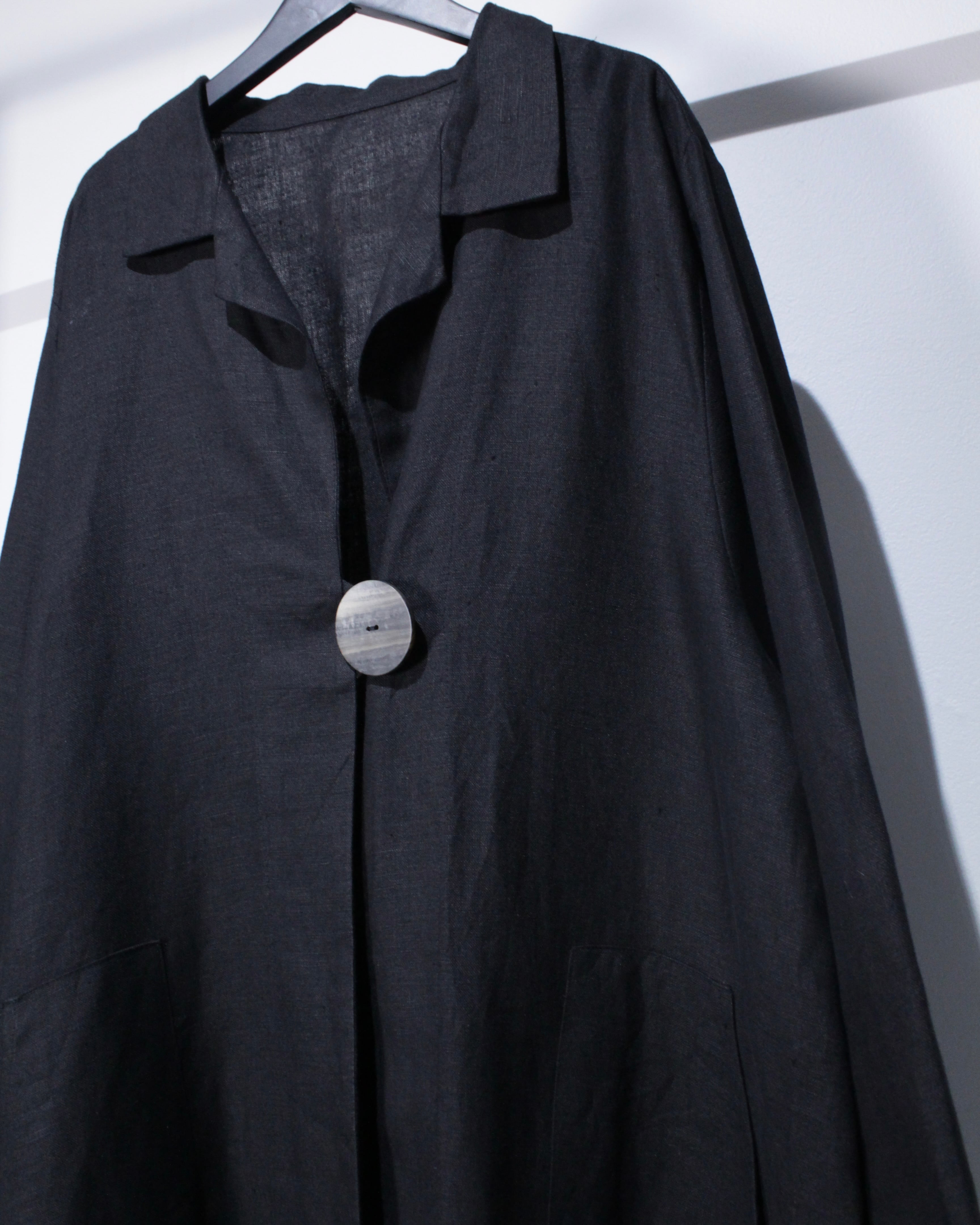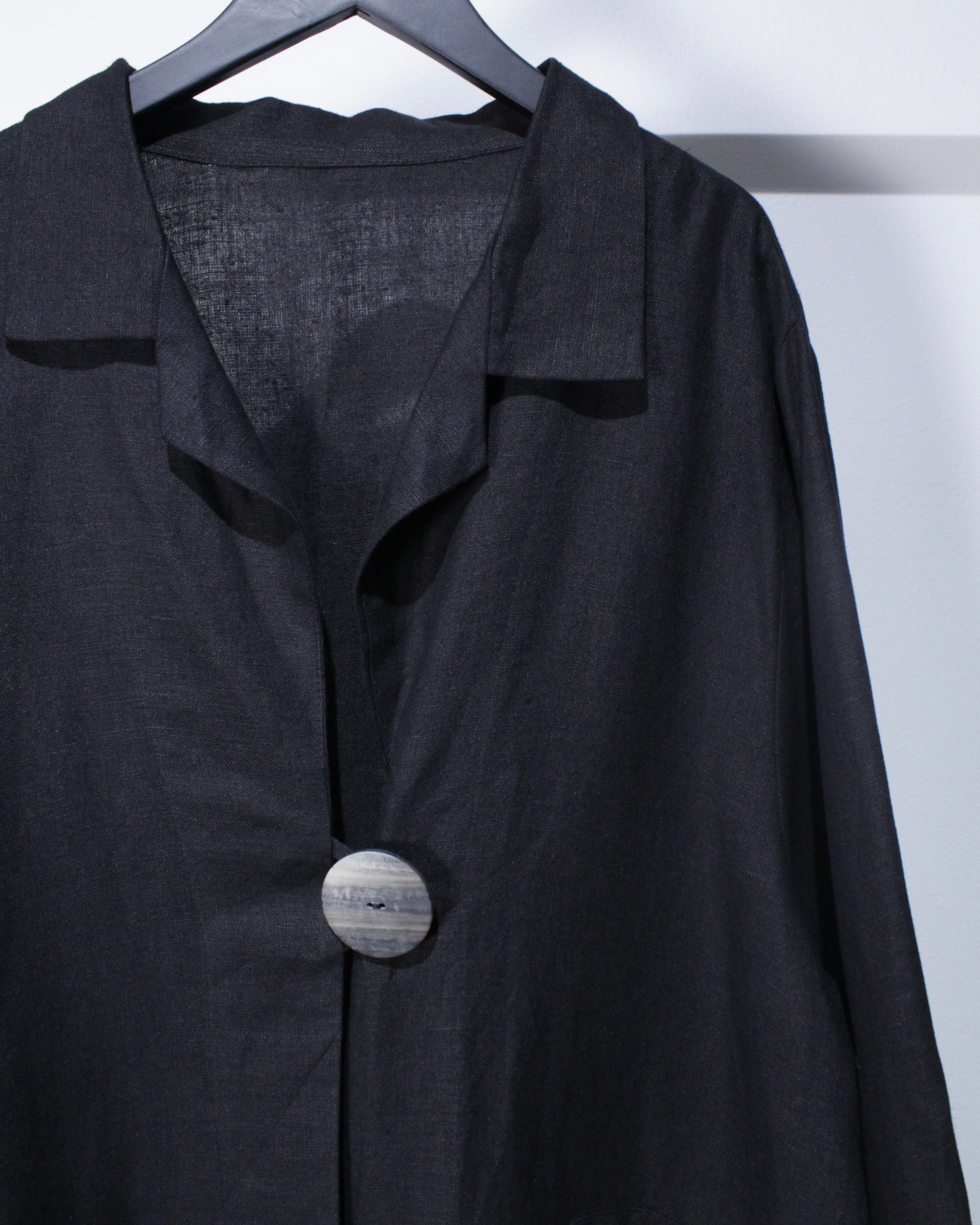 年々稀少価値が高まるブラックリネンを用いて、ロング丈の羽織型ジャケットに仕上げたユーロヴィンテージの1着。