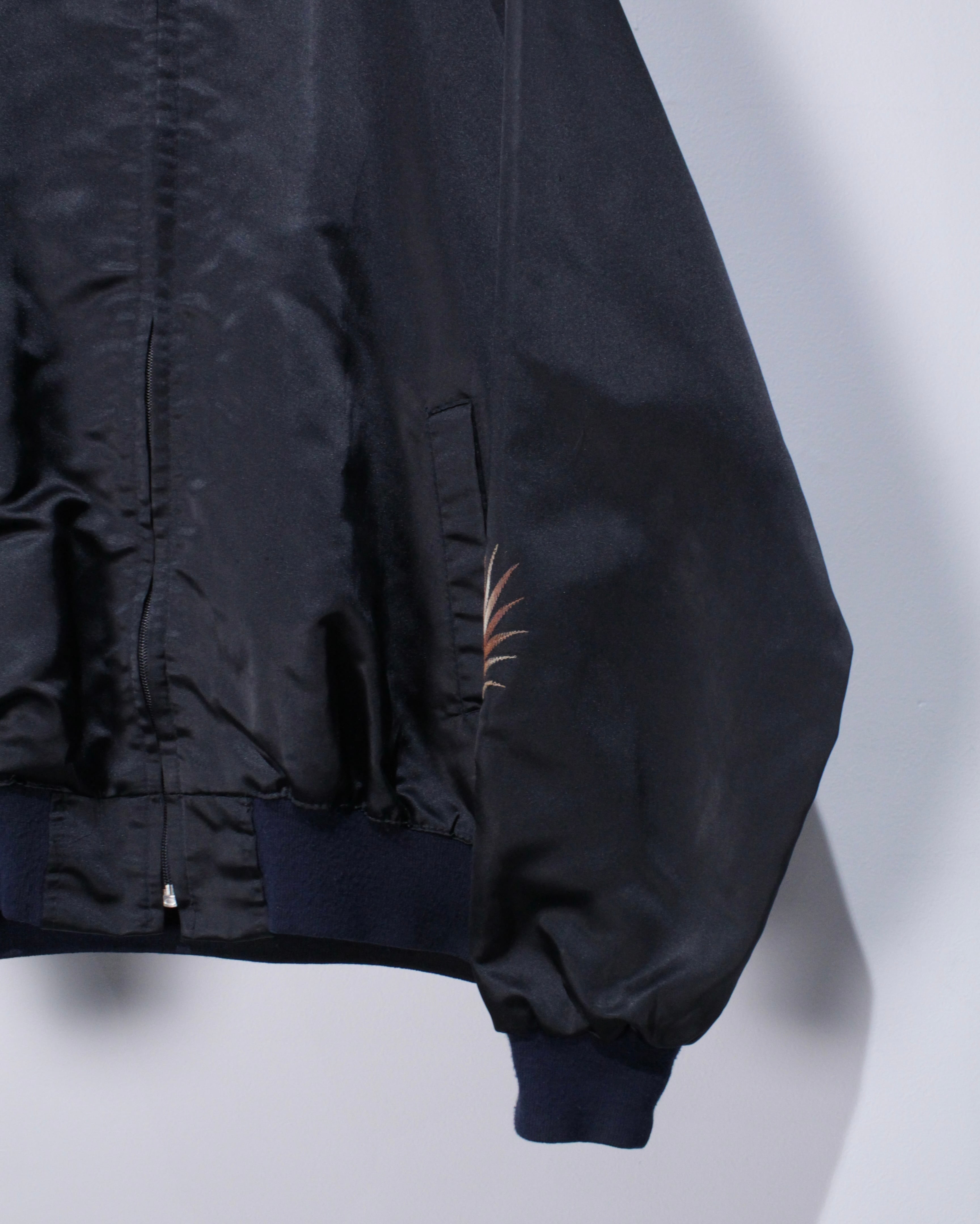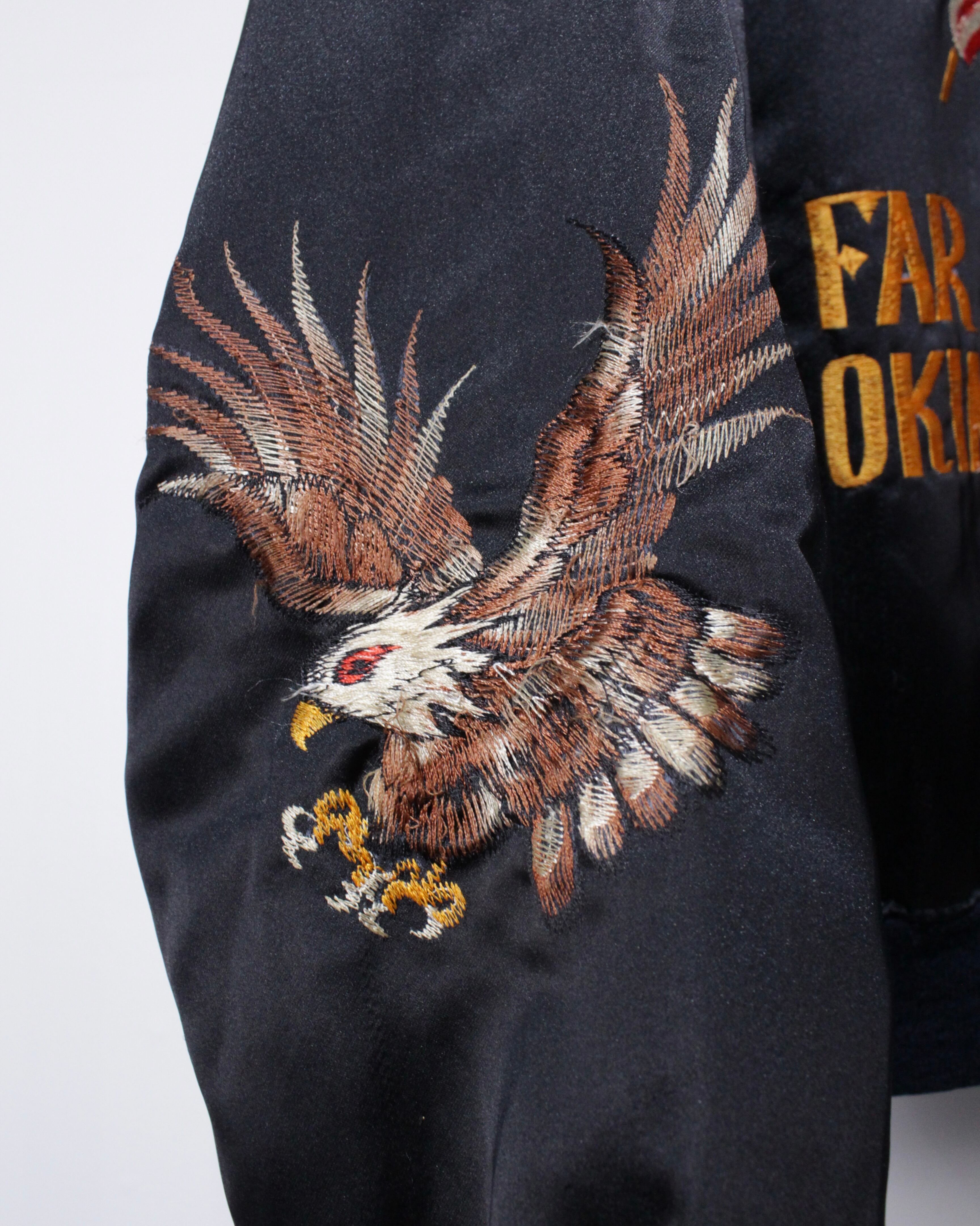 両袖には鷲の刺繍も施されており、全面死角なし。日本のカルチャーであるスカジャンですが、アメリカンなテンションのデザインの載った、ミックス感のあるデザインに仕上げられたジャケット。
