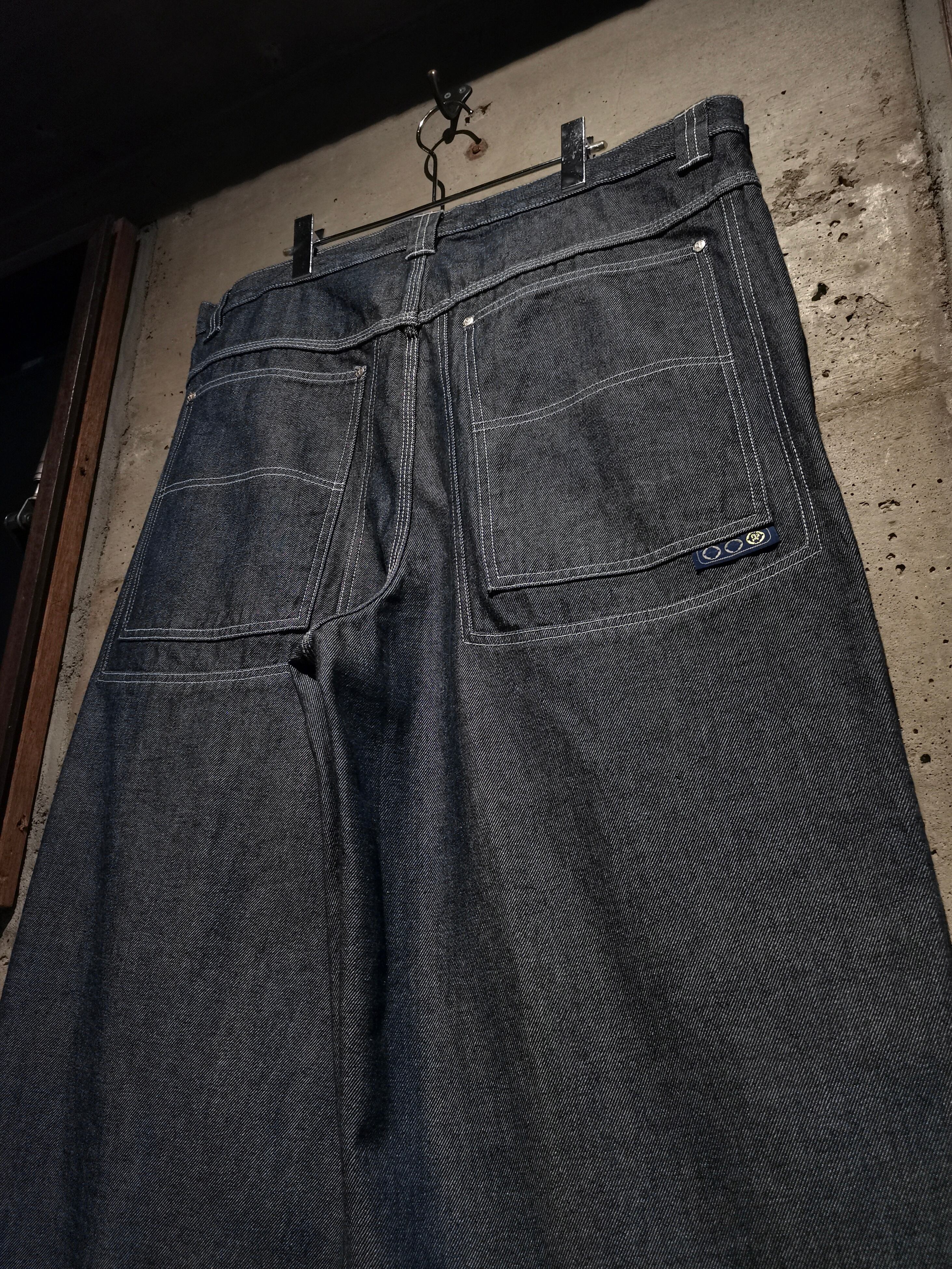 当時のレイブ・ストリートカルチャーをのムードをヒシヒシと感じさせる"R2 HARDCORE"からのスペシャルな一本。ウェストから裾までズドンと落ちるストレートシルエット。太めで真っ直ぐ落ちるこのシルエット。最高です。