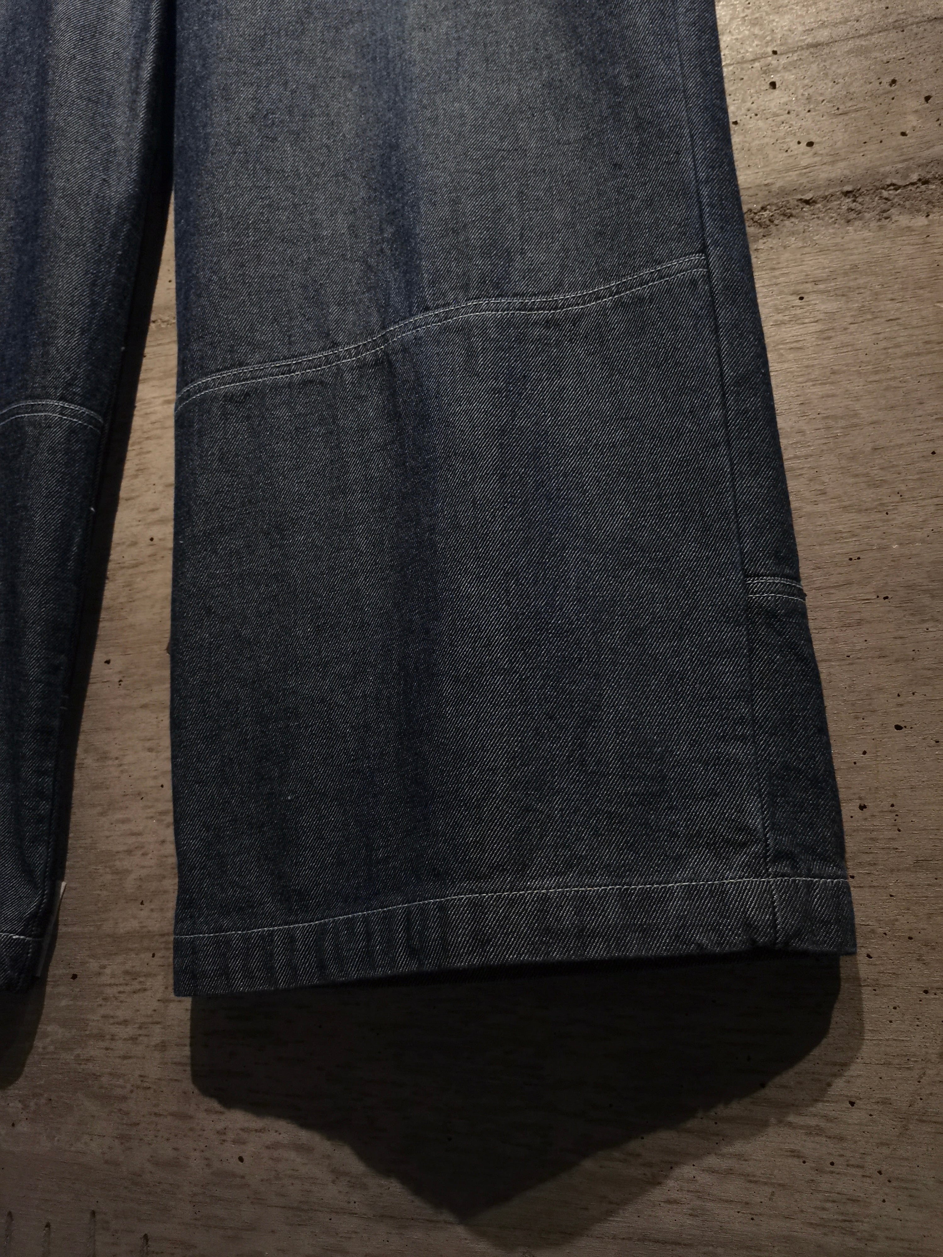 右膝にはスラッシュポケット、背面には大判なヒップポケットが施されたシンプルなデザイン。全体には白のステッチが施され程よいアクセントに。右膝下付近には隠しポケット。カルチャーゴリゴリです。