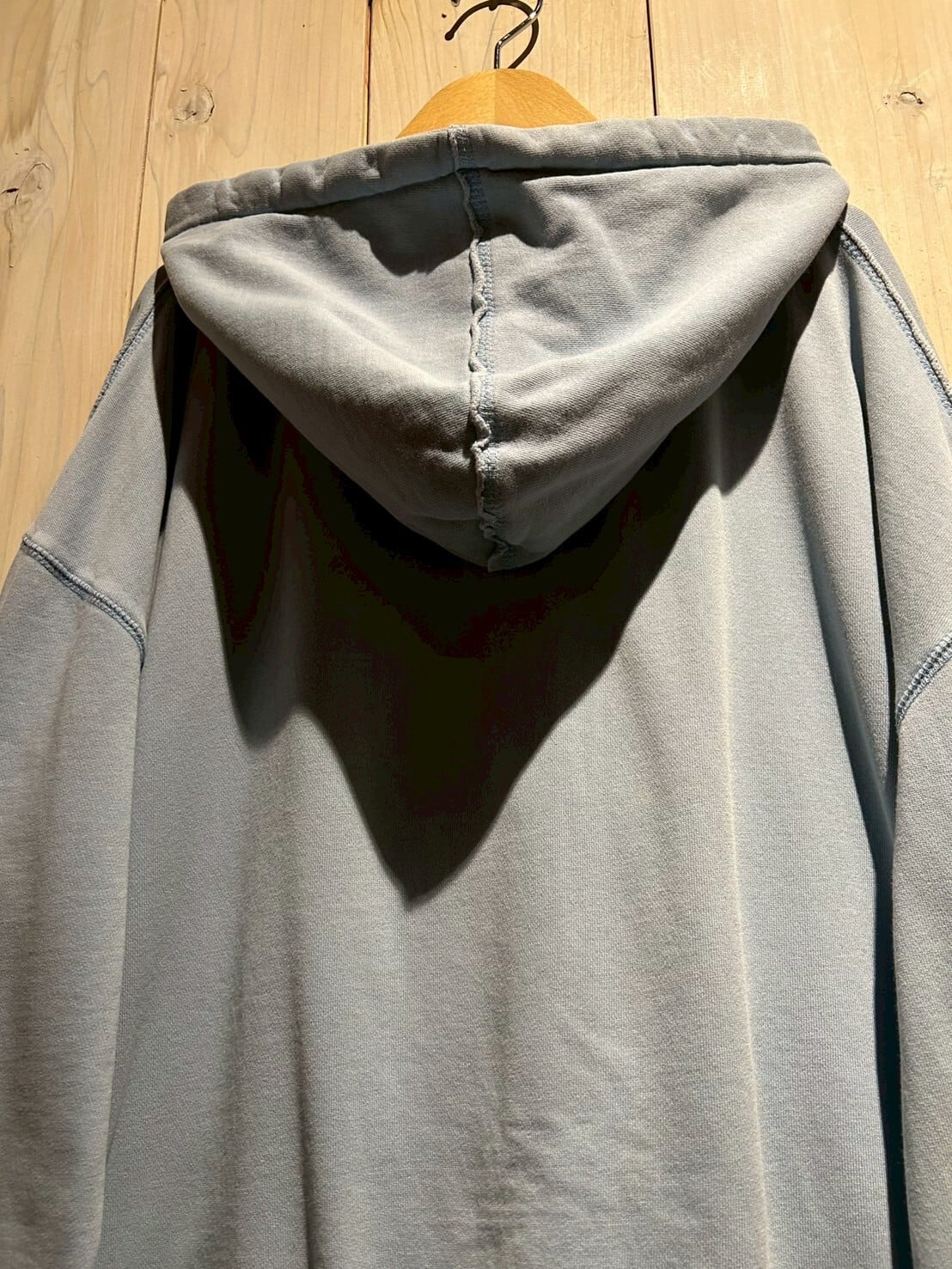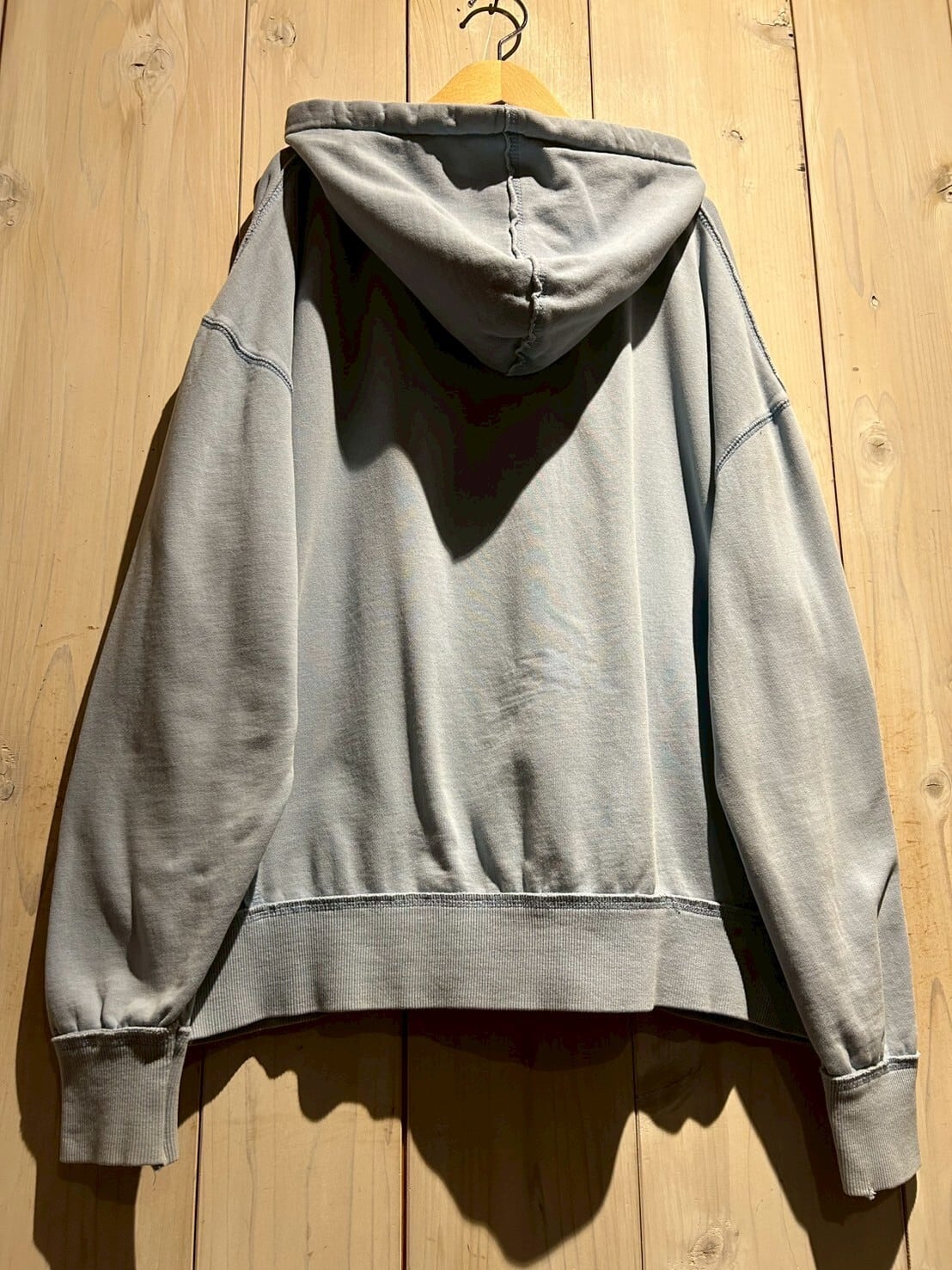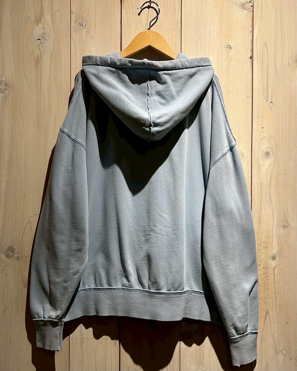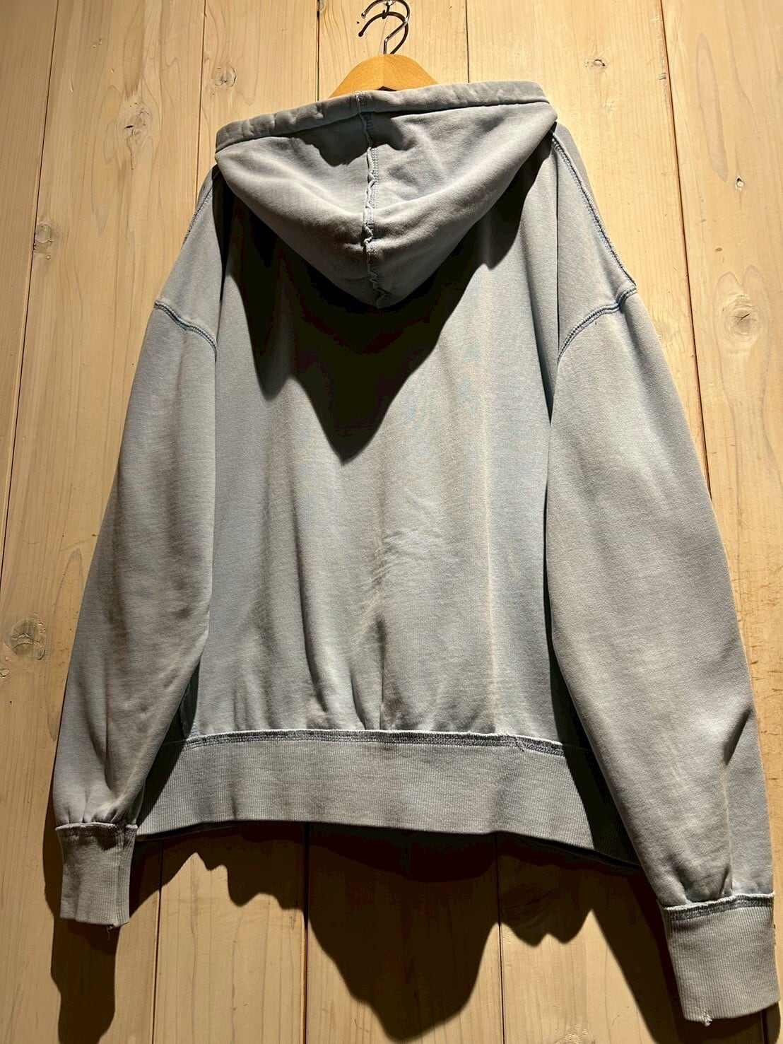 こちらの1着は、肉厚で柔らかくコシのあるスウェット素材を用いたボディが経年変化によってフェードしたジップアップフーディ。