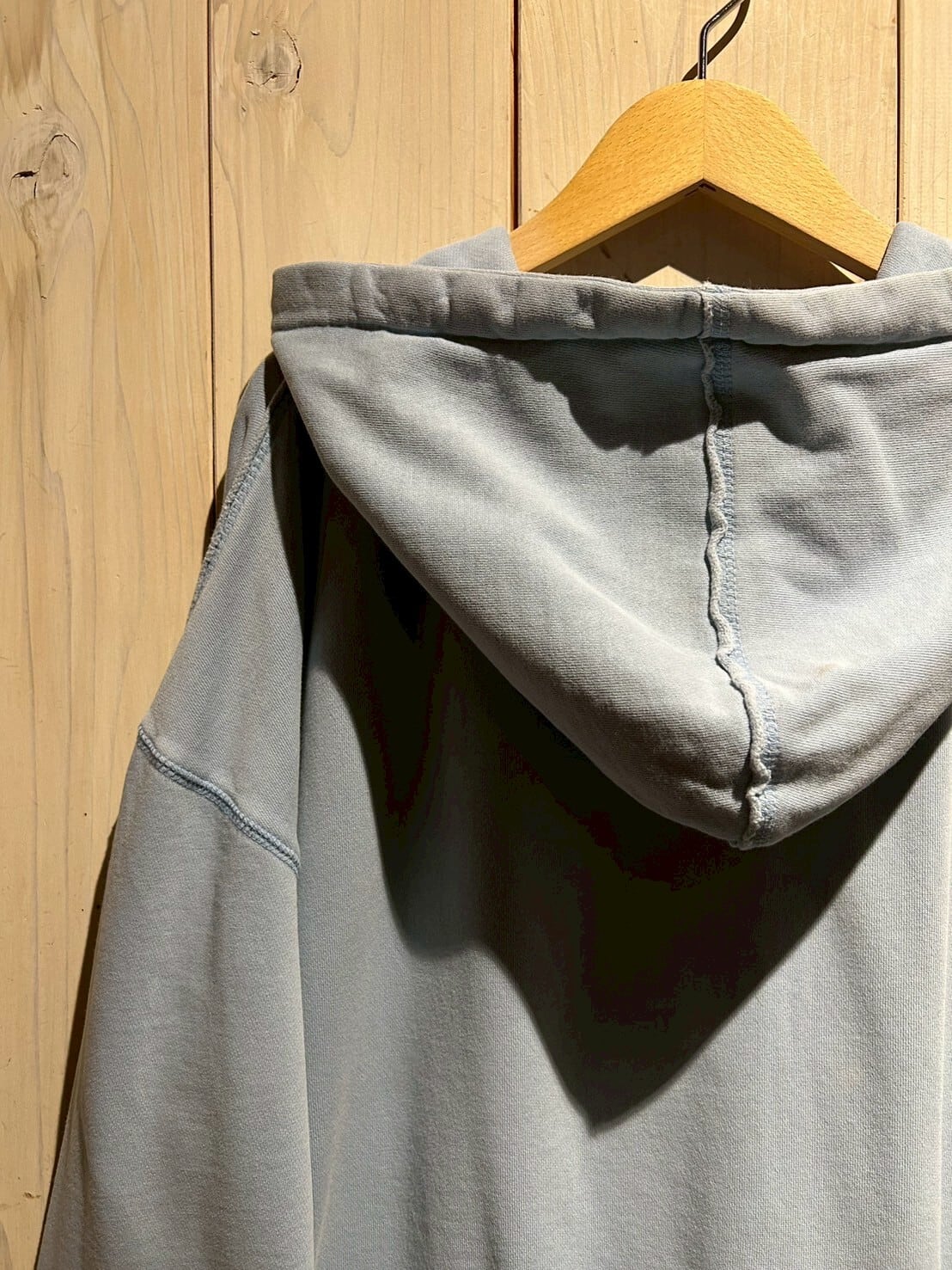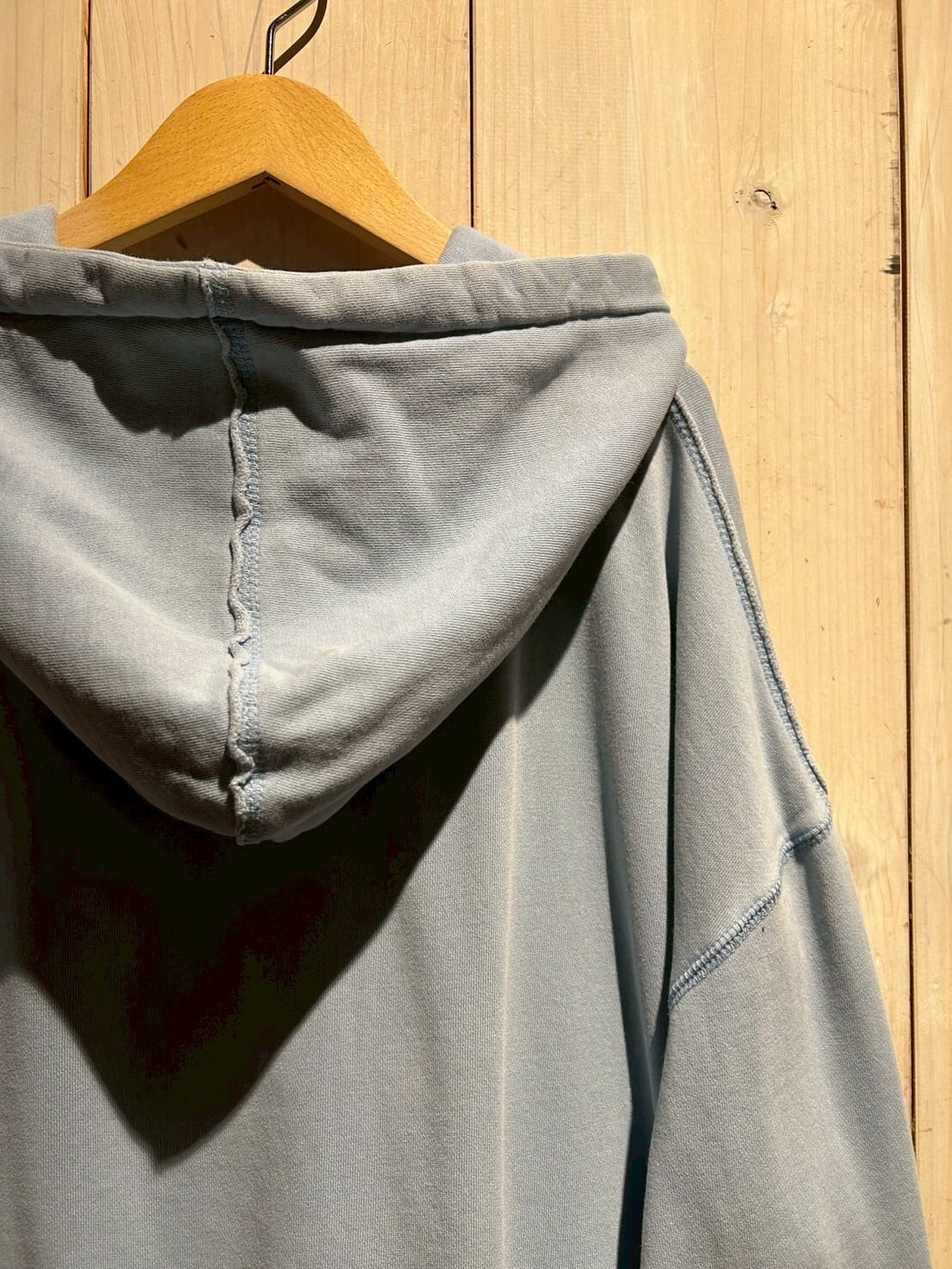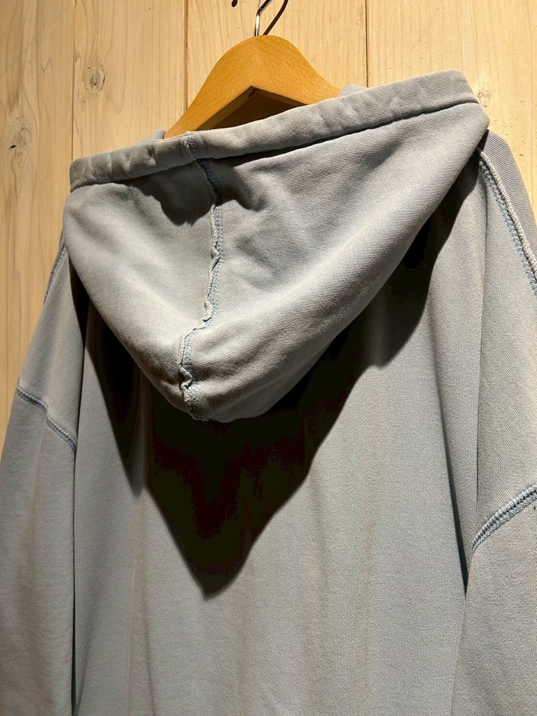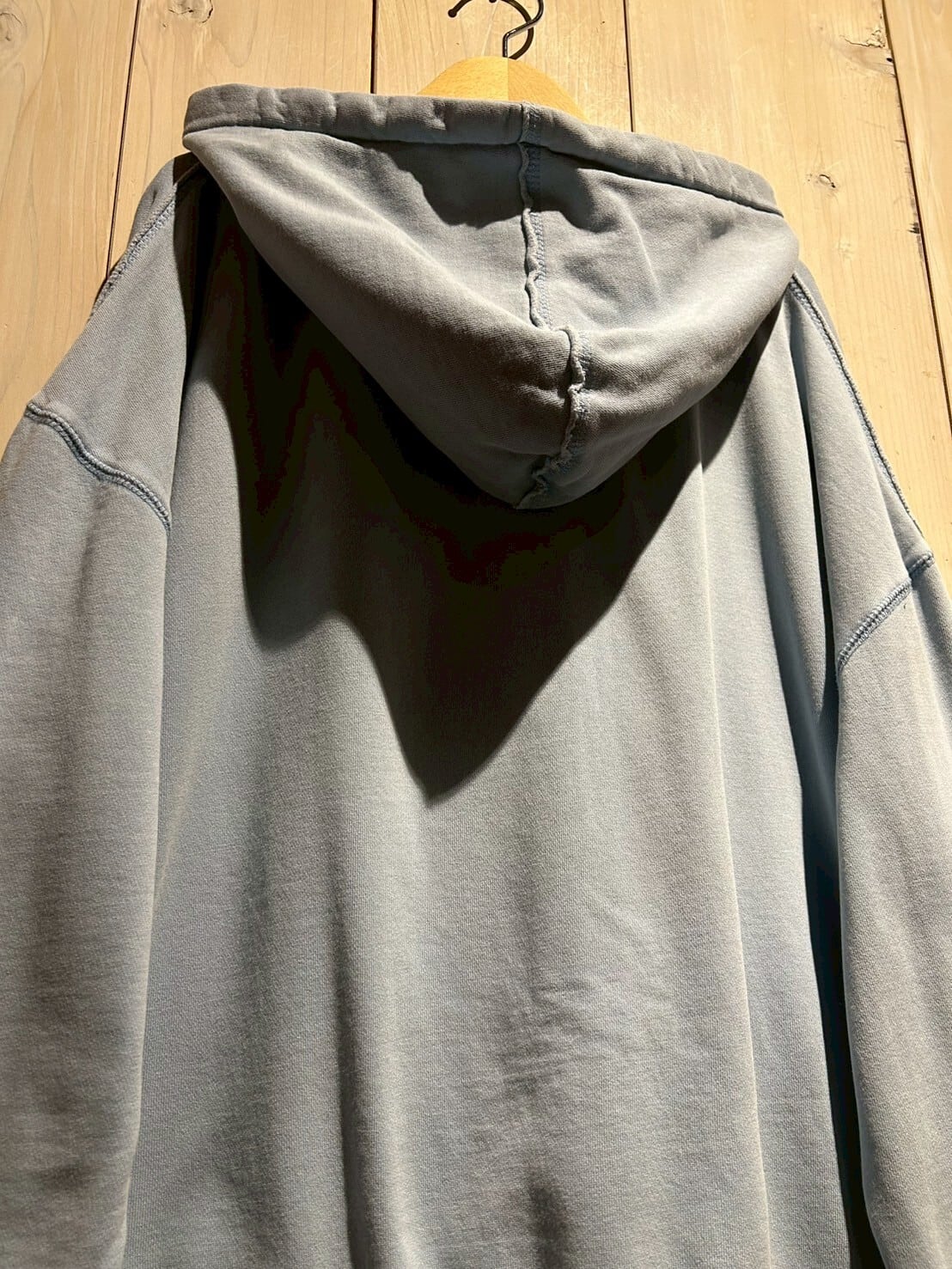 こちらの1着は、肉厚で柔らかくコシのあるスウェット素材を用いたボディが経年変化によってフェードしたジップアップフーディ。
