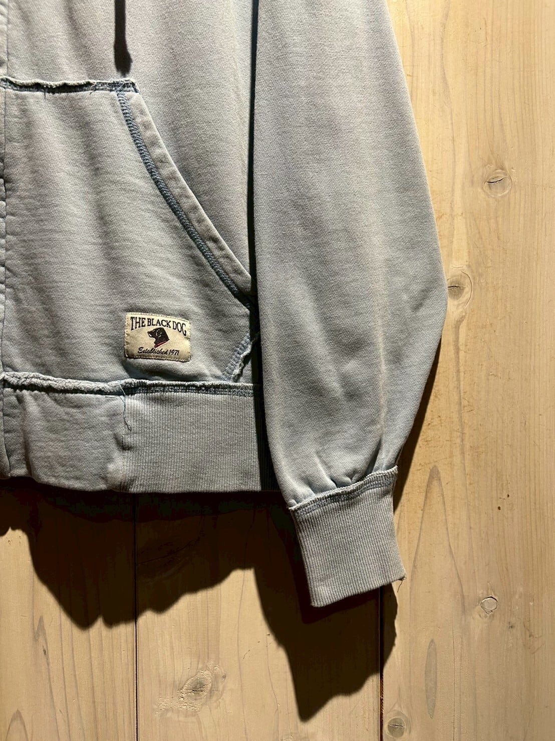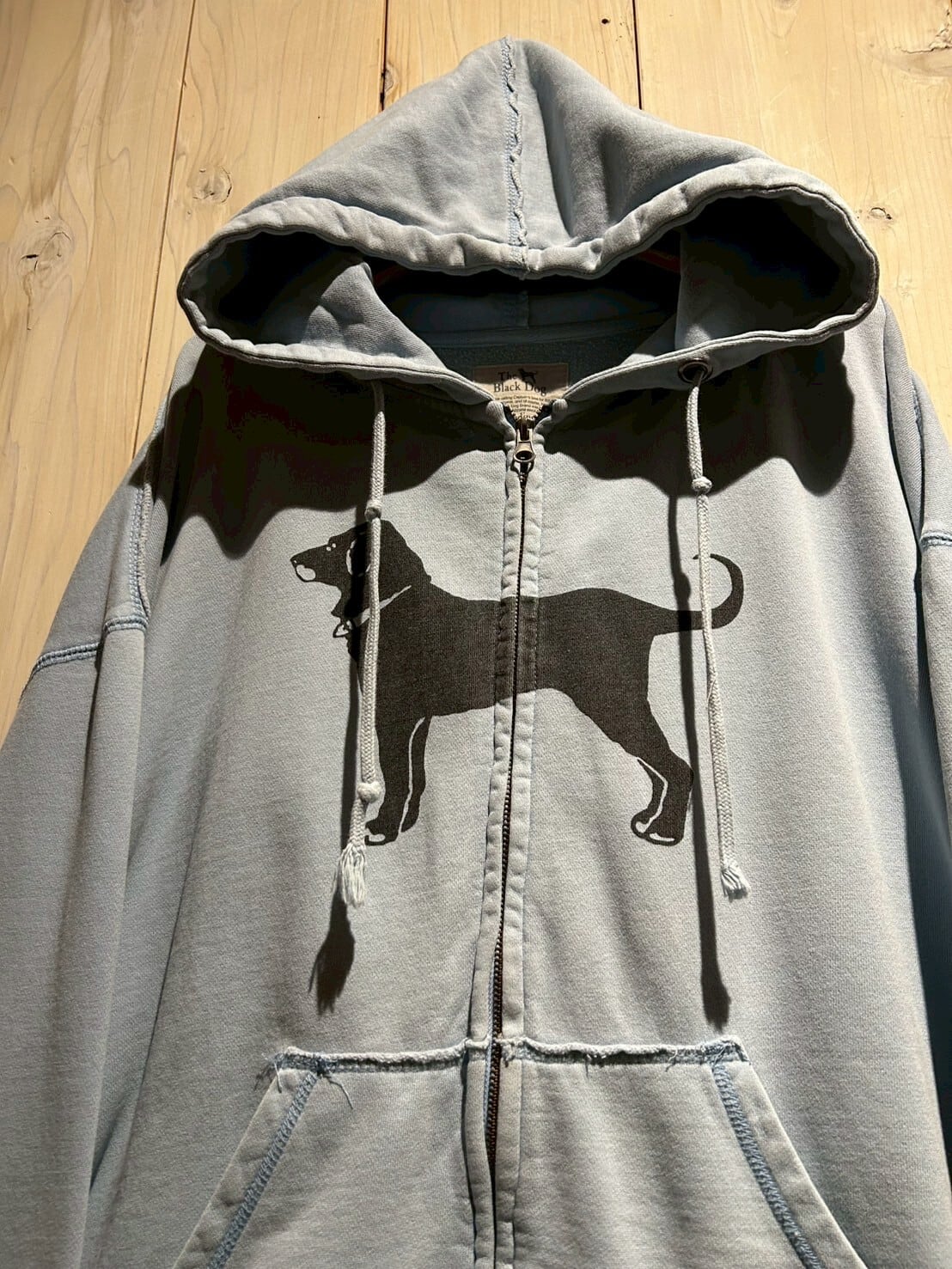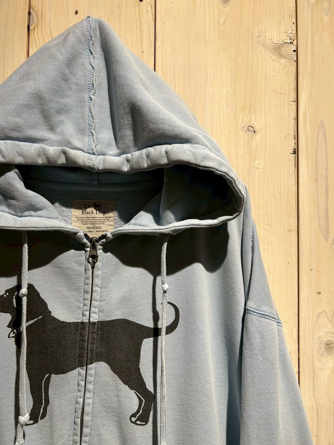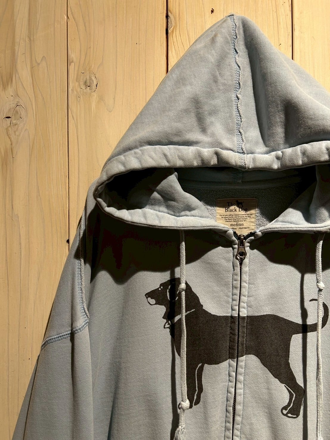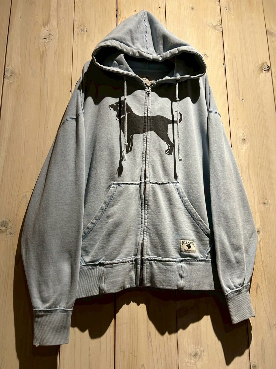ヴィンテージでも定番のアニマルモノより、少しマニアックな"The Black Dog"からの1着。今季気分のジップアップ、フェード感が非常に良い逸品です。